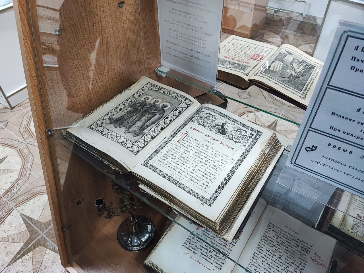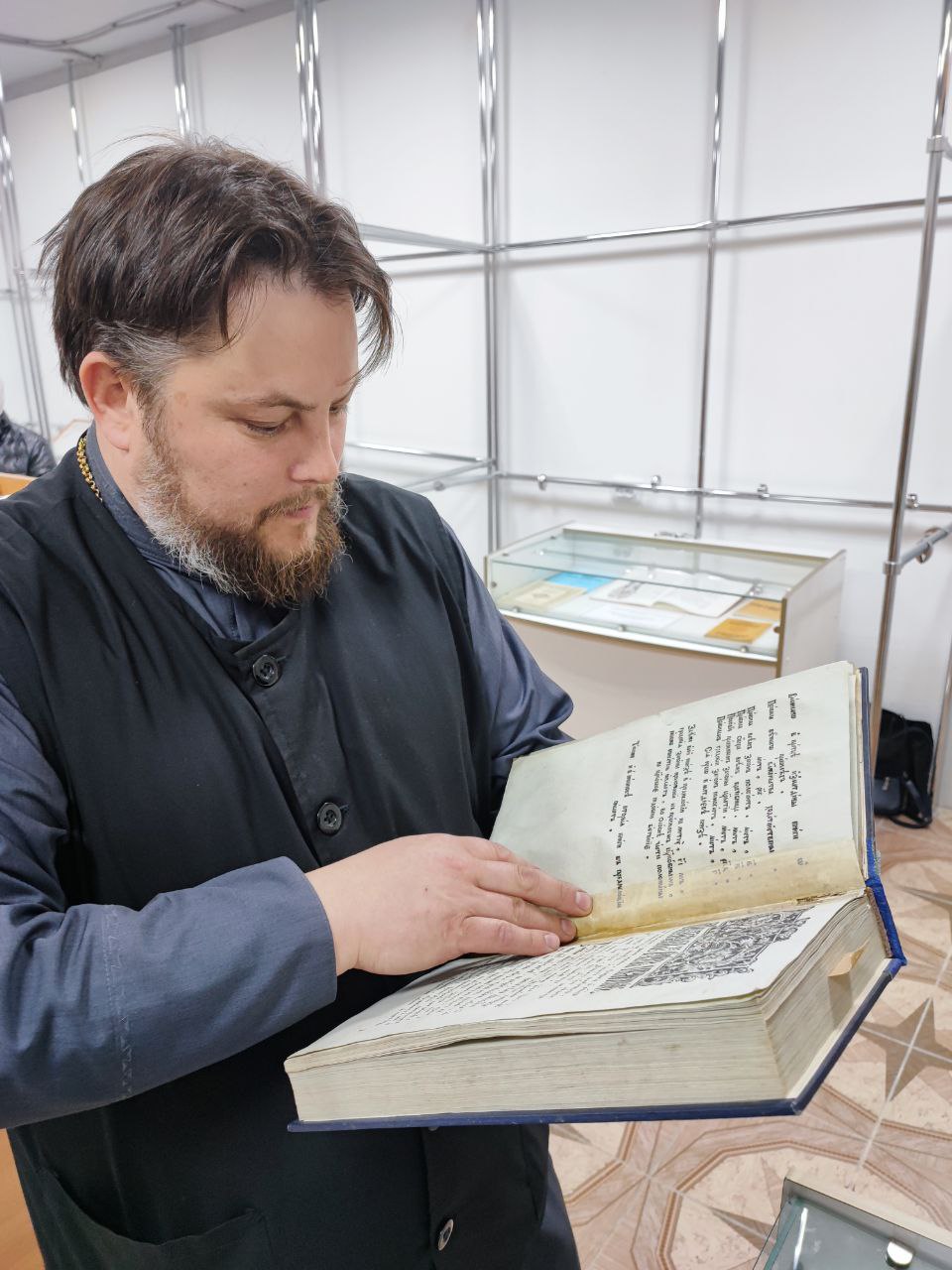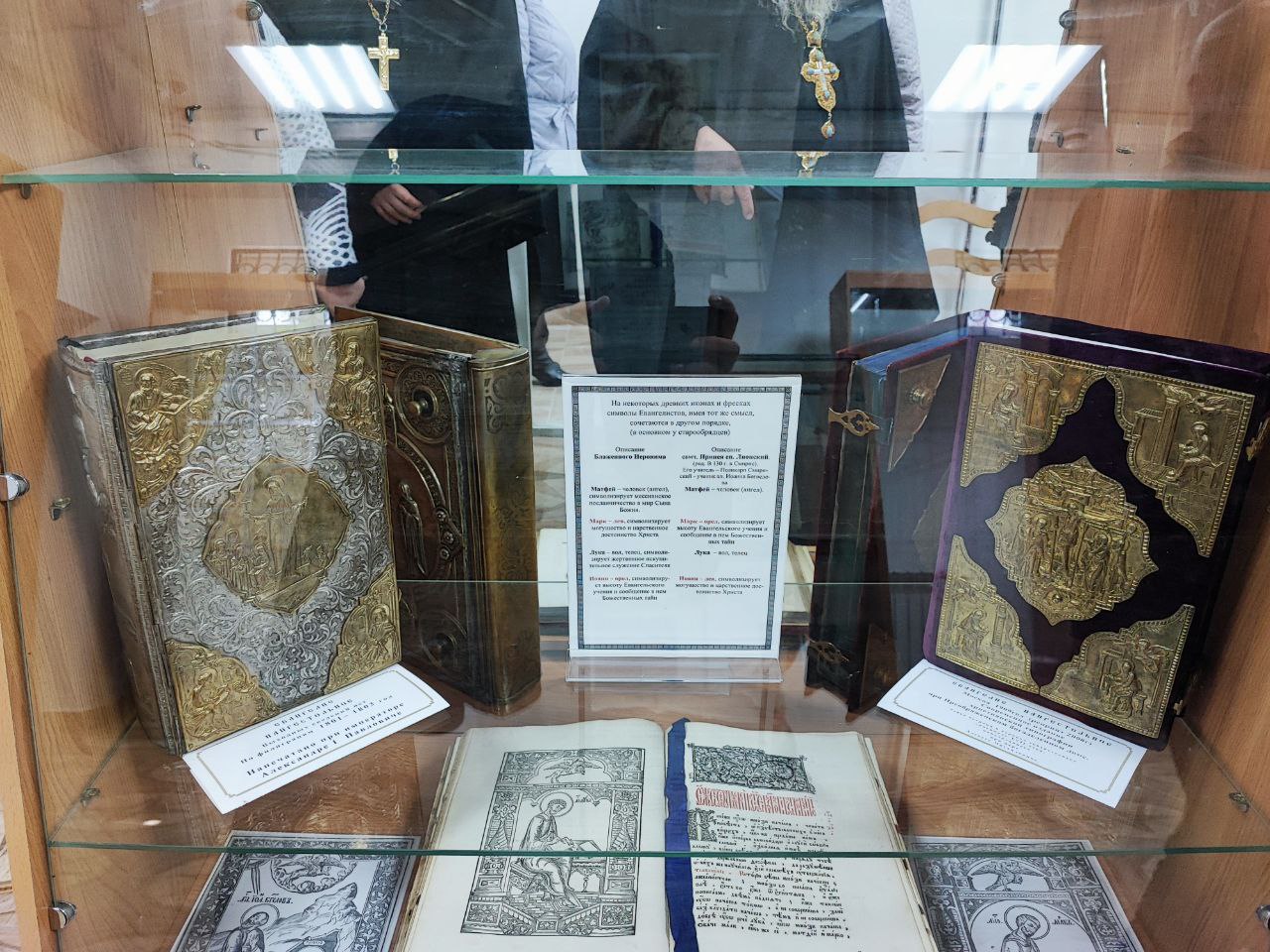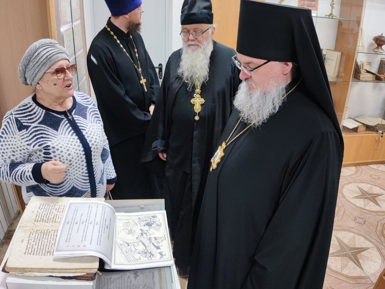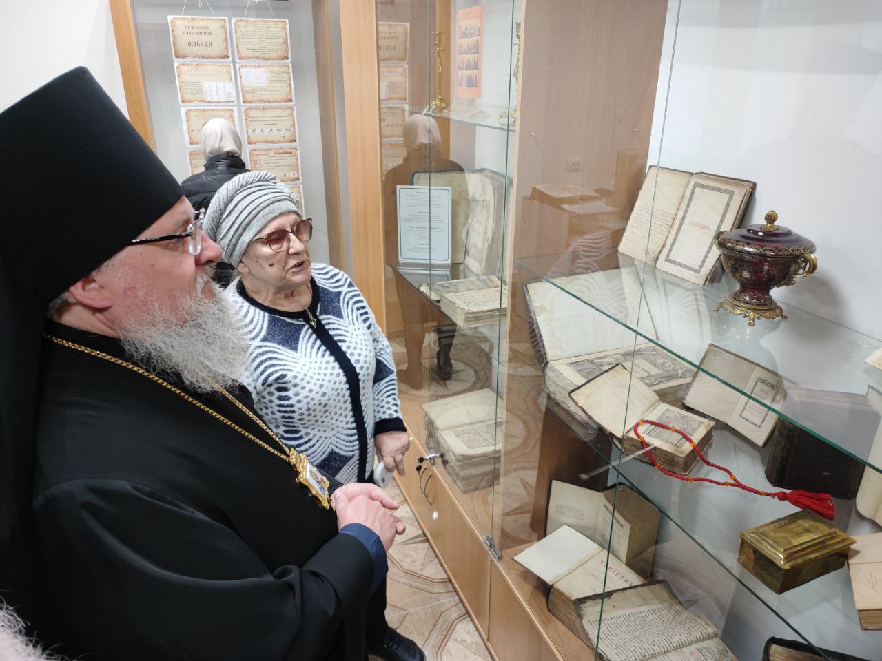 20 апреля по завершении богослужения в Казанском соборе города Людиново епископ Никита, в сопровождении настоятеля собора протоиерея Алексия Жиганова, посетил экспозиции древней церковной книги и русского народного костюма в музейных залах, устроенных в цокольном этаже Духовно-просветительского центра «Светоч».