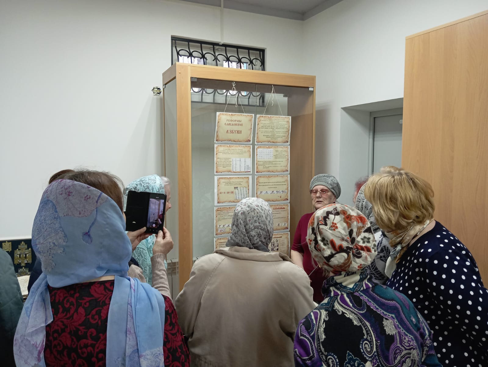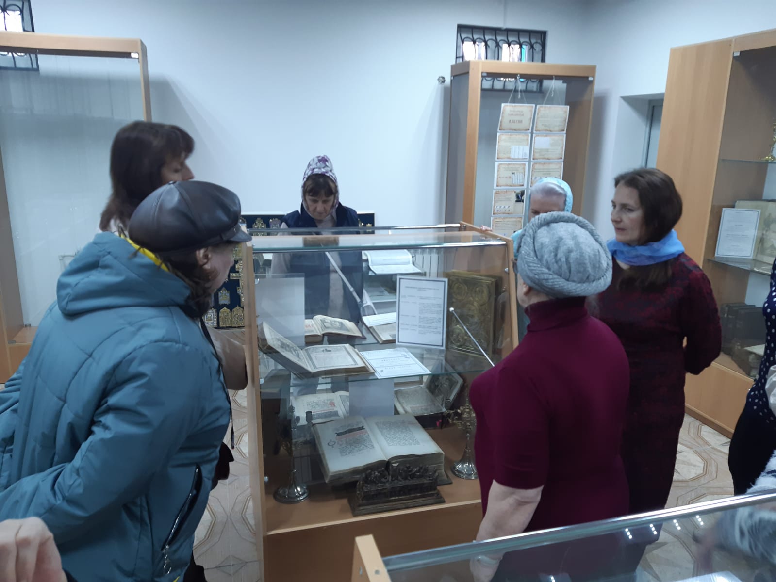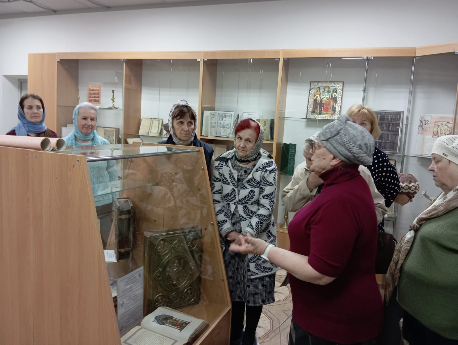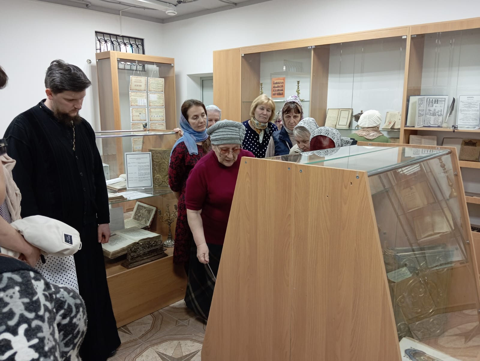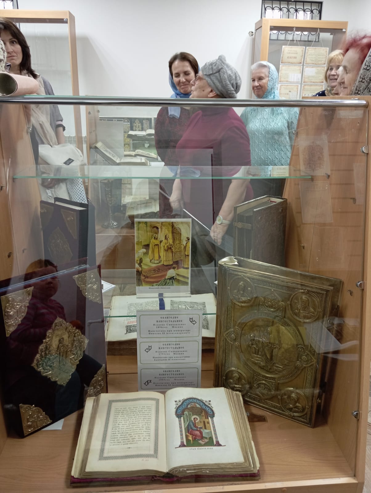 Учащиеся Воскресной школы для взрослых при Казанском соборе 23 апреля 2023года посетили выставку старинных книг духовно – религиозного содержания и выставку народного костюма.