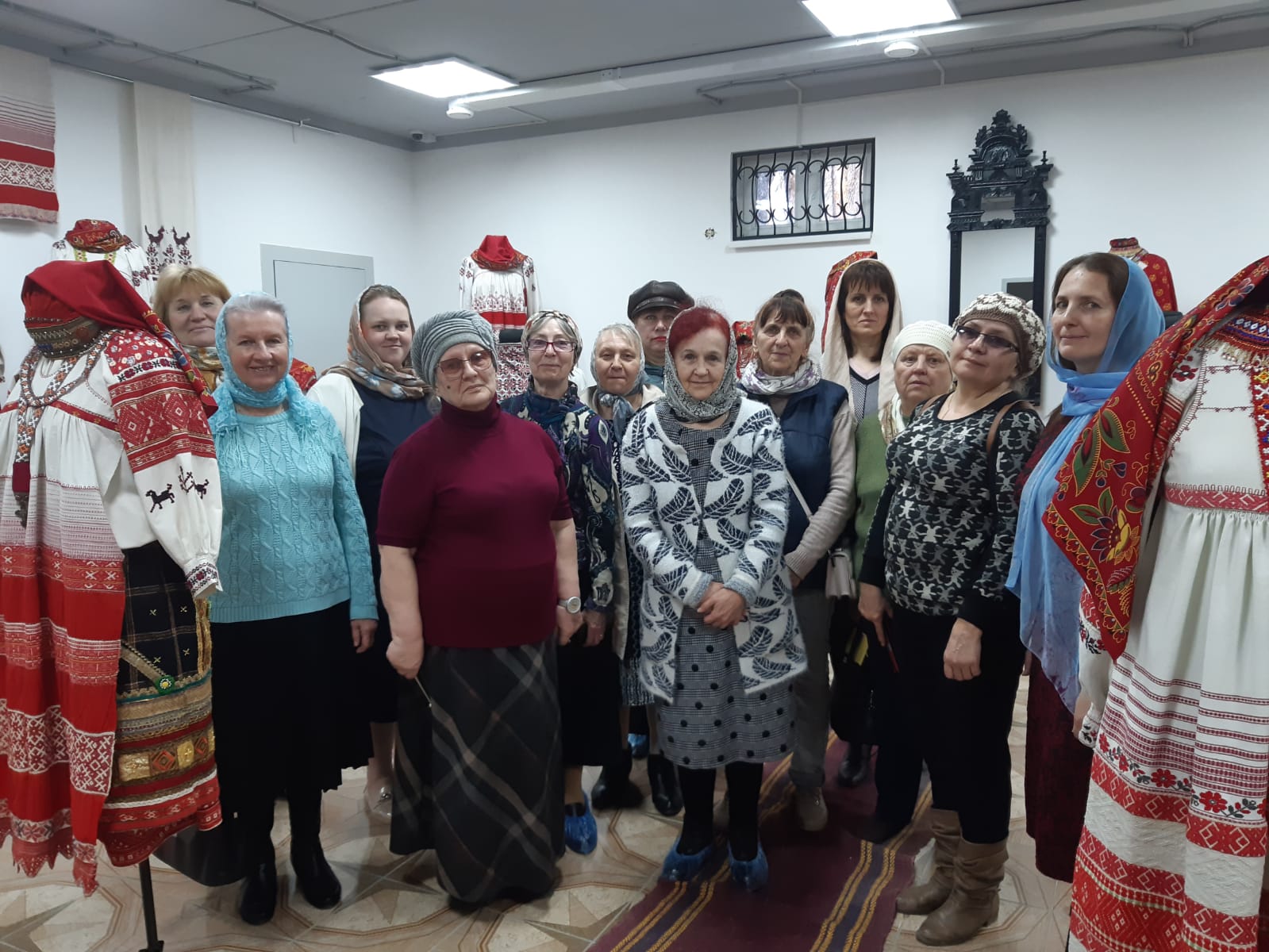 Особое внимание вызывают сохранившиеся фотоснимки быта, обрядов, старинных строений и жителей района. А также организованная фотозона, в центре которой – старинный свадебный наряд, в котором в своё время выходила замуж мать батюшки. На выставке можно увидеть костюм девушки и уже замужней женщины, в которых есть определённое различие. Здесь же представлены мужские костюмы. Галина Фёдоровна рассказала о разных видах вышивки таких как цветная перевить, тамбурный шов. А также рассказала, как в Россию попала вышивка крестом. Коммерсант Анри Брокар изготавливал мыло, на упаковках которого были схемы для вышивки крестиком (брокаровские узоры). Сама выставка действительно впечатляет. Как говорится, лучше один раз увидеть, чем сто раз услышать. Учащиеся воскресной школы для взрослых выражают огромную благодарность Галине Федоровне за интересный и поучительный рассказ.