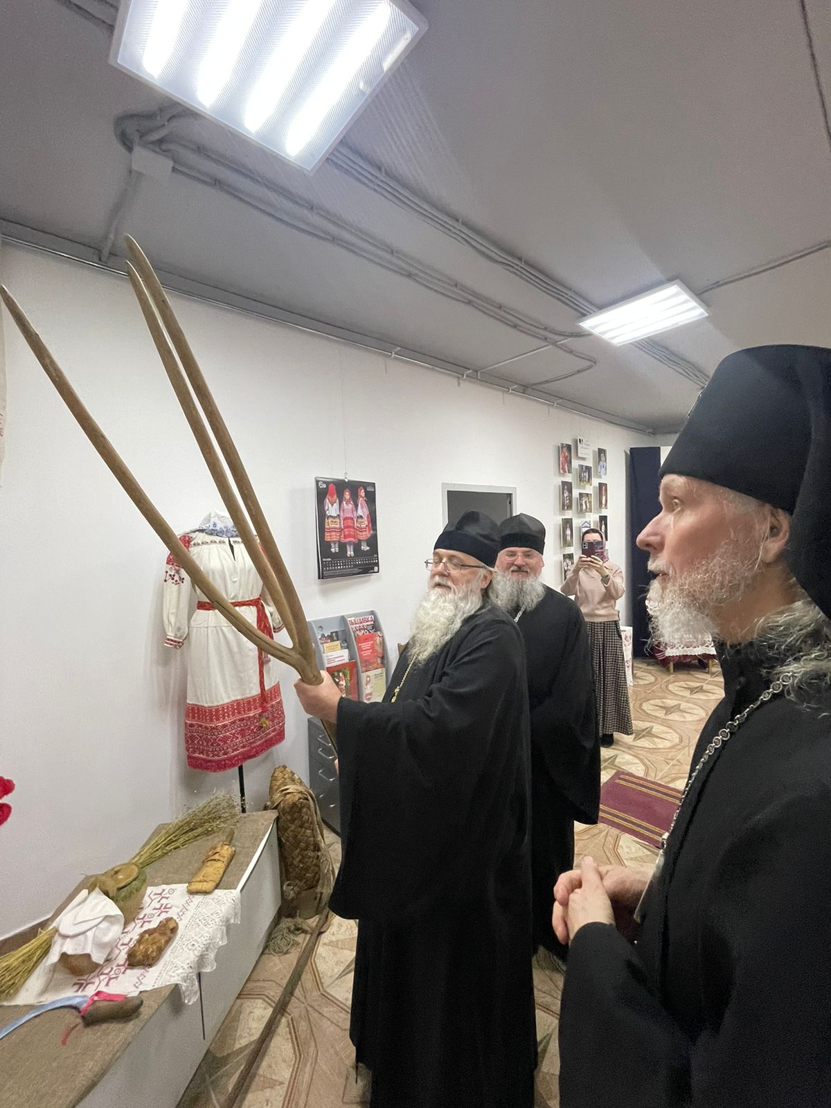 27 апреля архиепископ Песоченский и Юхновский Максимилиан и епископ Козельский и Людиновский Никита посетили экспозиции  «Богослужебных старопечатных книг» а также стационарную выставку старинной повседневной и праздничной одежды жителей юга Калужской области церковно-краеведческого музея при Казанском соборе города Людиново.