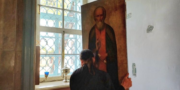 В Преображенский храм села Нижние Прыски после реставрации вернулась икона преподобного Сергия Радонежского
