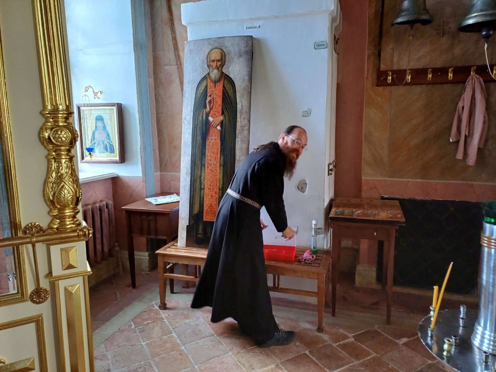 По окончание работ было совершено краткое молитвословие преподобному Сергию. Теперь все желающие вновь смогут прийти помолиться, попросить помощи в своих скорбях и житейских попечениях. Преподобне отче наш Сергие, моли Бога о нас!