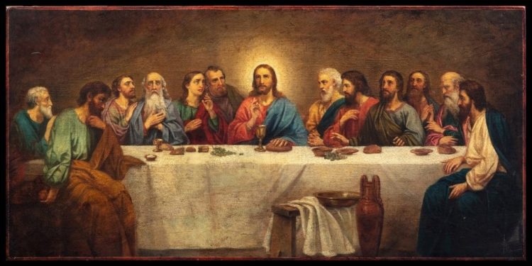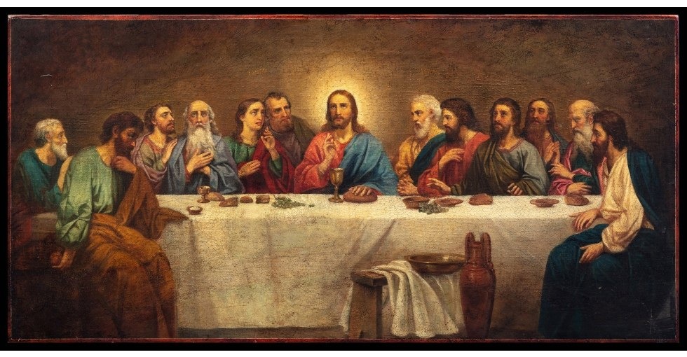 После омовения и прощальной беседы с учениками Христос преломил хлеб и, благословив его, подал апостолам со словами: «сие есть Тело Моё, которое за вас предаётся; сие творите в Моё воспоминание». Взяв чашу и благословив её, сказал: «пейте из неё все; Ибо сие есть Кровь Моя нового завета, за многих изливаемая во оставление грехов».