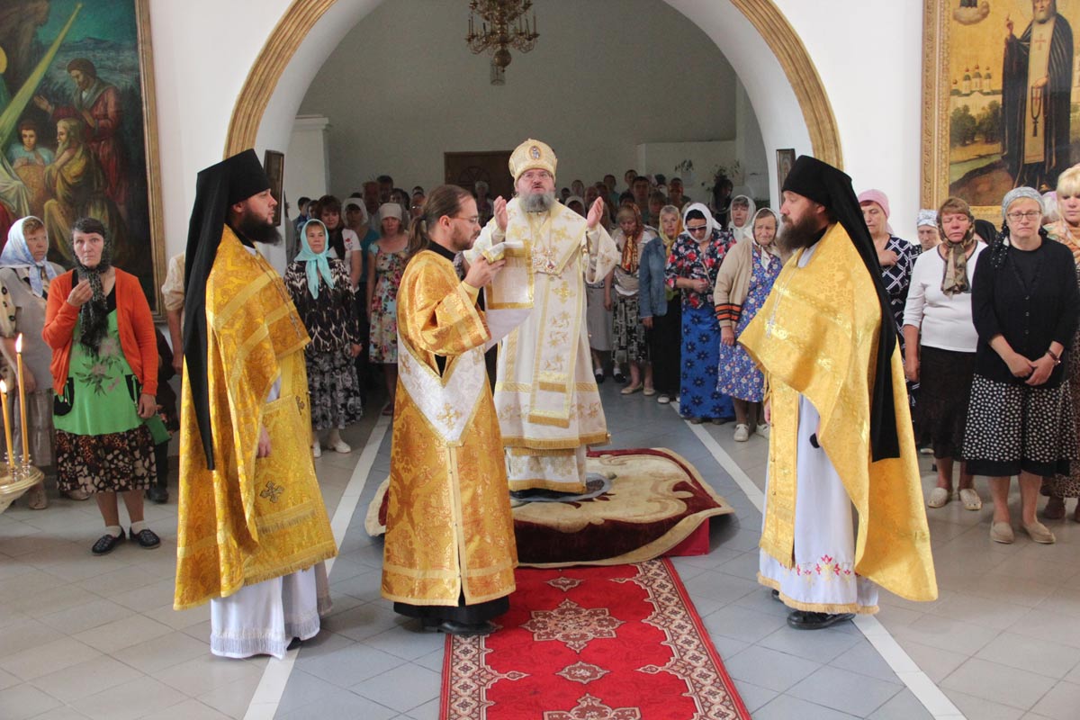 Управляющий Козельской епархией епископ Козельский и Людиновский Никита совершил Божественную литургию в Свято-Воскресенском храме села Усты Думиничского района, северный придел которого освящен в честь великомученика Пантелеимона.