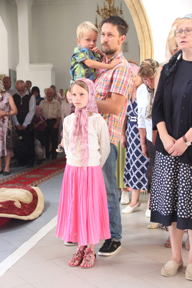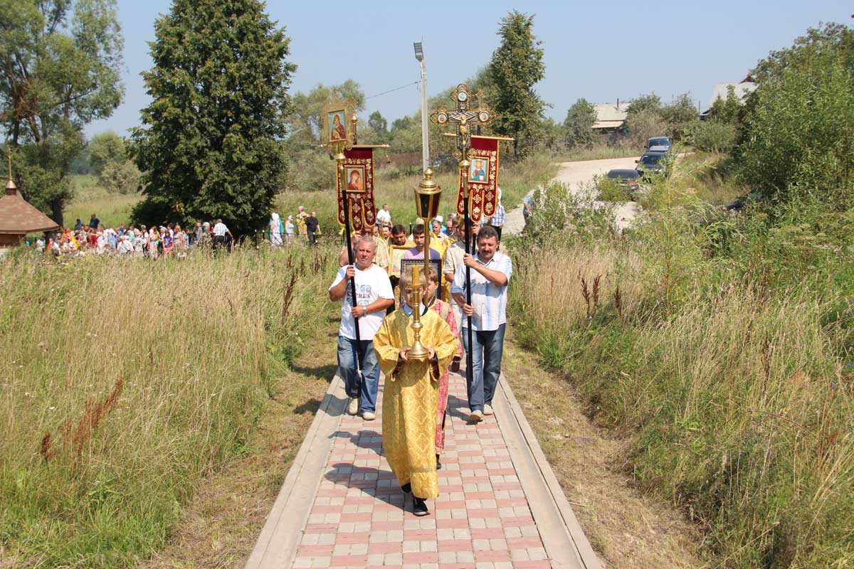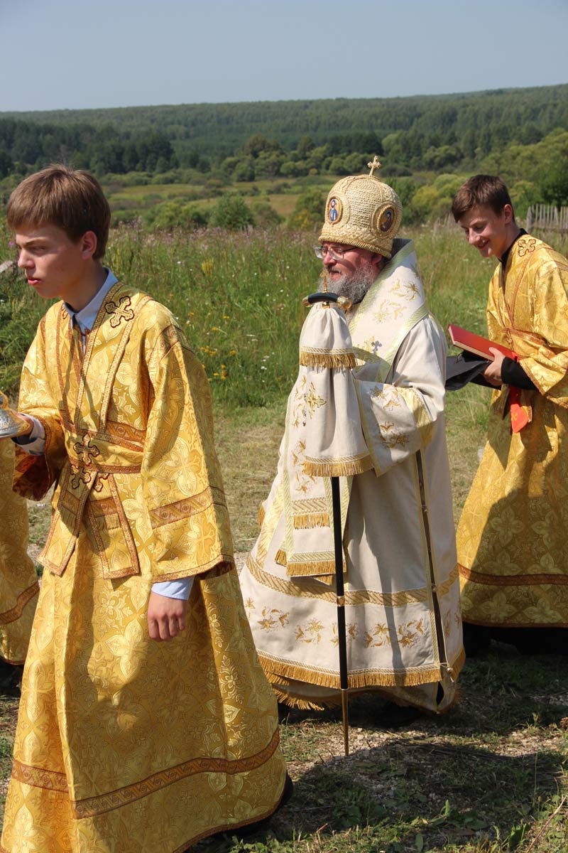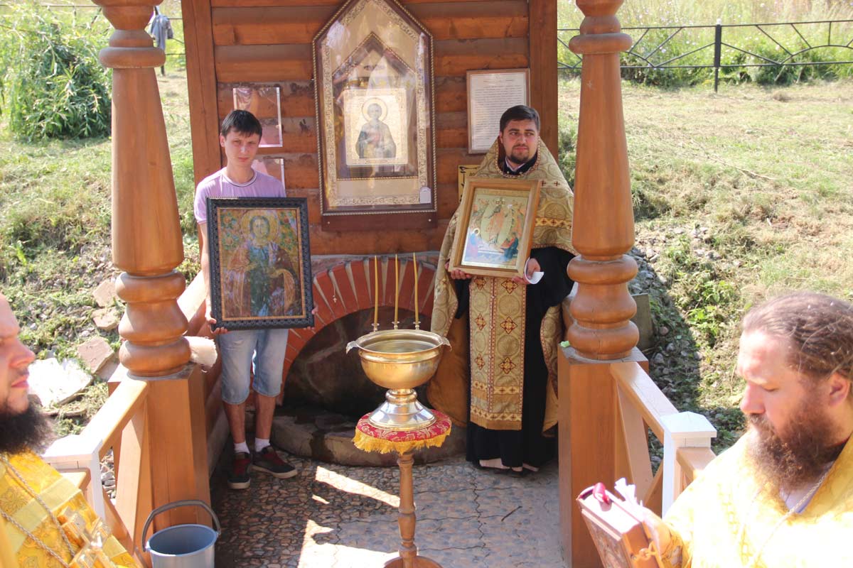 После отпуста литургии состоялся крестный ход на святой источник в честь целителя Пантелеимона, где состоялось малое освящение воды, а затем, по прочтении молитвы святому великомученику, владыка обратился к богомольцам со словом назидания.