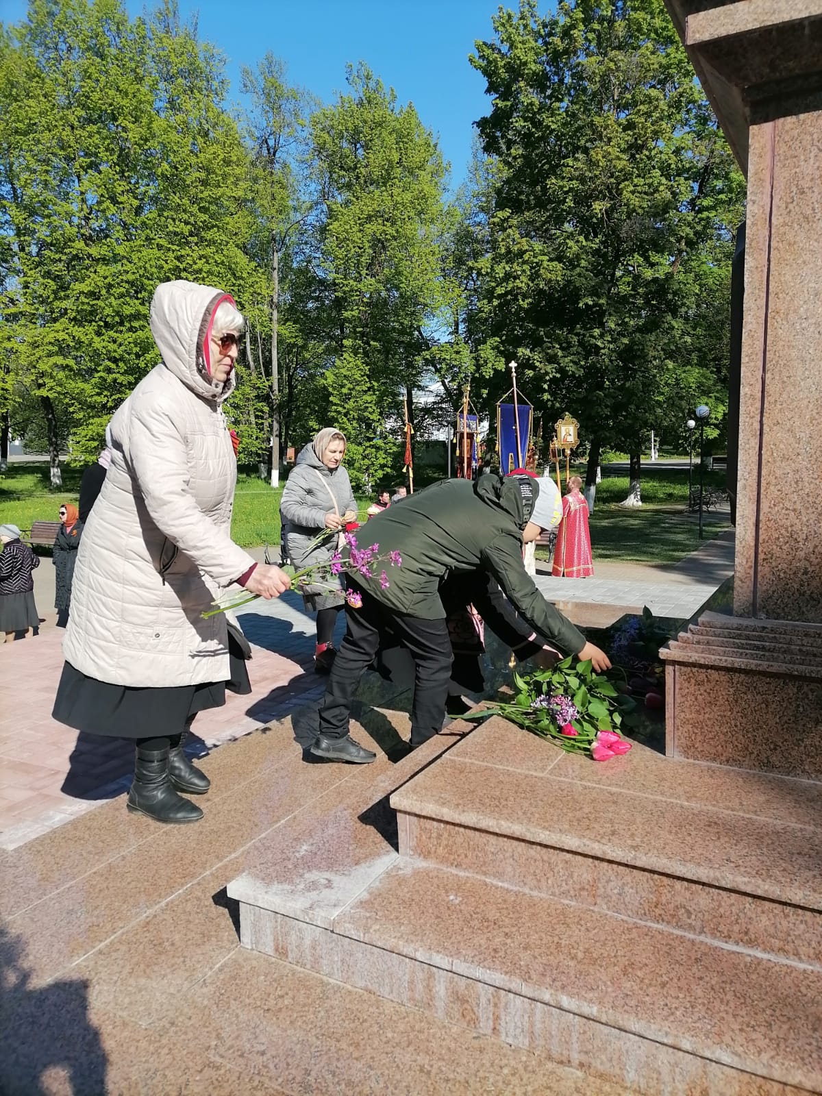 9 мая 2024 года в Казанском соборе города Людиново по традиции, в День Победы, торжества начались рано утром с Крестного хода от собора к Поклонному Кресту, установленному на площади Победы, к Вечному огню,  к стеле «Город воинской доблести». Священнослужители Казанского собора у Поклонного Креста пропели большое Пасхальное начало в память о погибших воинах, за веру, Отечество и народ, жизнь свою положивших в годы войны 1941–1945  гг. и возгласили «Вечную память»! В этот праздничный день духовенство и прихожане возложили памятную гирлянду и цветы к Поклонному Кресту.  Настоятель  собора протоиерей Алексий Жиганов обратился с проповедью: «Героический подвиг воинов в годы Великой Отечественной войны навсегда останется в наших сердцах. Они выдержали тяжелейшие испытания и освободили нашу Родину от фашизма. Мы обязаны помнить, какою ценой подарены мир и свобода, какое мужество и самоотверженность, несокрушимую силу воли имели наши солдаты. Подвиг их беззаветного служения Родине останется примером на века. Пусть здравствуют ветераны живые, дети войны, труженики тыла на многая лета, а погибшим на поле брани вечная память». «Христос Воскресе!», – сказал отец Алексий. «Воистину Воскресе!» — прозвучало в ответ. Затем крестным ходом священнослужители и прихожане прошли к Вечному огню, к стеле «Город воинской доблести», где также возложили живые цветы. После крестного хода, в Казанском соборе настоятель храма протоиерей Алексий Жиганов в сослужении клириков иерея Алексия Сначёва, иерея Иоанна Майорова и диакона Андрея Соколова совершили  благодарственный молебен Господу Богу за дарование Победы в Великой Отечественной войне и молитвенное пение о воинах. По окончании благодарственного молебна было пропето многолетие Святейшему Патриарху Московскому и всея Руси Кириллу, Президенту Российской Федерации Владимиру Владимировичу Путину, всему воинству Российскому, и всем православным христианам.  По окончании богослужений в малой трапезной собора состоялся праздничный обед. За столом смотрели праздничный парад, беседовали, пели военные песни, радовались Дню Победы. Этот священный день объединяет разные поколения, что очень важно, мы становимся сплоченнее, милосерднее и добрее! Только в едином духе русская душа преодолевает все препятствия! Верим, что Господь нам поможет!  В полдень со звонницы Казанского собора прозвучал Пасхальный звон, который продолжался в течение 15 минут в память о погибших в годы Великой Отечественной войны. В священный праздник Великой победы на Площади Победы, где проходило торжественное мероприятие и митинг в честь праздника, отец Алексий поздравил старейшего ветерана Великой Отечественной войны, жительницу города Людиново Марию Матвеевну Власенкову, подарив ей букет живых цветов и  пожелав ей доброго здравия и духовной крепости. Даст Господь, эта удивительная и жизнестойкая женщина летом будет праздновать свой 101 день рождения!