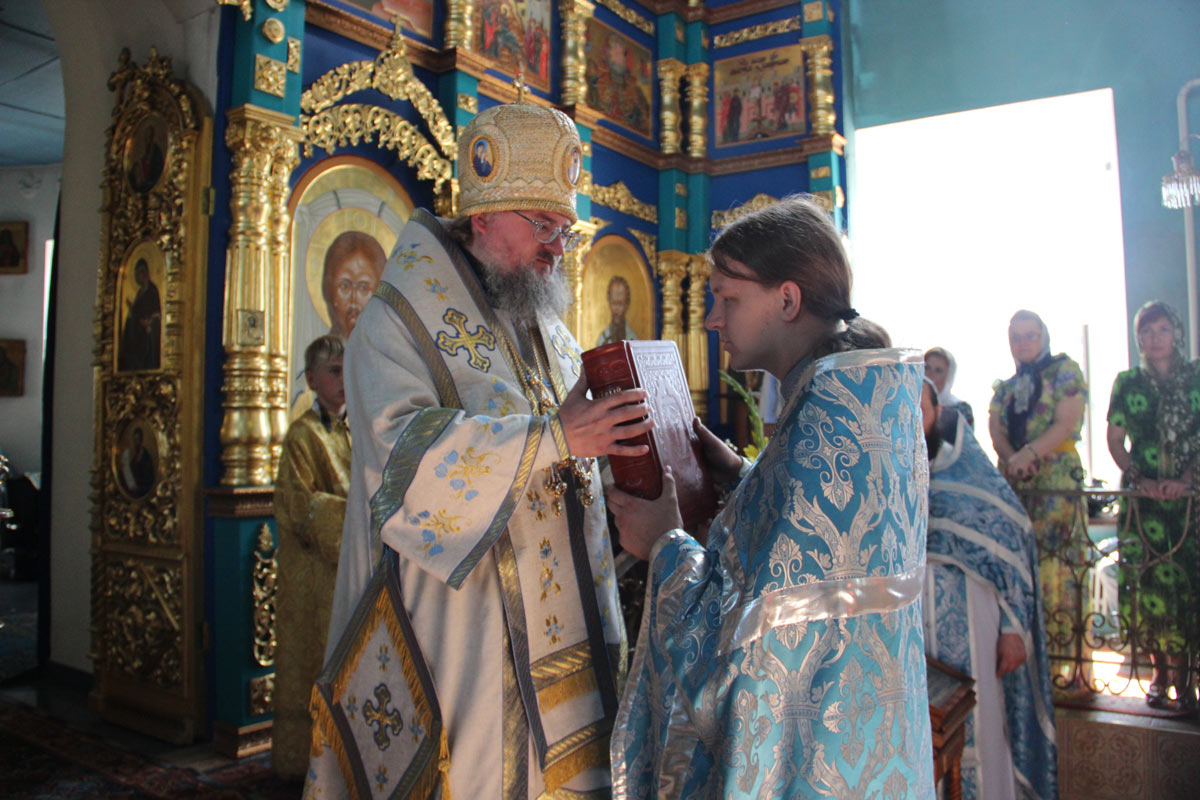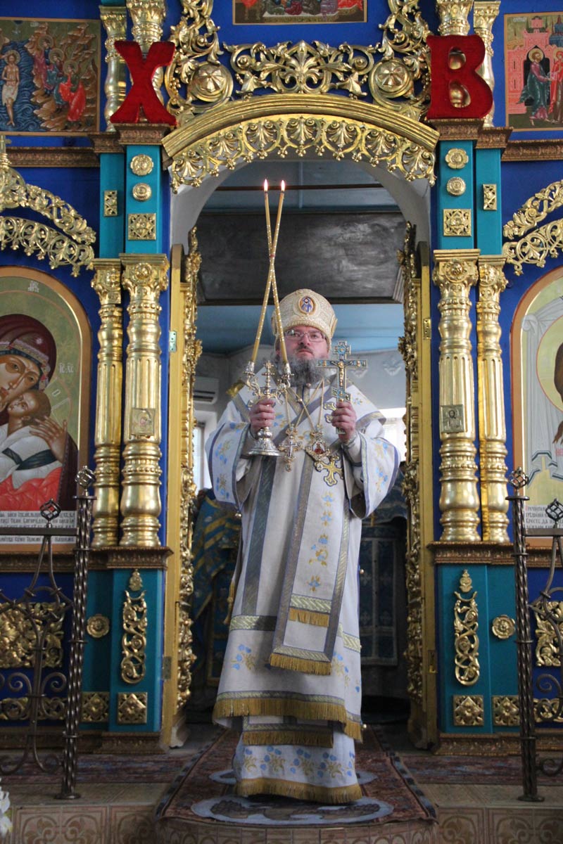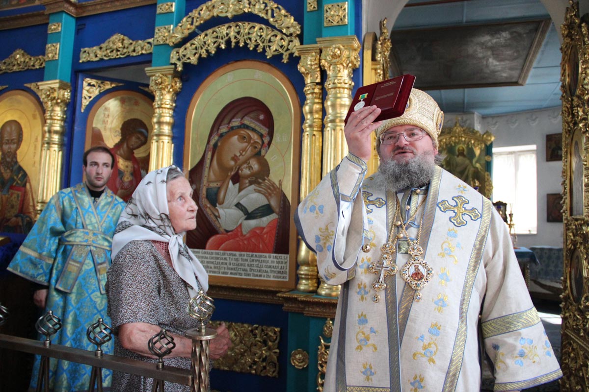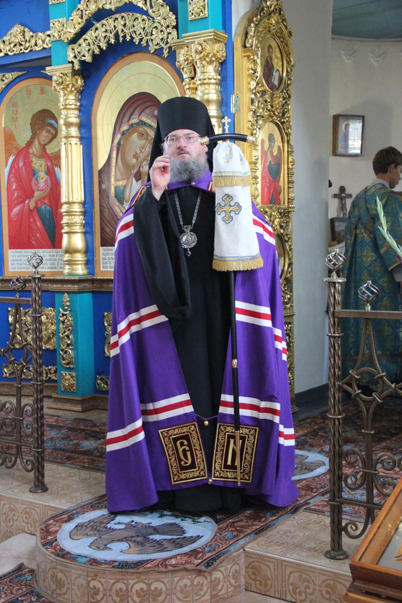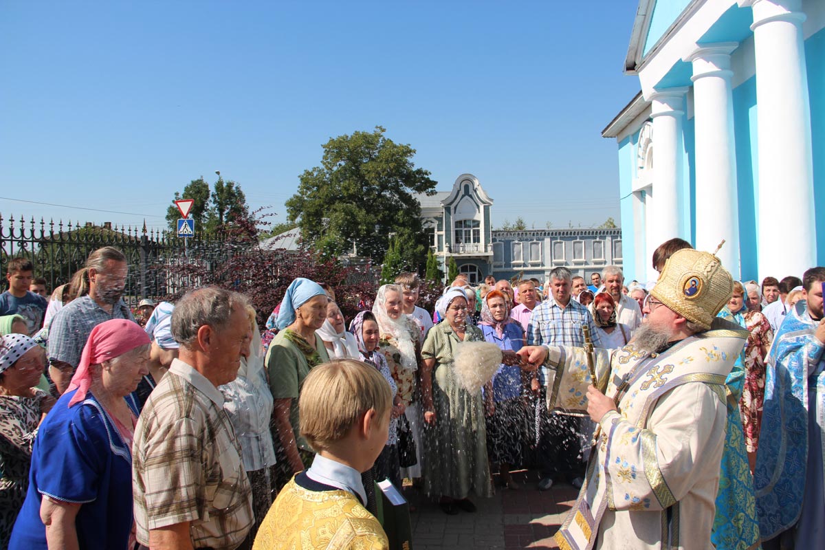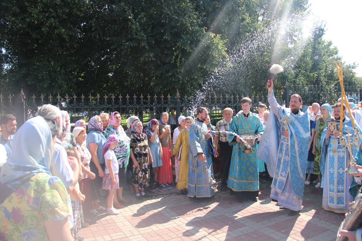 Архипастырю сослужили: почетный настоятель храма протоиерей Николай Казаков, настоятель храма, благочинный округа – протоиерей Алексий Казаков, иерей Степан Колбасин, иерей Антоний Демин, иеромонах Паисий (Курмаз) и диакон Тихон Худяков. После отпуста литургии священнослужители совершили праздничный молебен и крестный ход вокруг храма, в завершении которого, вознеся молитву ко Пресвятой Богородице, архипастырь обратился к богомольцам со словом назидания.