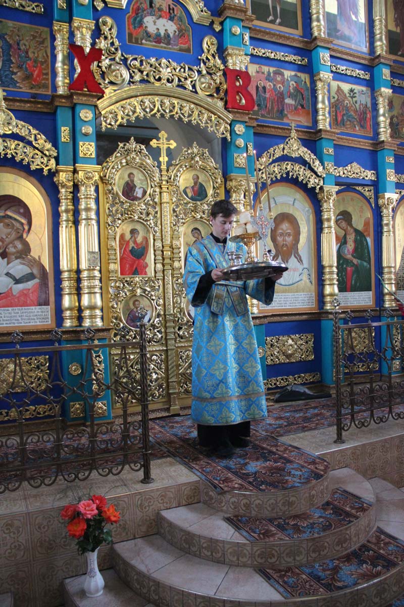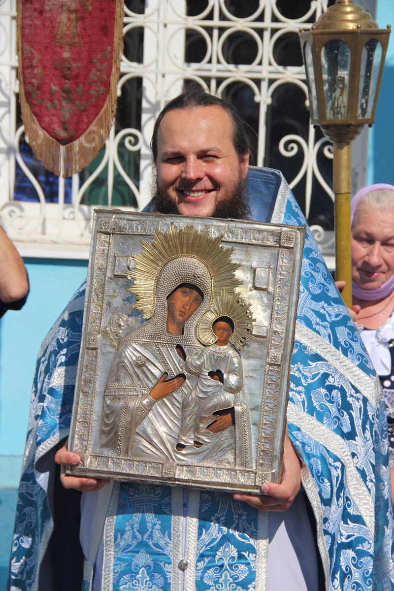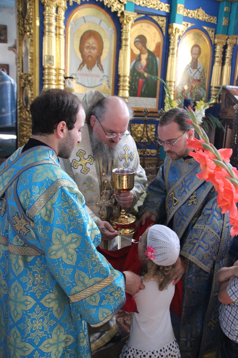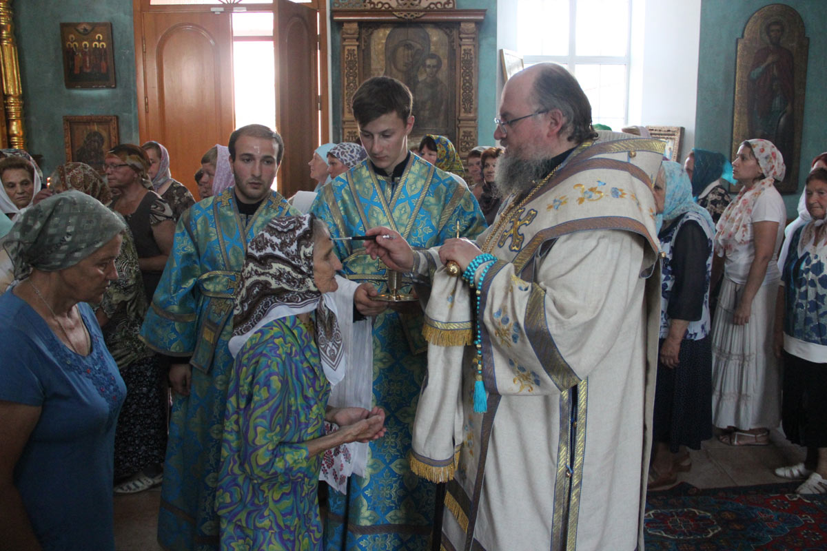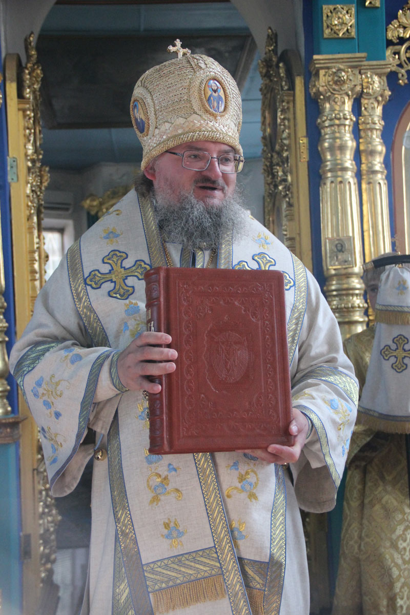 Архипастырю сослужили: почетный настоятель храма протоиерей Николай Казаков, настоятель храма, благочинный округа – протоиерей Алексий Казаков, иерей Степан Колбасин, иерей Антоний Демин, иеромонах Паисий (Курмаз) и диакон Тихон Худяков. После отпуста литургии священнослужители совершили праздничный молебен и крестный ход вокруг храма, в завершении которого, вознеся молитву ко Пресвятой Богородице, архипастырь обратился к богомольцам со словом назидания.