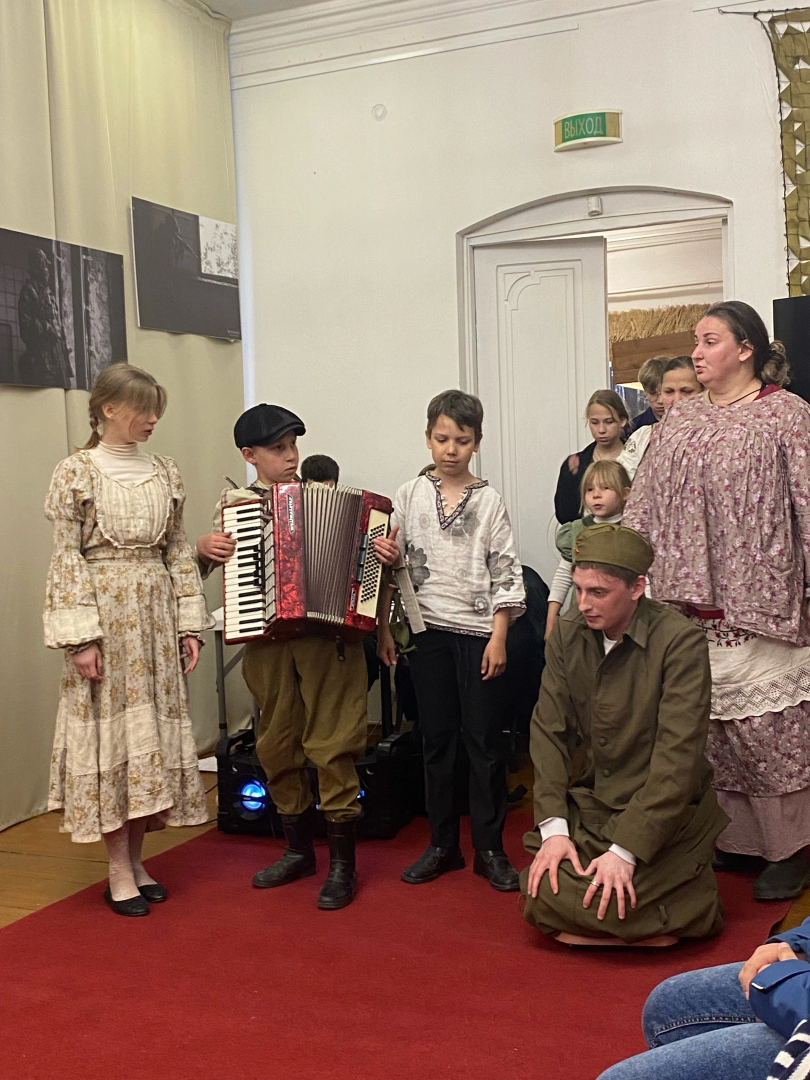 В доме-музее Цыплаковых города Козельска 9 мая был сыгран семейный спектакль, который подготовили многодетные православные семьи Павловых и Рыбаковых. Дети и родители из этих семей принимают активное участие в приходской жизни храмов города. Дети алтарничают, поют на клиросе.