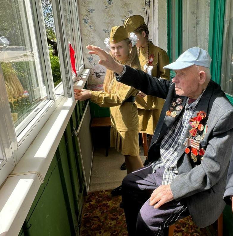 После митинга все отправились поздравлять Хрыченкова Ивана Антоновича, одного из немногих ныне живых ветеранов ВОВ. Перед его окнами был организован небольшой концерт.