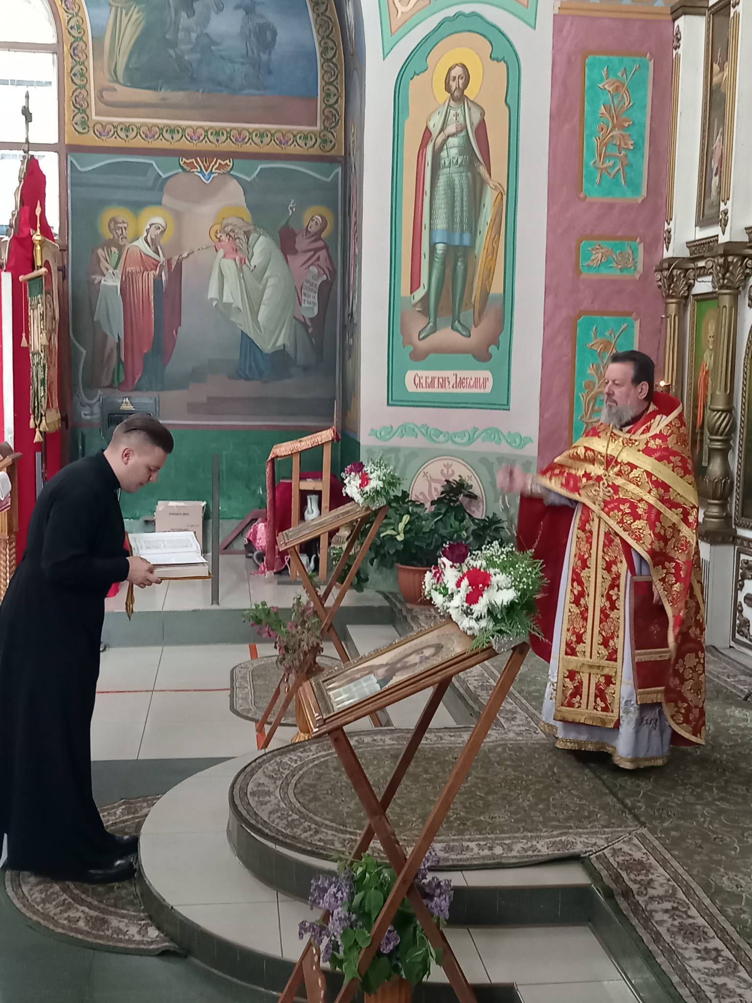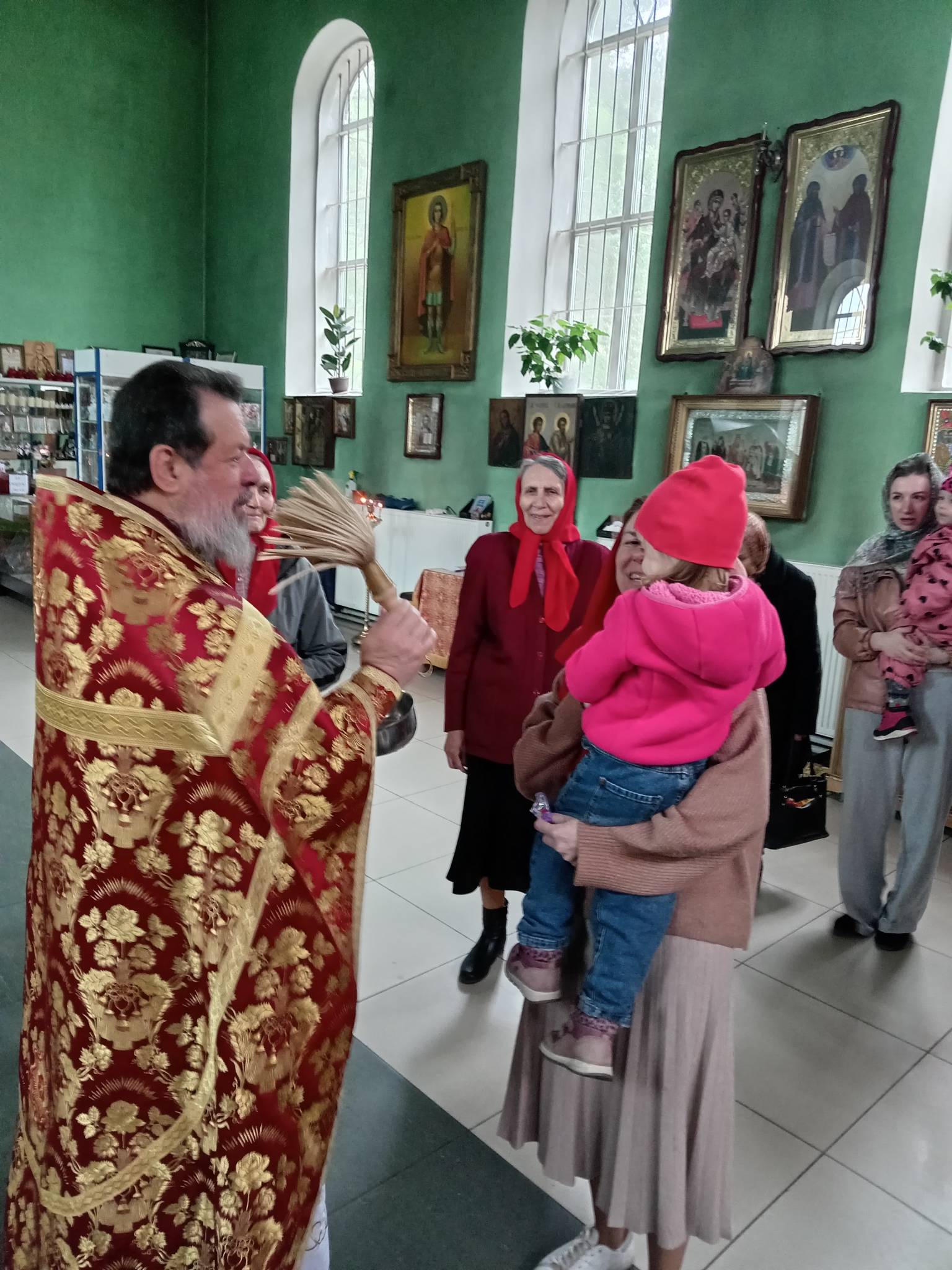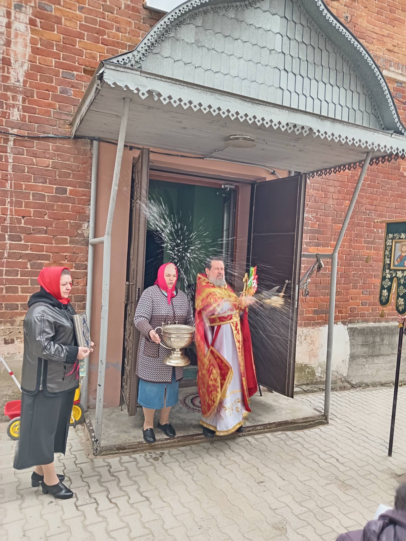 В Светлую пятницу, когда совершается празднование иконы Божией Матери «Живоносный Источник», после Литургии батюшка совершил малый чин освящения воды.
