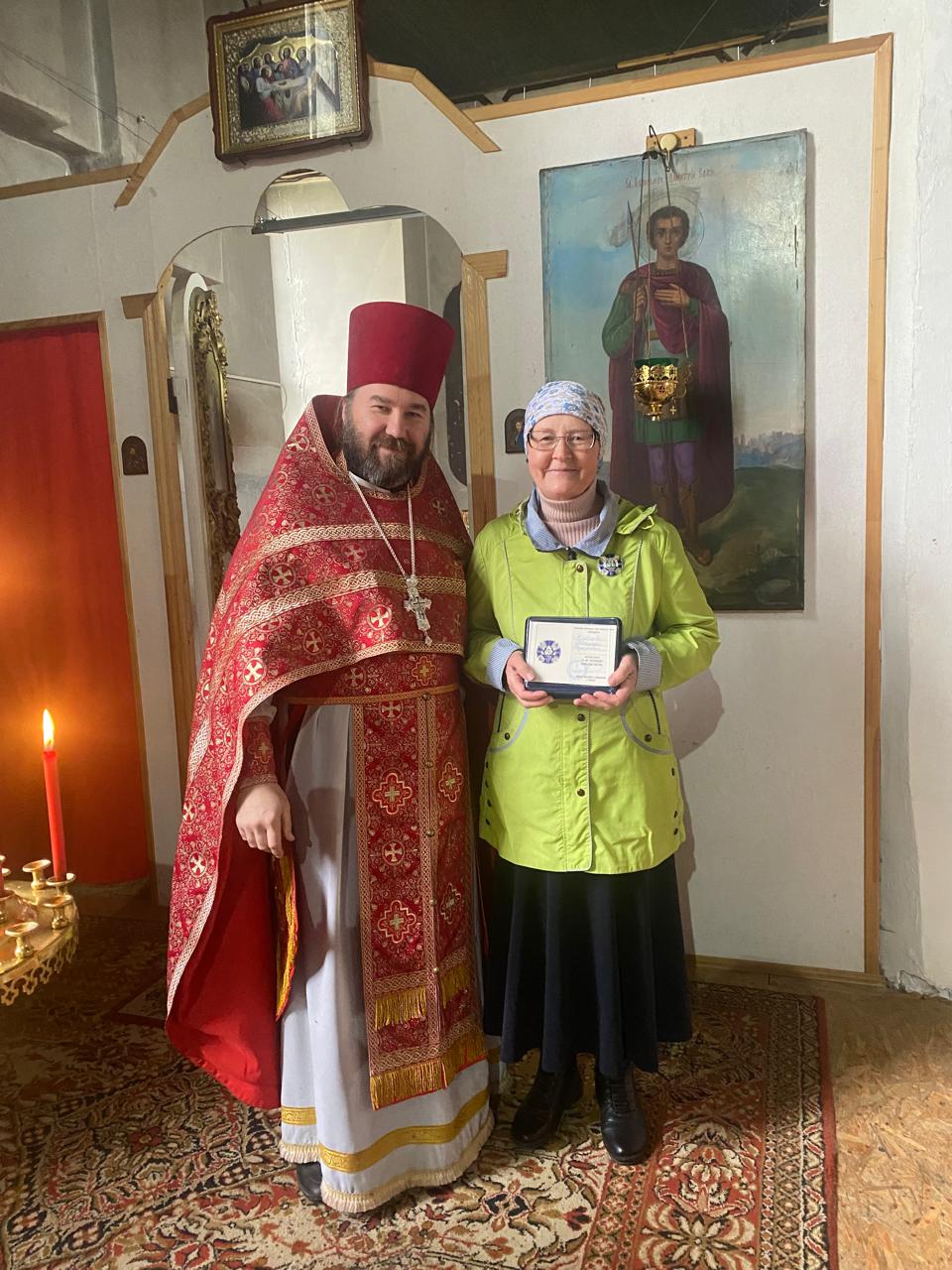12 мая, в Неделю Фомину, после Божественной литургии в селе Ульяново вручили памятные знаки ’10 лет Козельской Епархии’. Всё отмеченные Памятным Знаком постоянные прихожане, участвующие в таинствах и постоянно помогающих в украшении храма. Благочинный Ульяновского округа, настоятель храма Воскресения Христова, протоиерей Максим Садовников поблагодарил награждаемых за труды и помощь храму. Памятные Знаки получили жители села: Травкина Нина Михайловна; Марочкина Валентина Дмитриевна; Конохова Татьяна Фёдоровна.