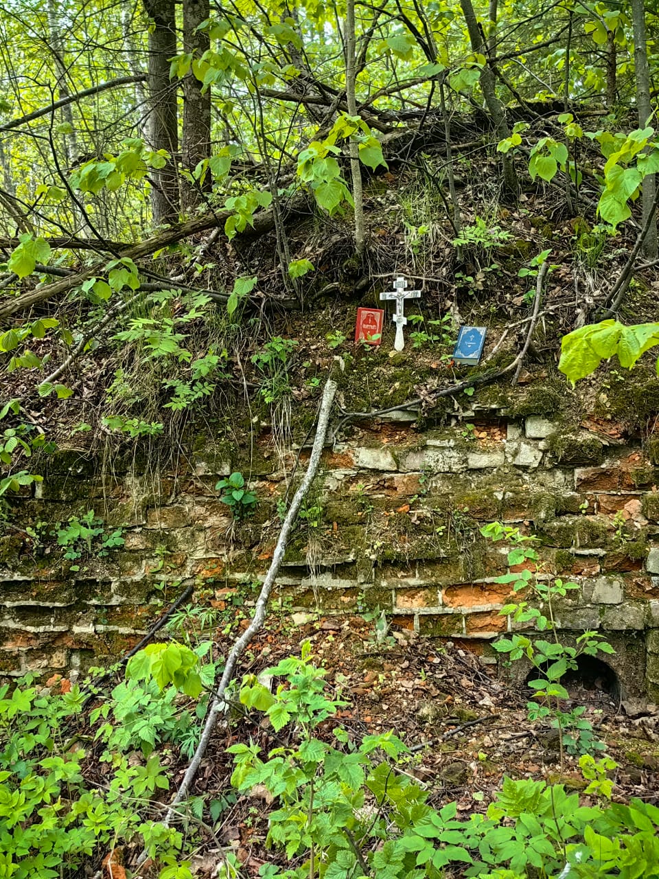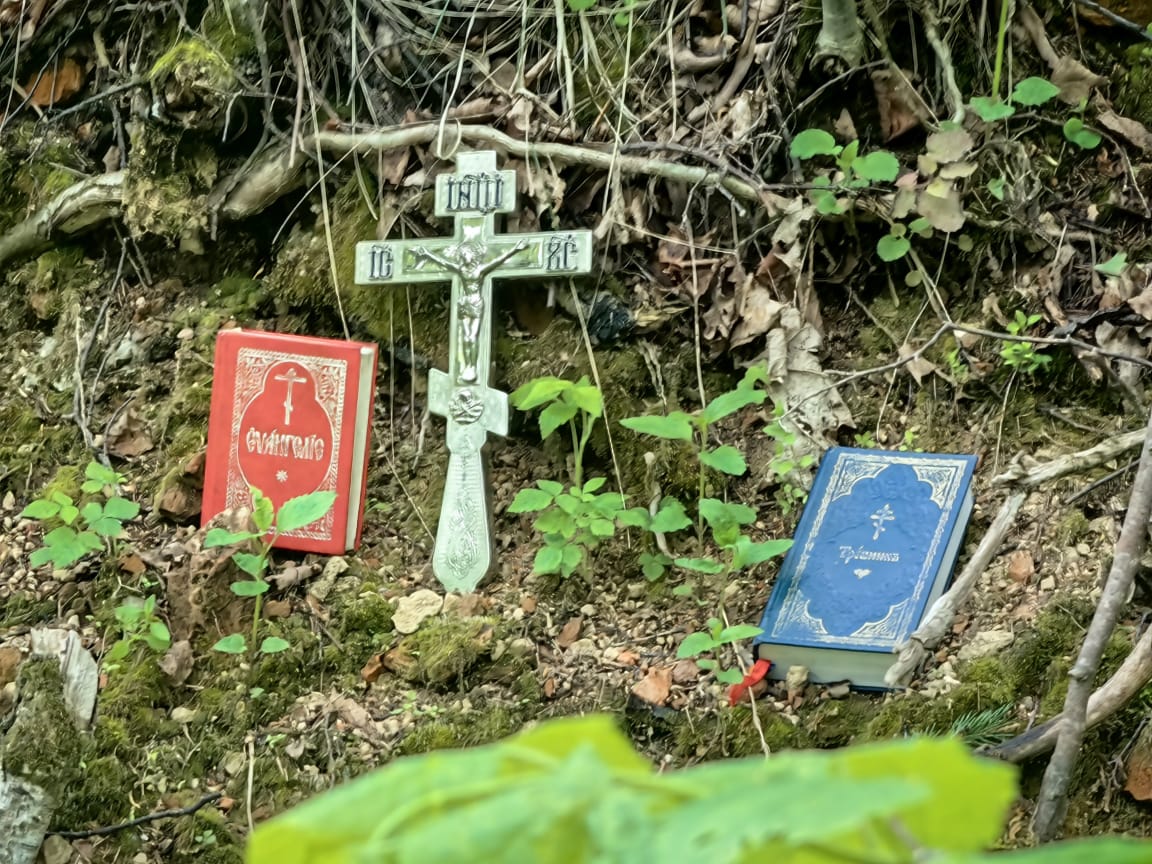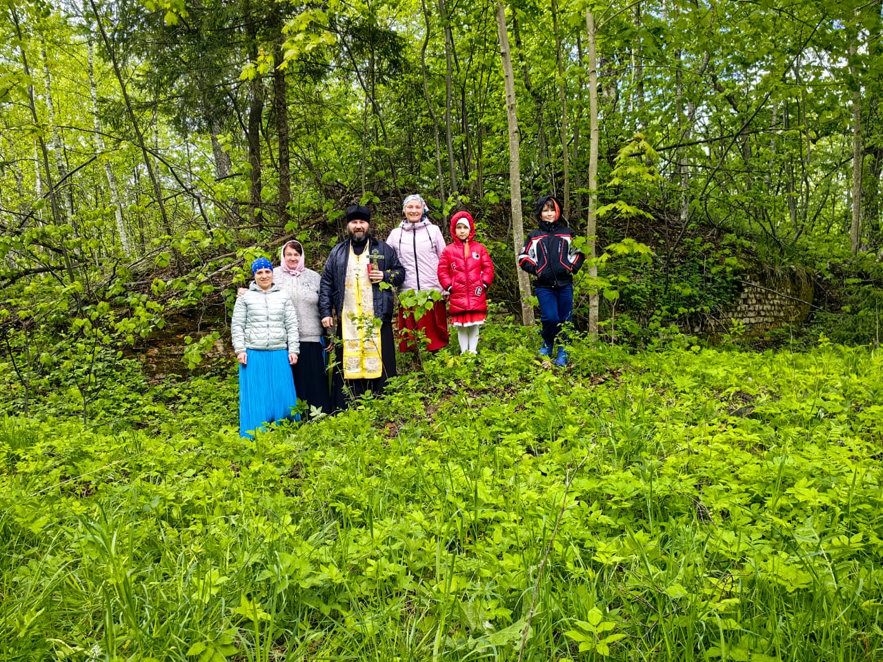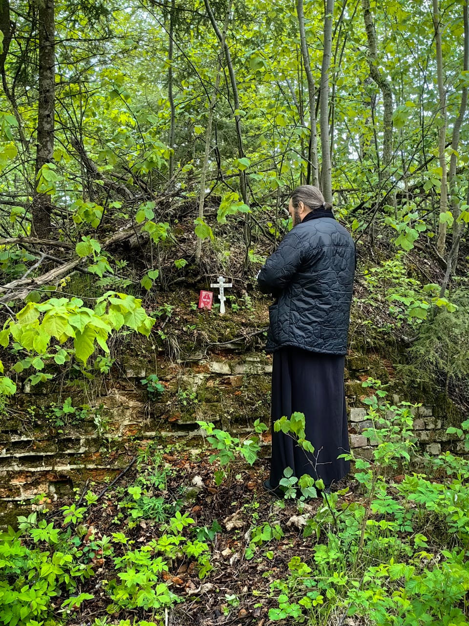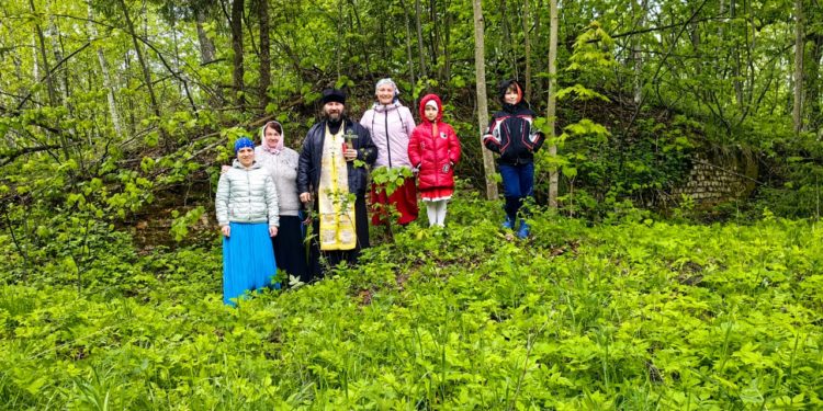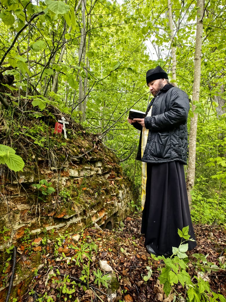 В этом году,  из-за погодных условий не получилось побывать на могилке преподобного, поэтому молились на месте разрушенного храма в селе Холмищи.