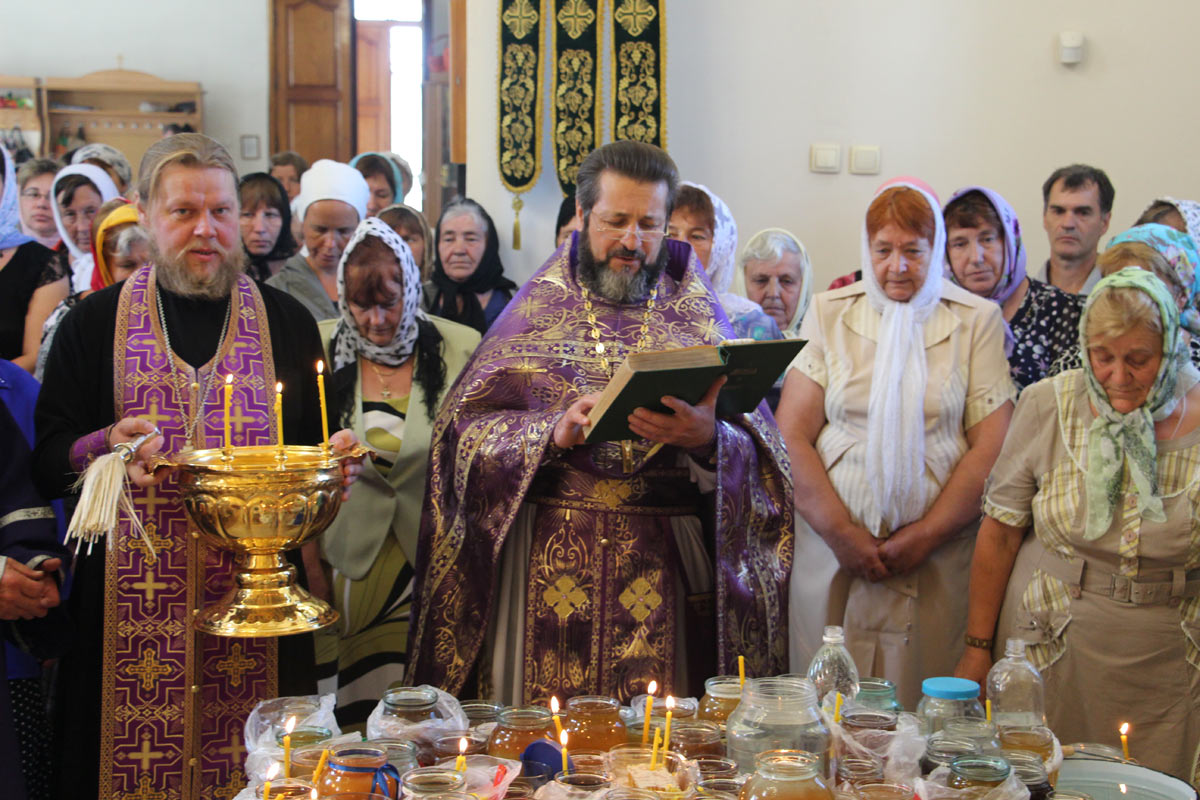14 августа, в праздник происхождение (изнесение) честных древ Животворящего Креста Господня в храме Космы и Дамиана в п.Думиничи протоиерей Иоанн Староста совершил божественную литургию, водосвятный молебен и освящение меда.