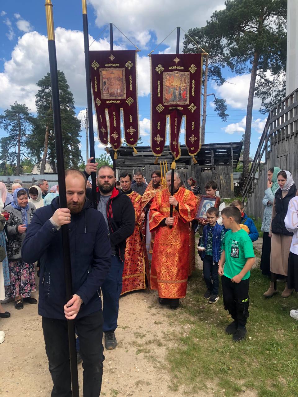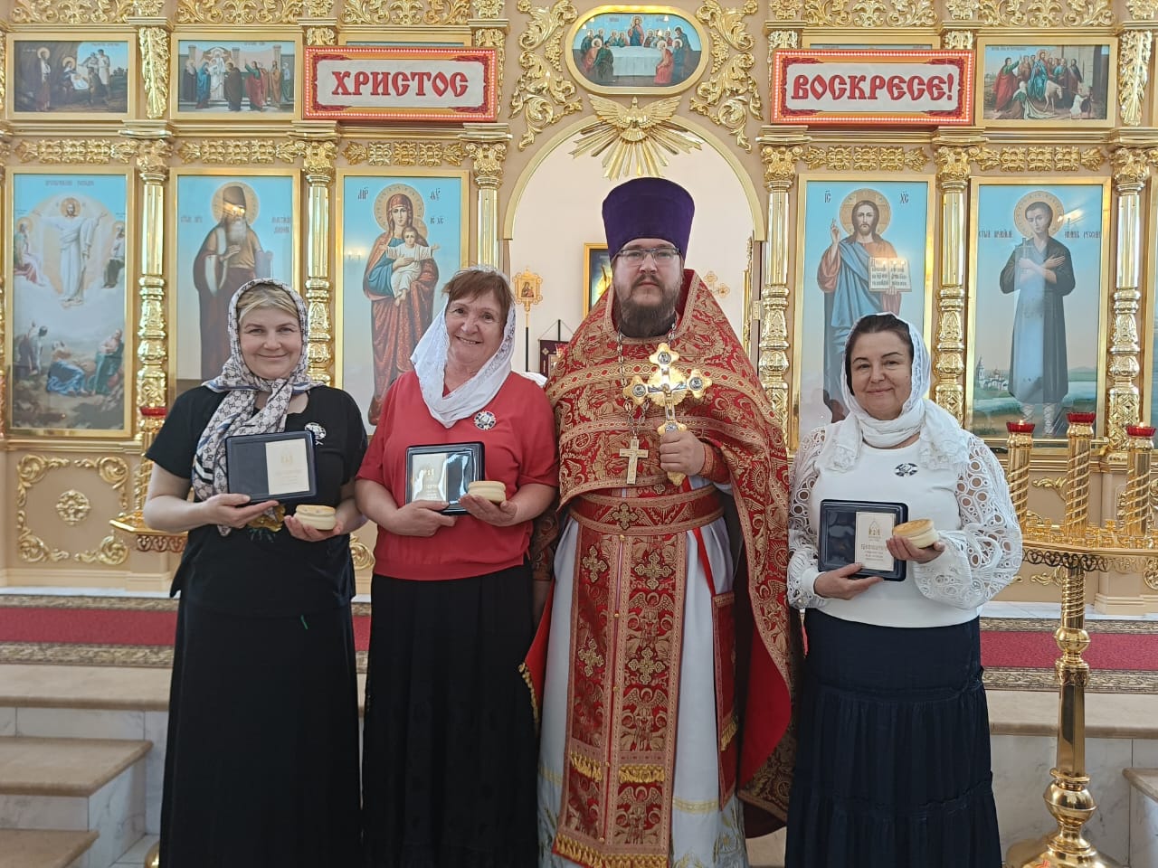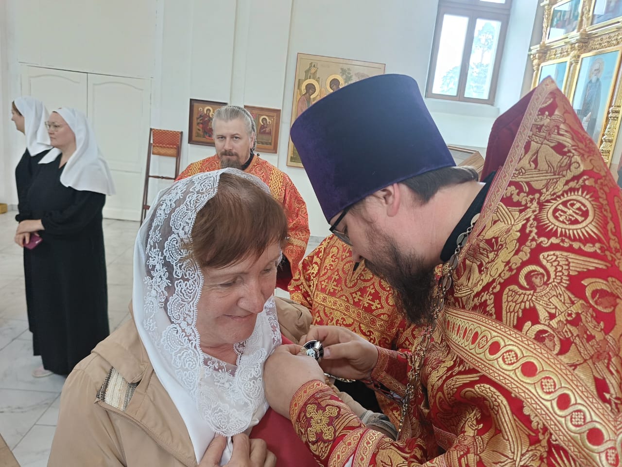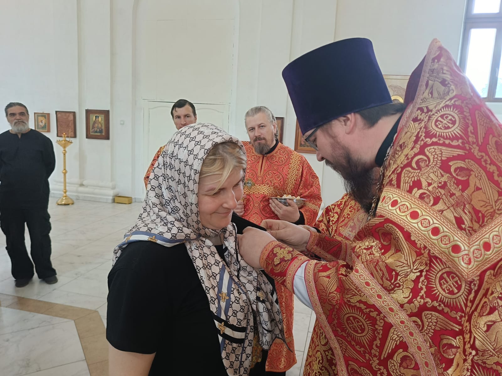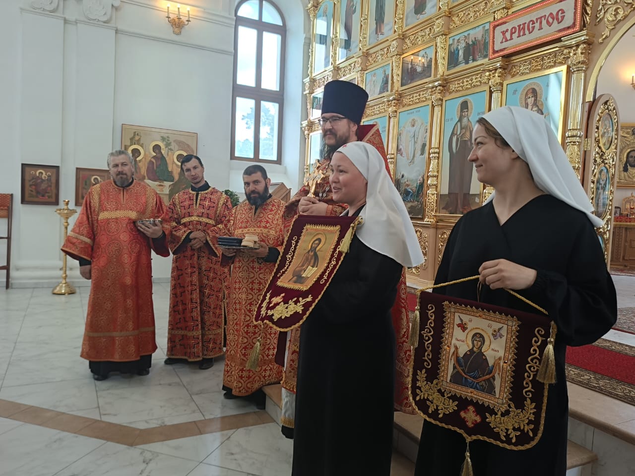 За богослужением вместе с прихожанами храма молились сестры сестричества милосердия в честь святой императрицы Александры Фёдоровны при епархиальном Отделе по церковной благотворительности и социальному служению. Сестры передали настоятелю храма — иерею Дионисию Куваеву, хоругви, сшитые специально для блиндажных храмов в зоне проведения СВО.