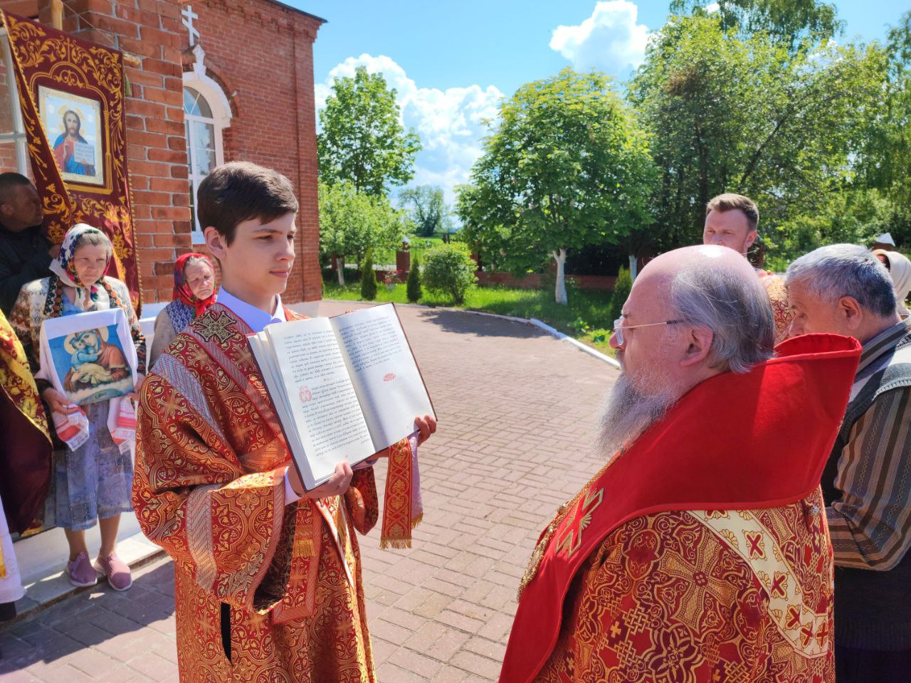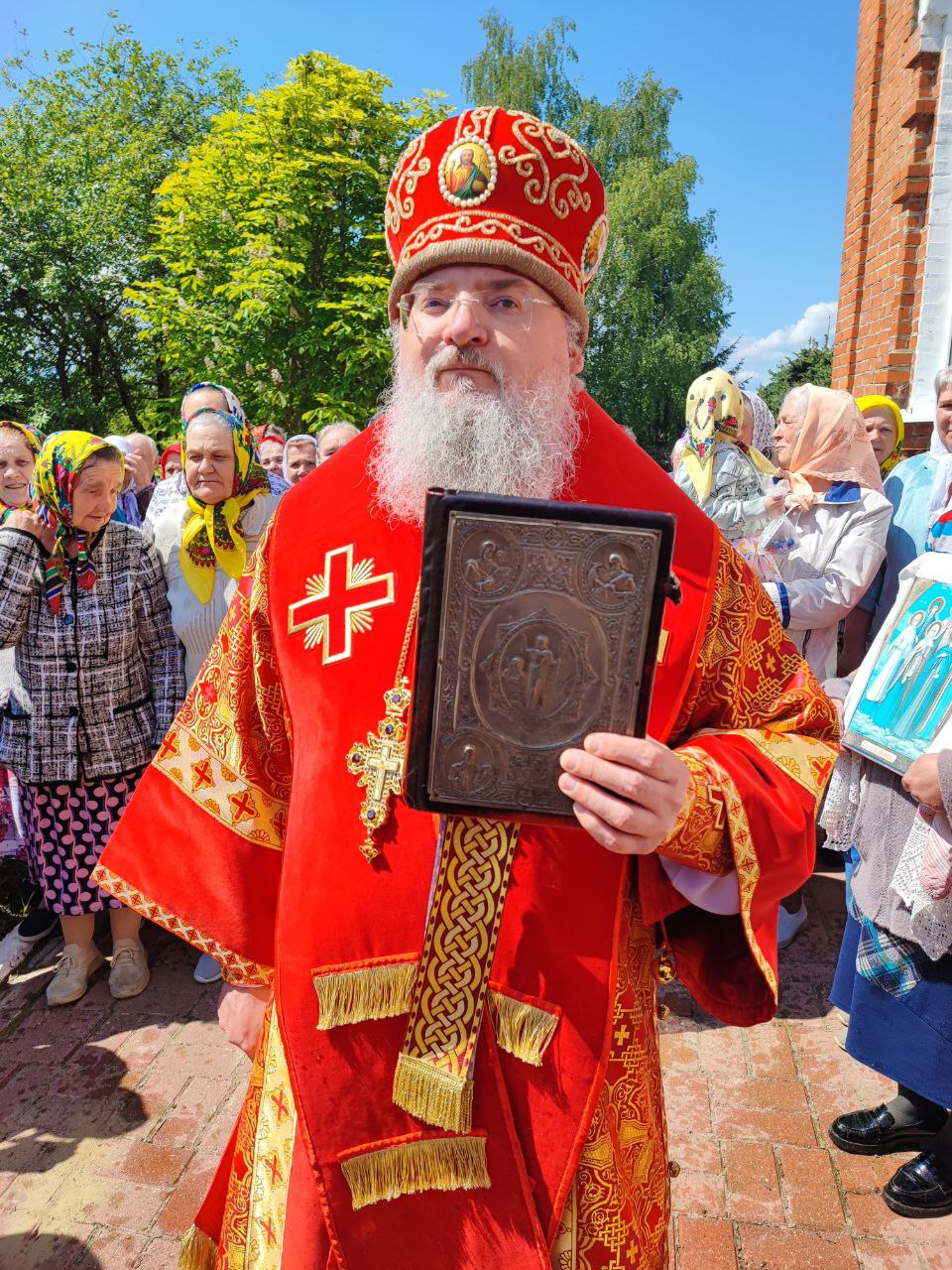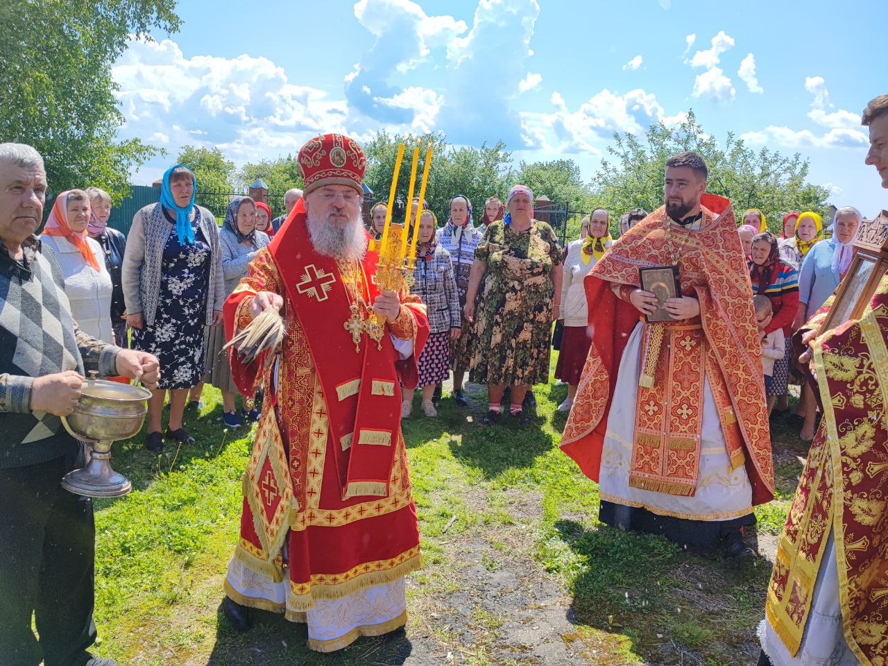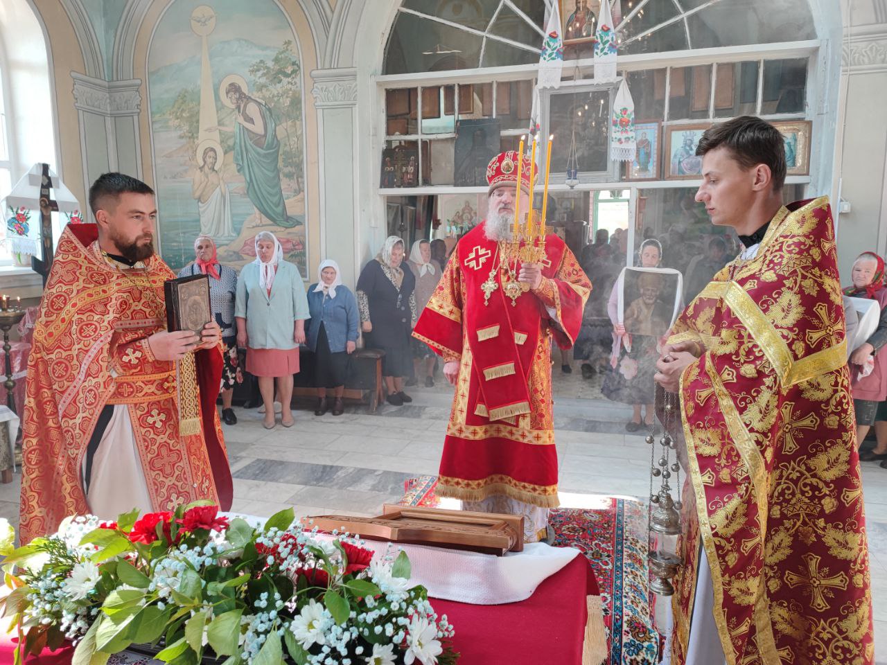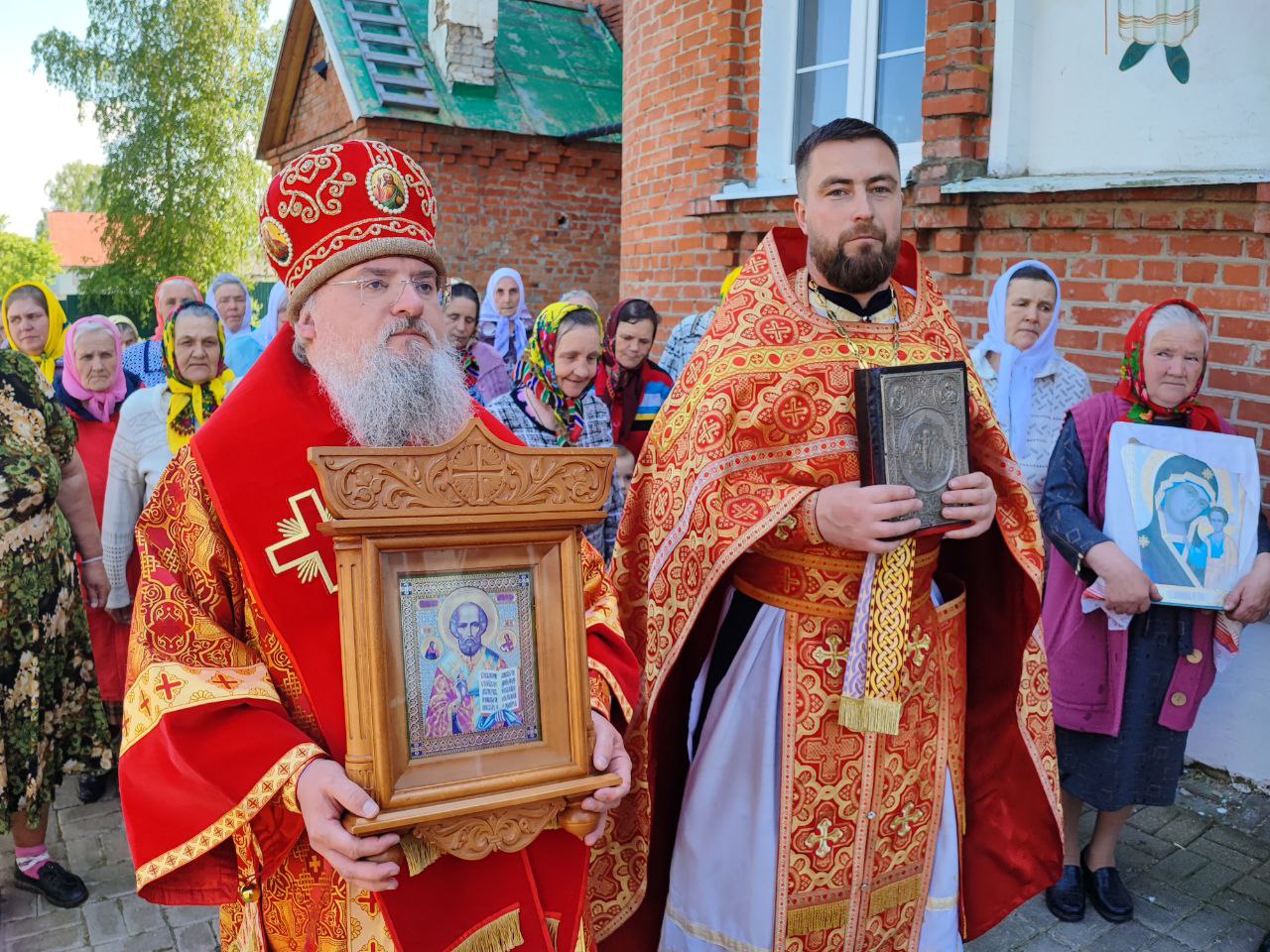 22 мая 2024 года. Праздник перенесения мощей святителя и чудотворца Николая из Мир Ликийских в Бари. Епископ Козельский и Людиновский Никита возглавил Божественную литургию в Никольском храме села Бояновичи Хвастовичского района. За богослужением преосвященному владыке сослужили: иерей Андрей Ахмедов – настоятель храма, иерей Филипп Лисенков и диакон Евгений Ковригин. На Малом входе, во внимание к ревностному служению во славу Святой Церкви, иерей Андрей Ахмедов был удостоен права ношения наперстного креста золотого цвета. На литургии были вознесены особые прошения и молитва о Святой Руси. По благословению Святейшего Патриарха Московского и всея Руси Кирилла эта сугубая молитва совершается во всех храмах Русской Православной Церкви за каждым богослужением. После отпуста литургии состоялся праздничный молебен и крестный ход вокруг храма во время которого у могилы строителя и многолетнего настоятеля храма приснопоминаемого архимандрита Серафима (Олиферчука) были совершены заупокойные песнопения.  В завершении торжественного шествия владыка вознес молитву святителю и чудотворцу Николаю, а затем обратился с проповедью к богомольцам.