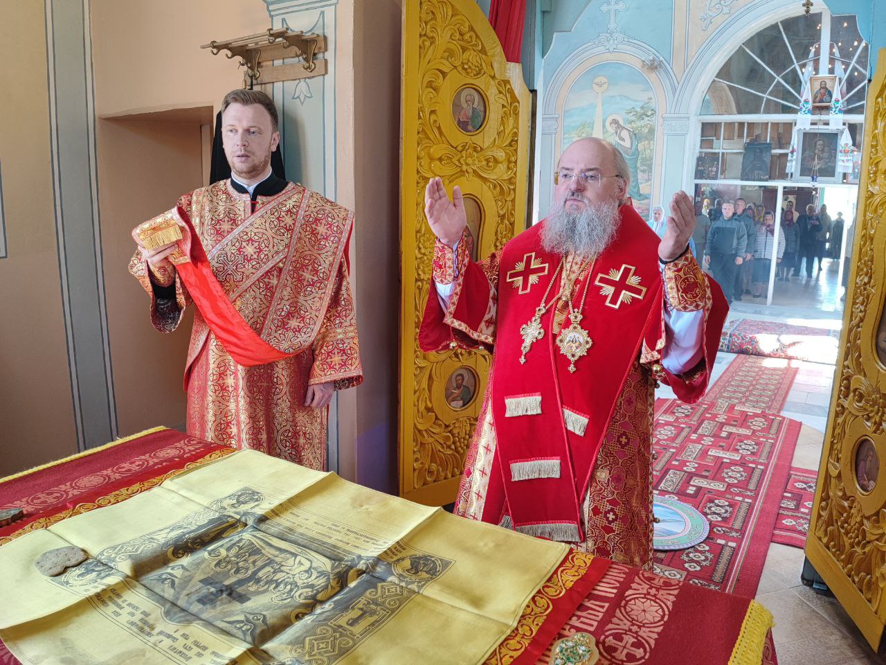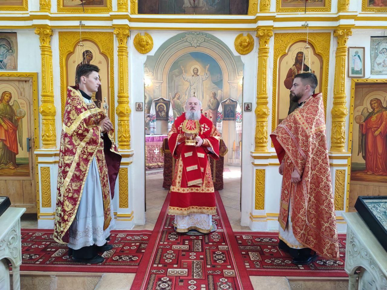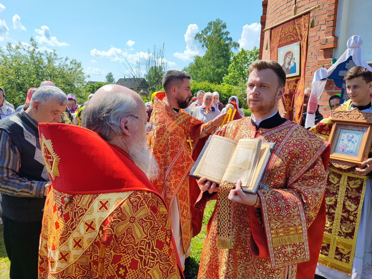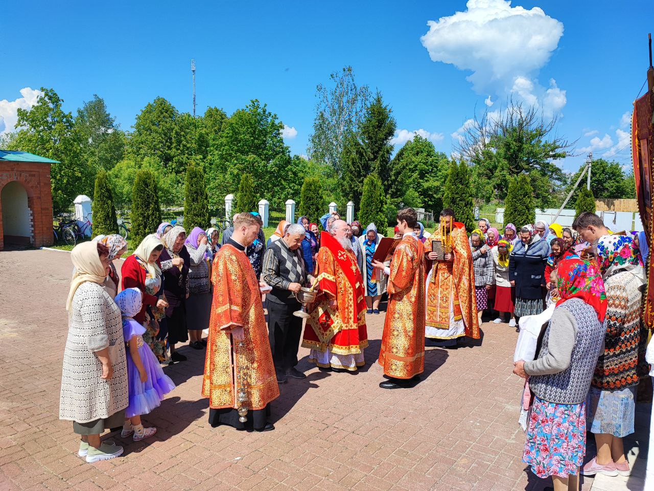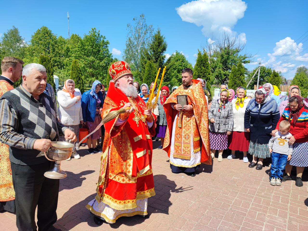 22 мая 2024 года. Праздник перенесения мощей святителя и чудотворца Николая из Мир Ликийских в Бари. Епископ Козельский и Людиновский Никита возглавил Божественную литургию в Никольском храме села Бояновичи Хвастовичского района. За богослужением преосвященному владыке сослужили: иерей Андрей Ахмедов – настоятель храма, иерей Филипп Лисенков и диакон Евгений Ковригин. На Малом входе, во внимание к ревностному служению во славу Святой Церкви, иерей Андрей Ахмедов был удостоен права ношения наперстного креста золотого цвета. На литургии были вознесены особые прошения и молитва о Святой Руси. По благословению Святейшего Патриарха Московского и всея Руси Кирилла эта сугубая молитва совершается во всех храмах Русской Православной Церкви за каждым богослужением. После отпуста литургии состоялся праздничный молебен и крестный ход вокруг храма во время которого у могилы строителя и многолетнего настоятеля храма приснопоминаемого архимандрита Серафима (Олиферчука) были совершены заупокойные песнопения.  В завершении торжественного шествия владыка вознес молитву святителю и чудотворцу Николаю, а затем обратился с проповедью к богомольцам.