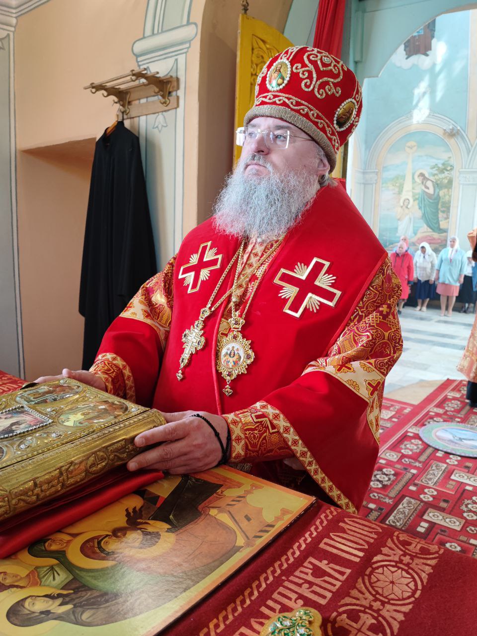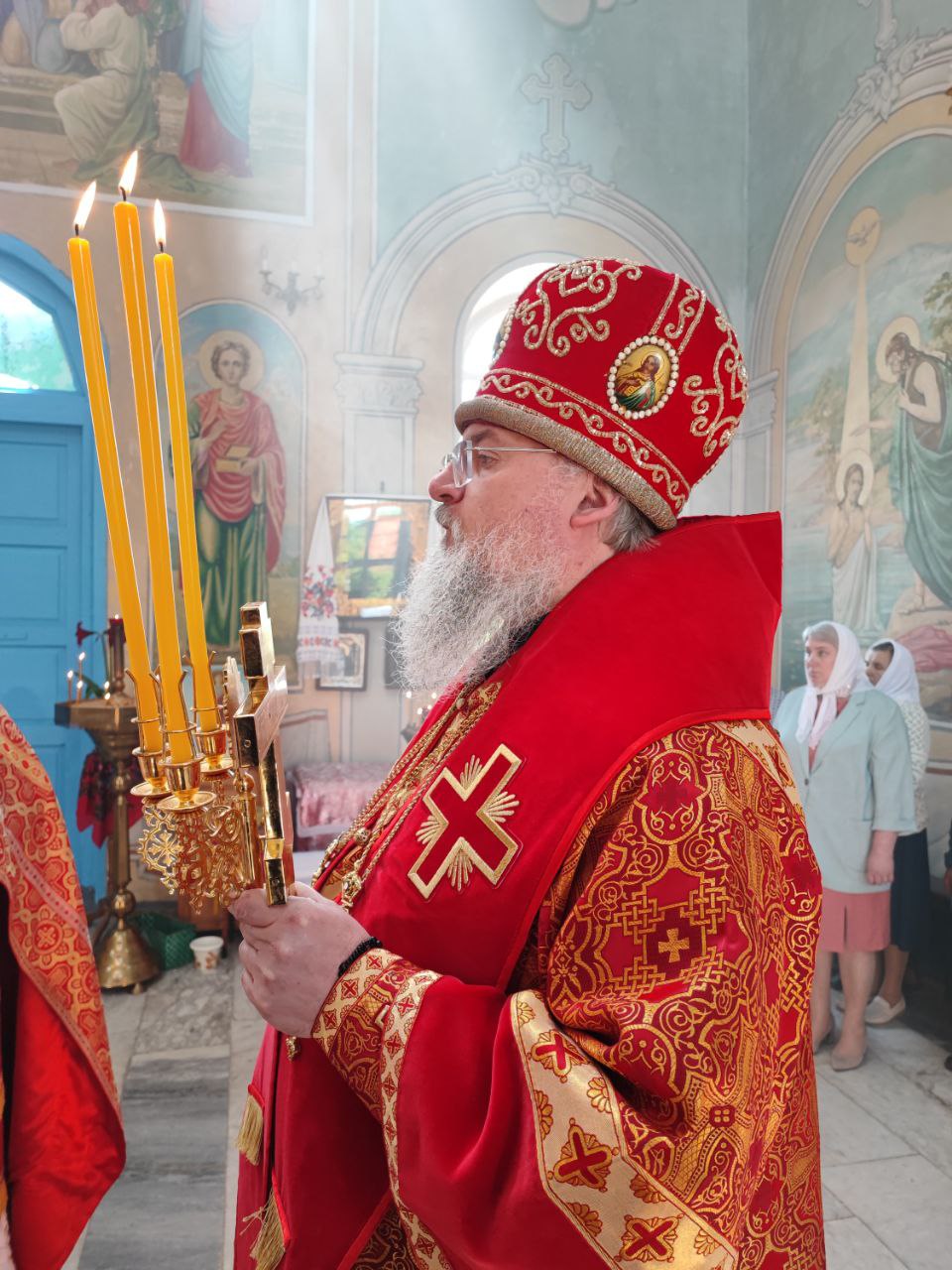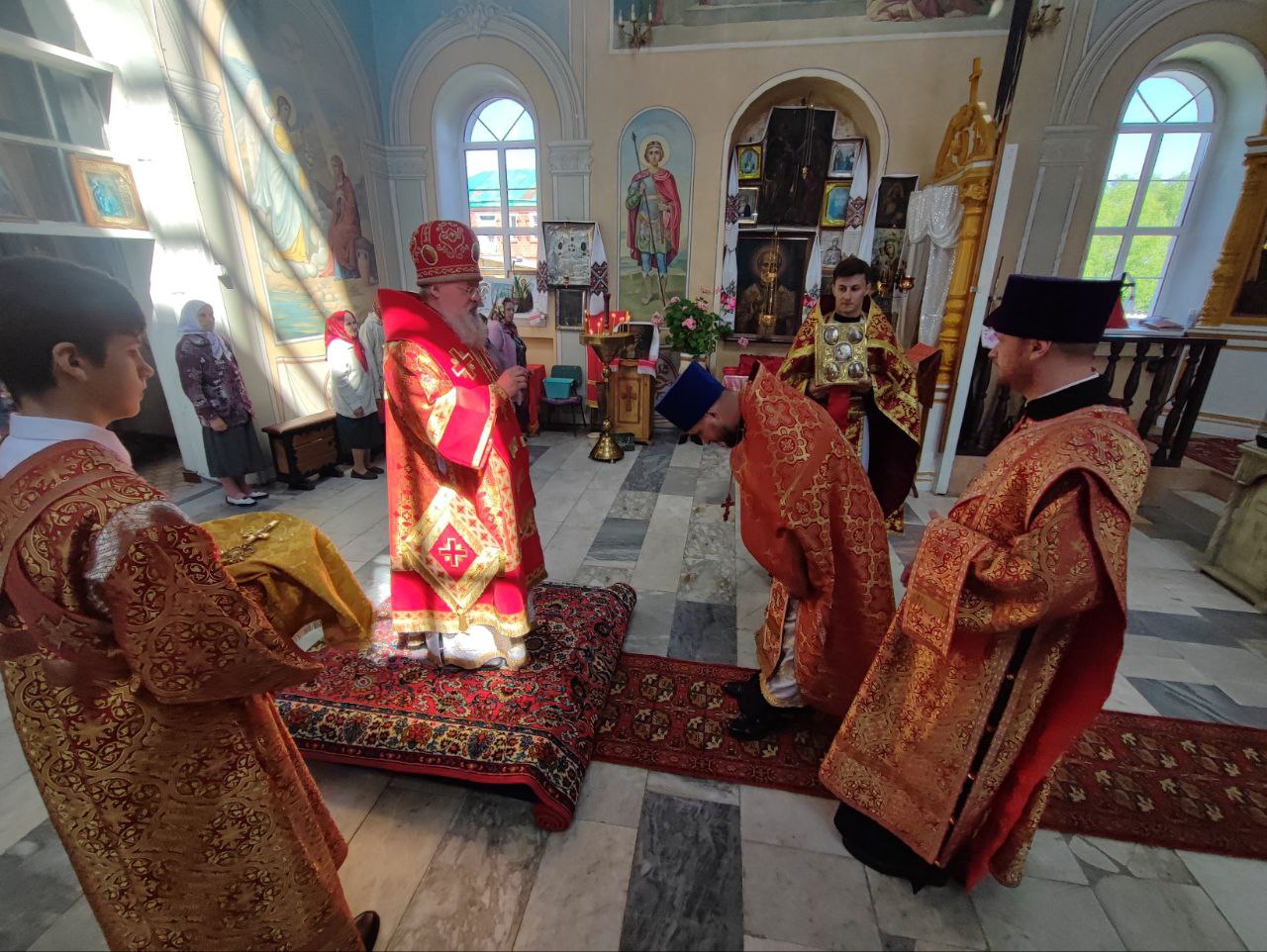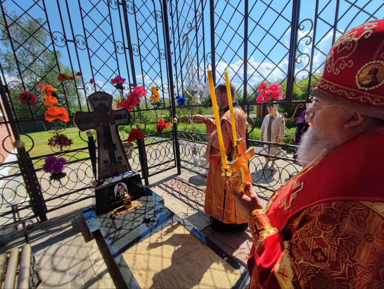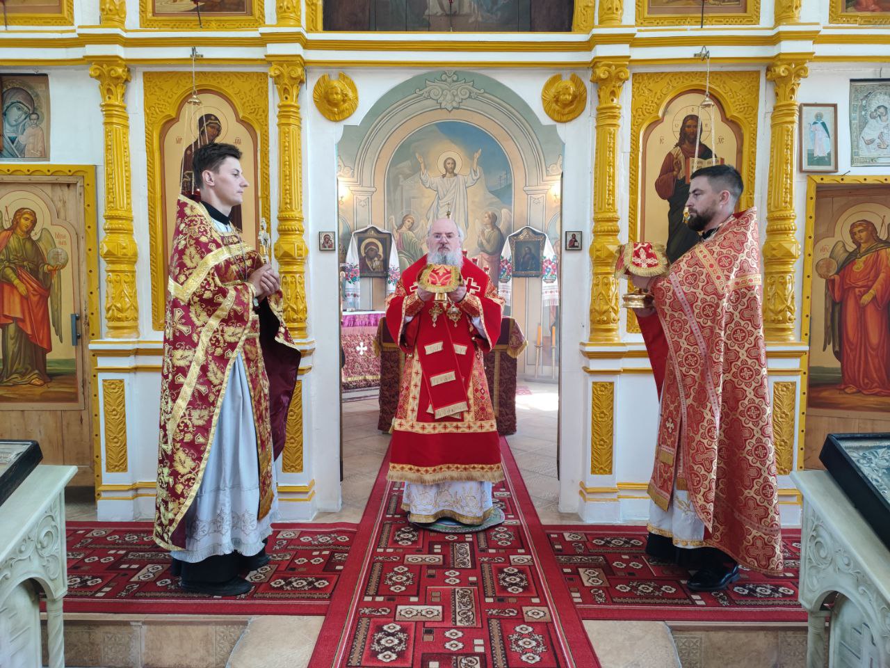 22 мая 2024 года. Праздник перенесения мощей святителя и чудотворца Николая из Мир Ликийских в Бари. Епископ Козельский и Людиновский Никита возглавил Божественную литургию в Никольском храме села Бояновичи Хвастовичского района. За богослужением преосвященному владыке сослужили: иерей Андрей Ахмедов – настоятель храма, иерей Филипп Лисенков и диакон Евгений Ковригин. На Малом входе, во внимание к ревностному служению во славу Святой Церкви, иерей Андрей Ахмедов был удостоен права ношения наперстного креста золотого цвета. На литургии были вознесены особые прошения и молитва о Святой Руси. По благословению Святейшего Патриарха Московского и всея Руси Кирилла эта сугубая молитва совершается во всех храмах Русской Православной Церкви за каждым богослужением. После отпуста литургии состоялся праздничный молебен и крестный ход вокруг храма во время которого у могилы строителя и многолетнего настоятеля храма приснопоминаемого архимандрита Серафима (Олиферчука) были совершены заупокойные песнопения.  В завершении торжественного шествия владыка вознес молитву святителю и чудотворцу Николаю, а затем обратился с проповедью к богомольцам.