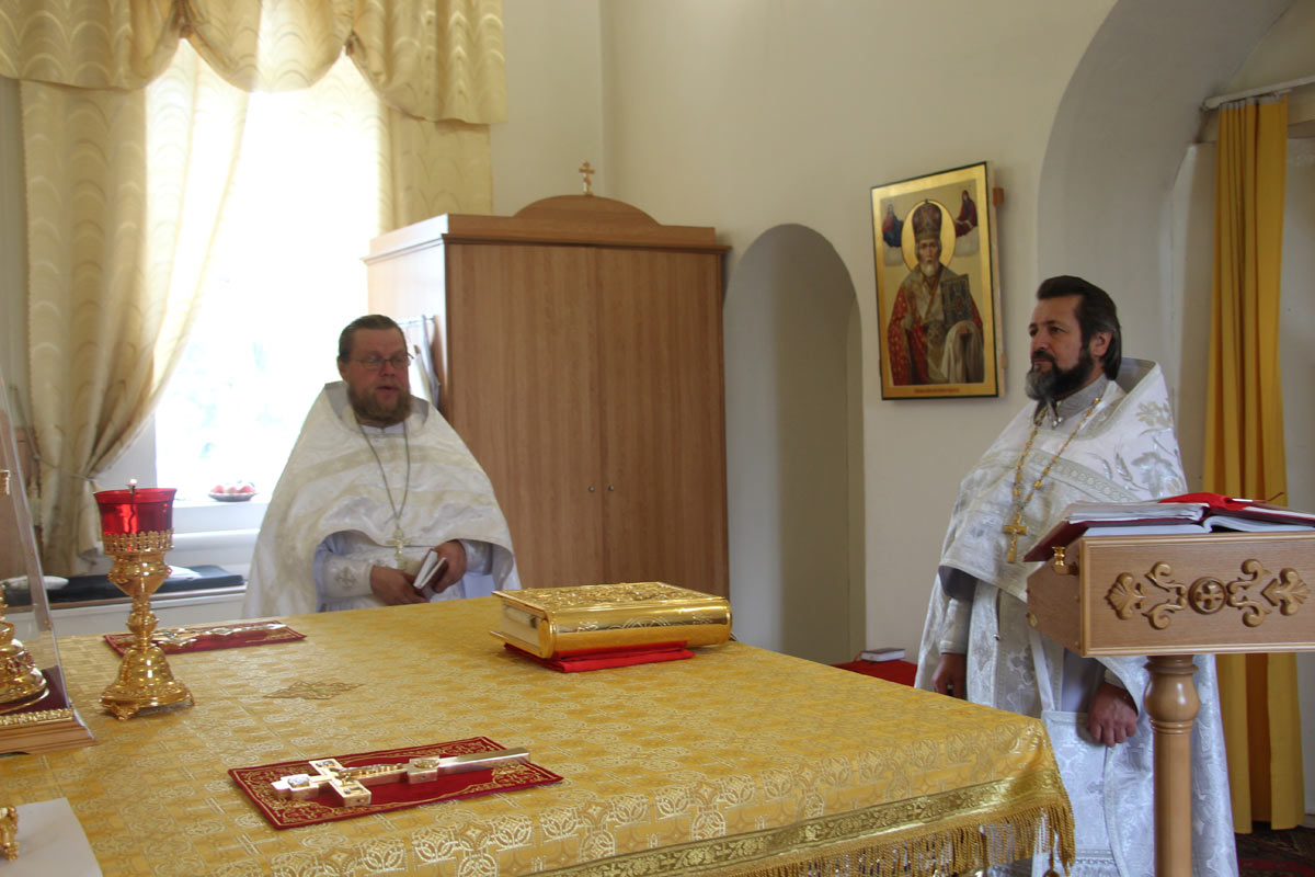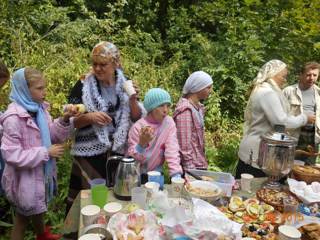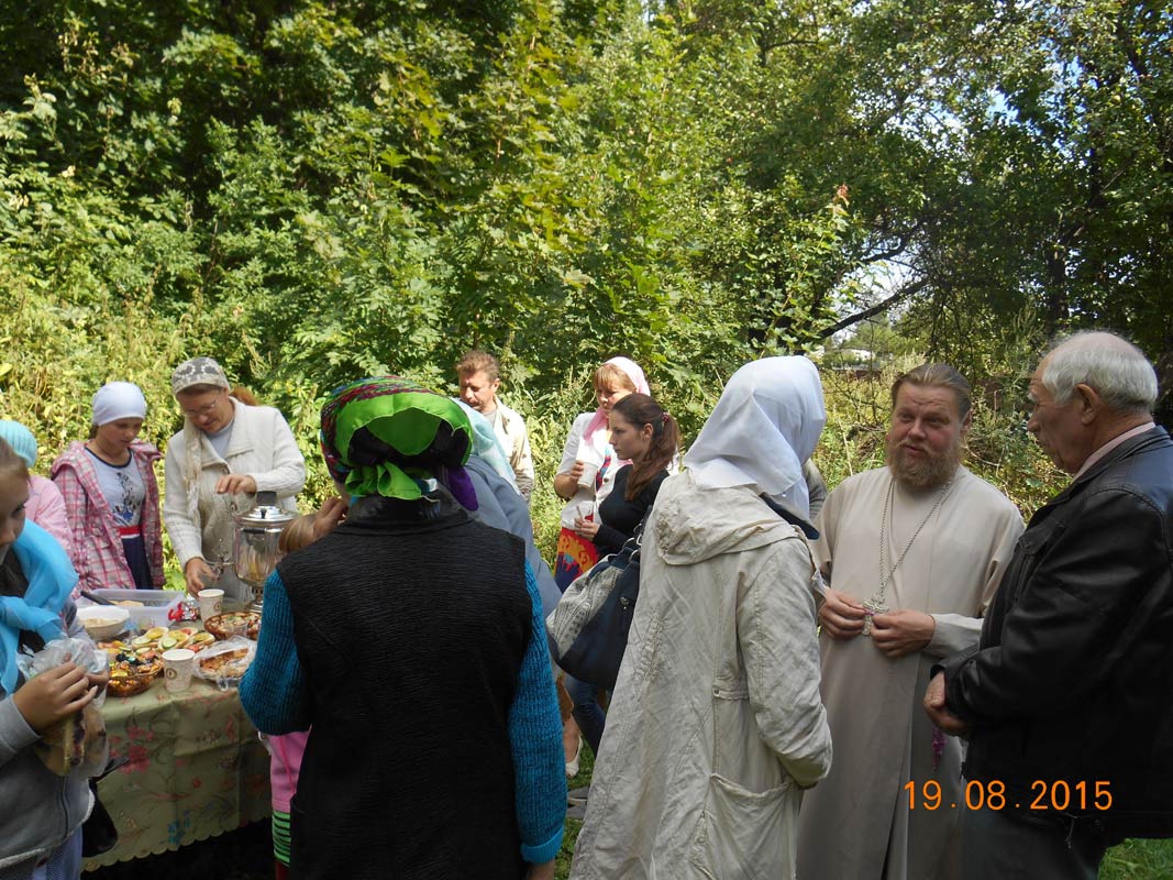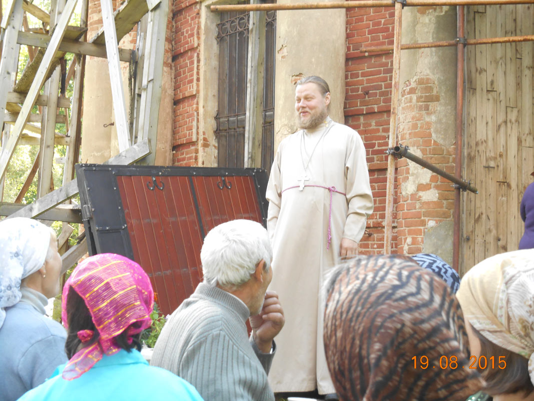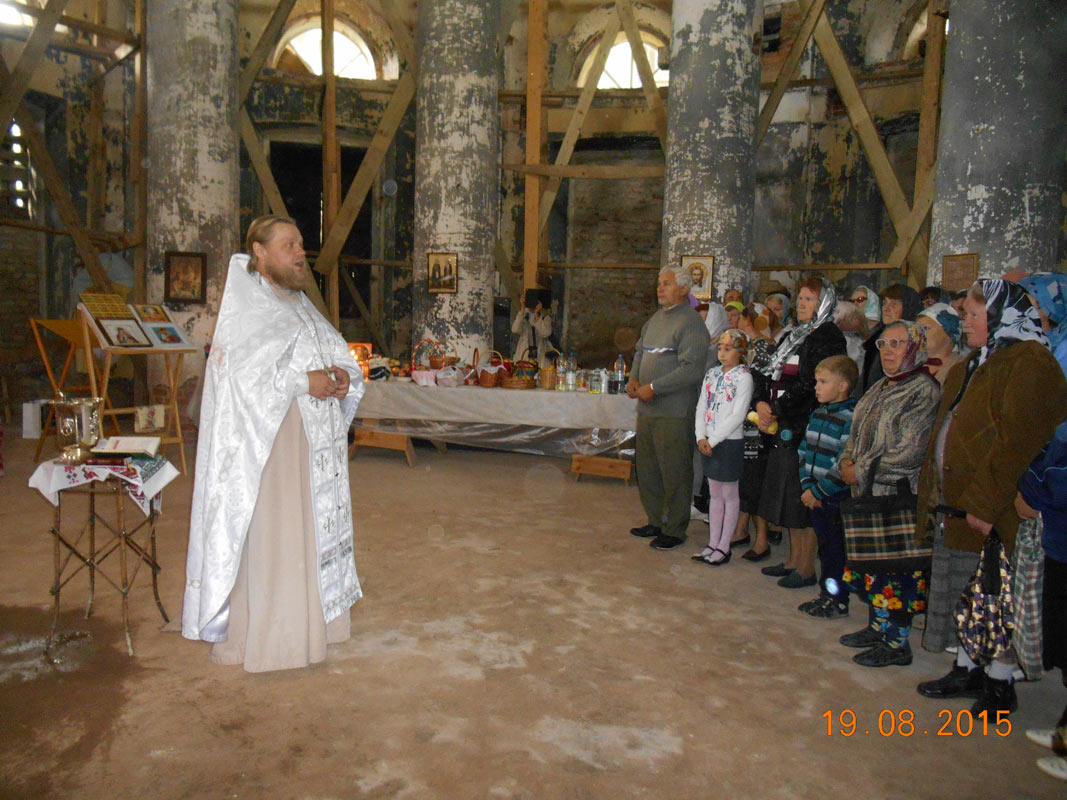 Настоятель поздравил прихожан с великим праздником Преображения Господня и произнес поучительное слово о значении и истории праздника. Затем иеромонах Никон Харьков по случаю престольного праздника совершил водосвятный молебен и освящение плодов в храме Преображения Господня в селе Брынь Думиничского района. Батюшка произнес проповедь, поздравил с Праздником и вручил образок Преображения Господня всем молящимся.
