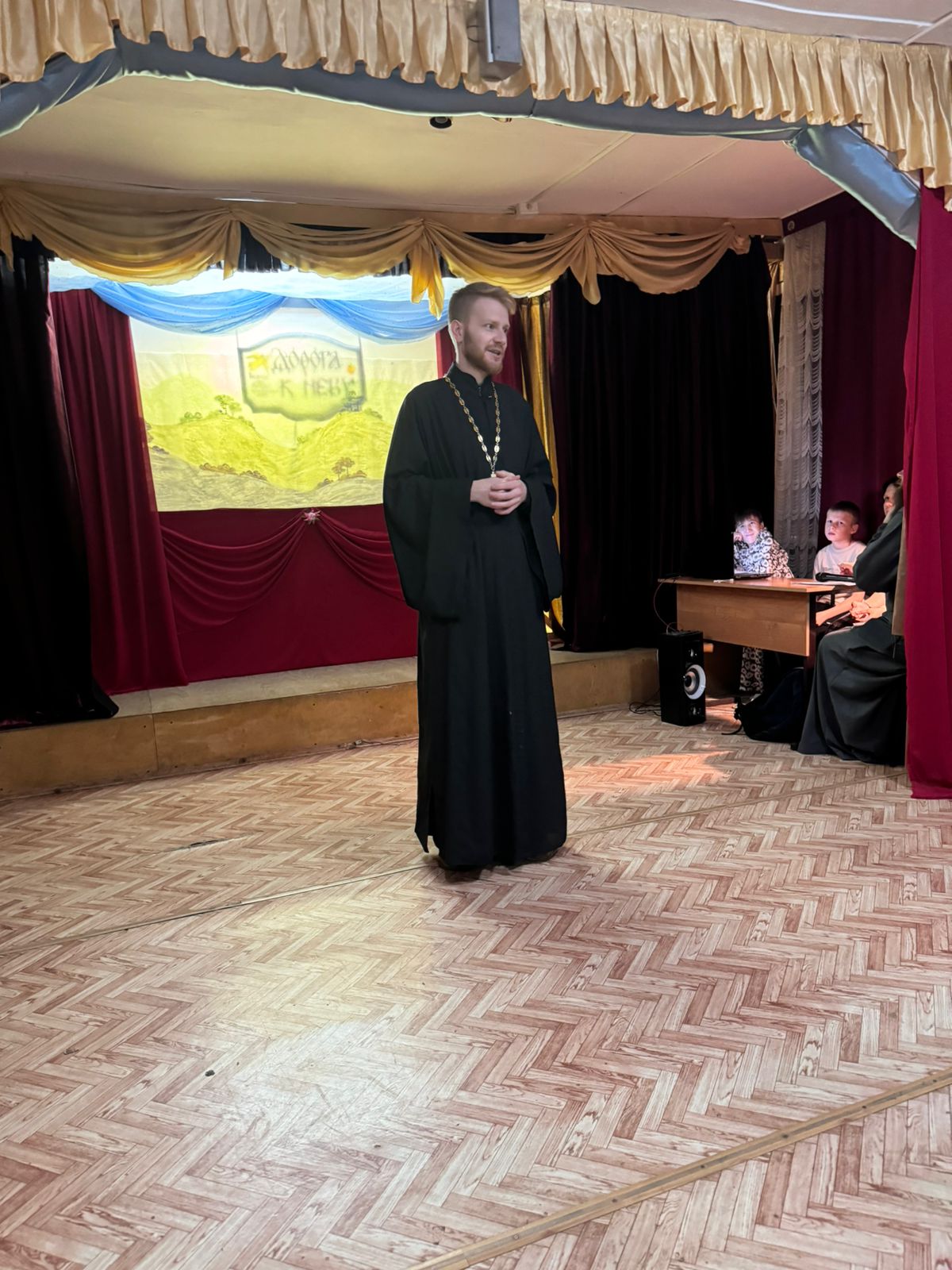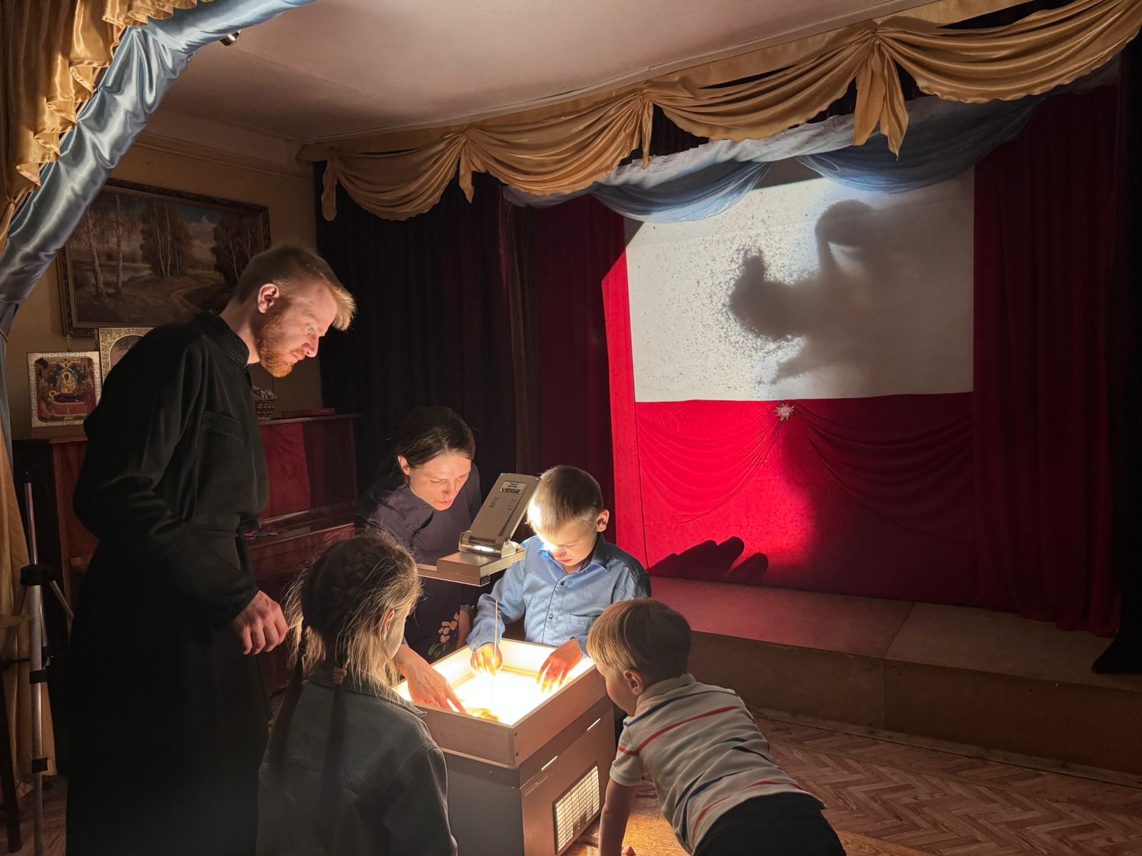 22 мая воскресная школа Успенского кафедрального собора города Козельска поздравила детей из речевой школы интерната с Воскресением Христовым. Воспитанники Воскресной школы преподнесли праздничный подарок, показав детям из интерната пасхальную постановку театра теней под названием «Дорога к небу». После этого для детей был организован увлекательный мастер-класс по рисованию на песке, который принес массу радости и восторга. В завершение вечера каждый ребенок получил сладкий подарок, чтобы подчеркнуть радостное настроение праздника. Все участники встречи испытали непередаваемую радость от общения и взаимного вдохновения.