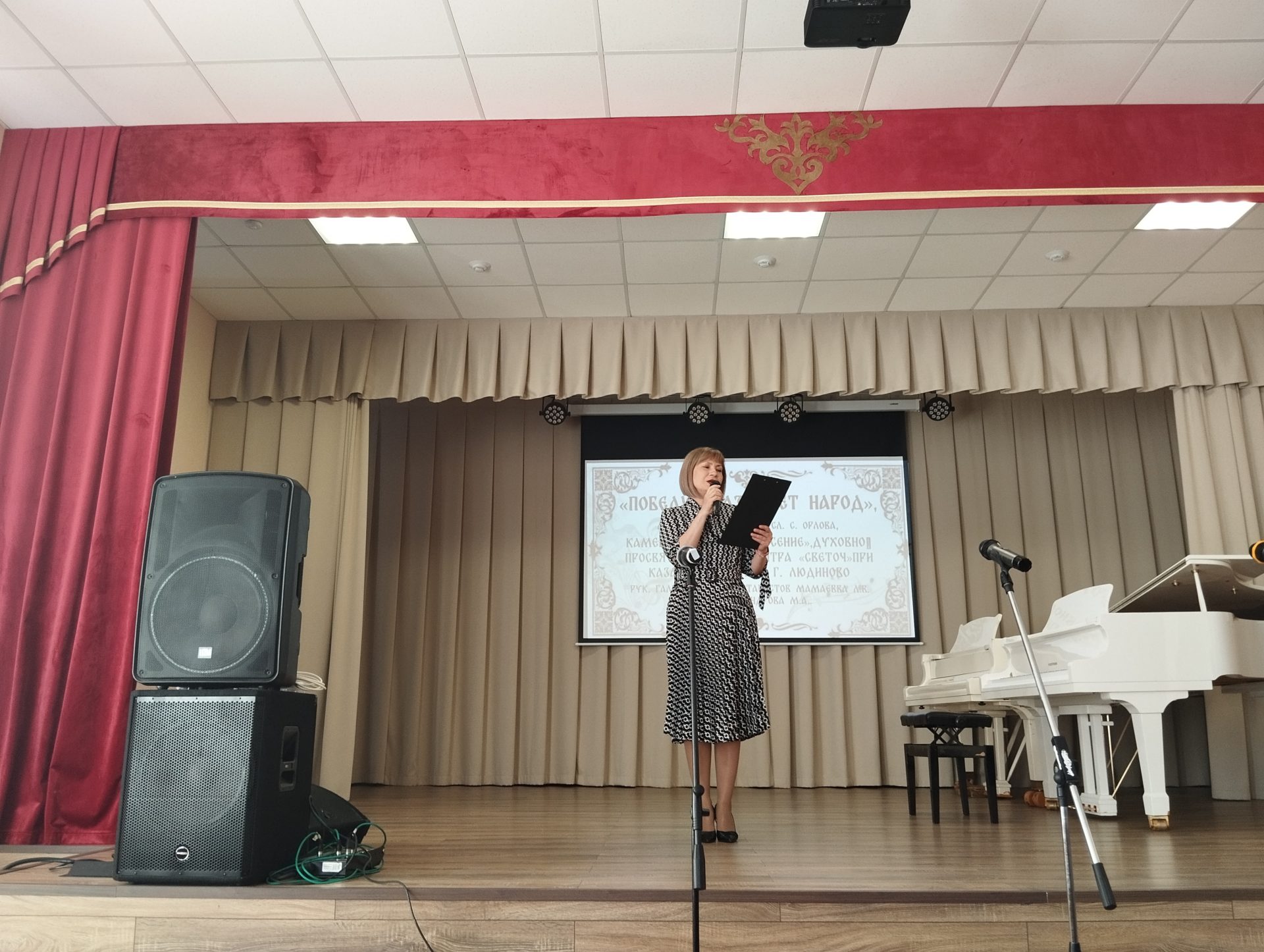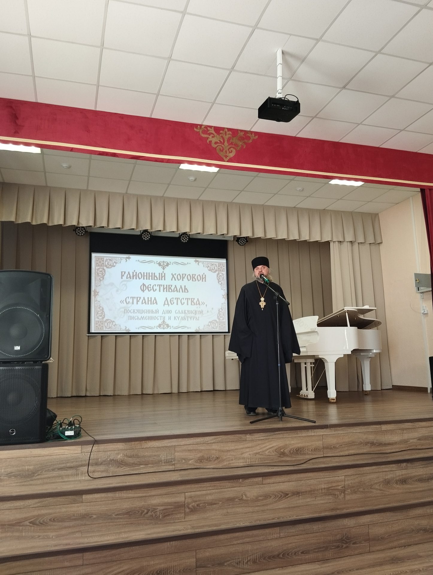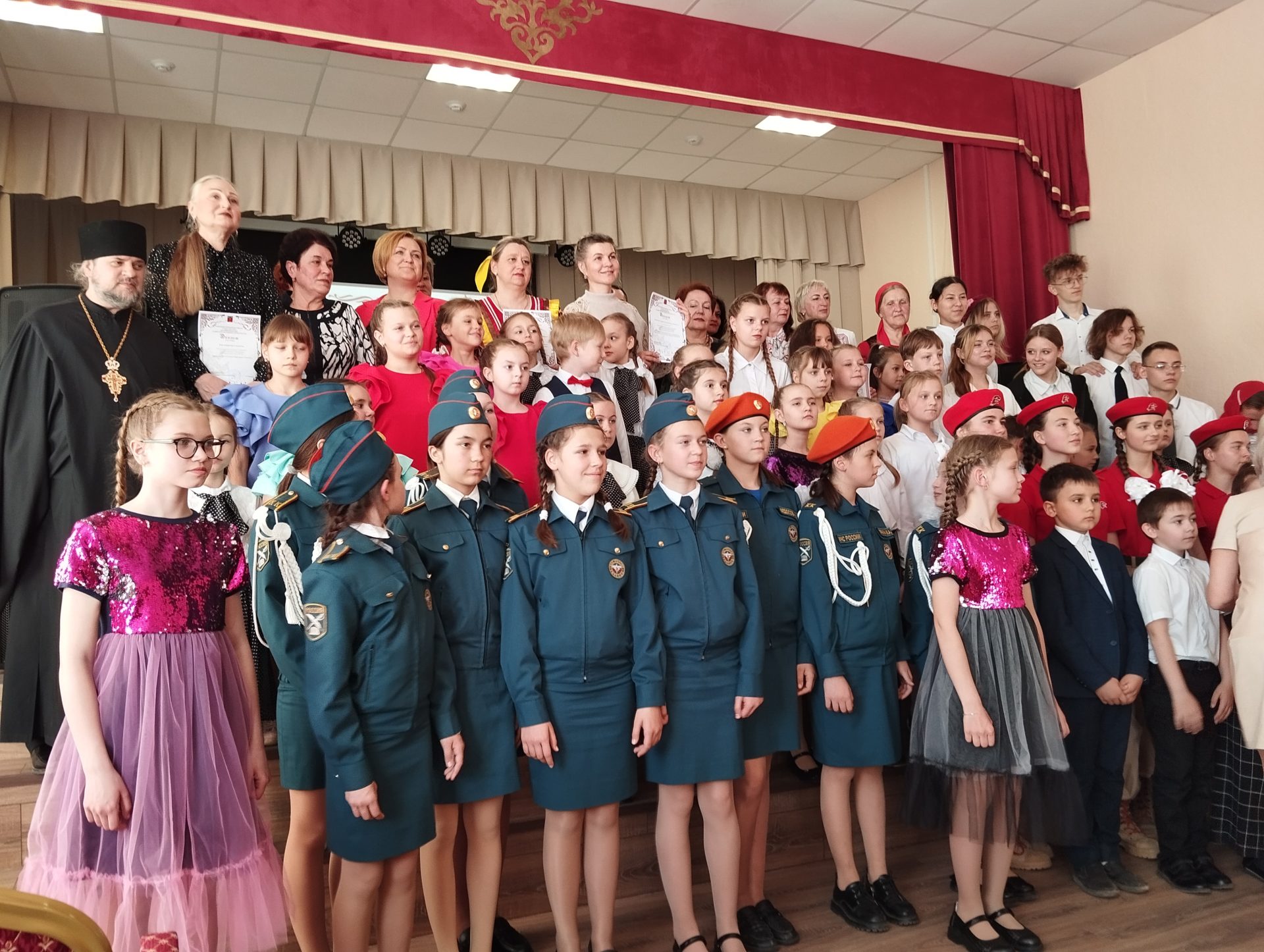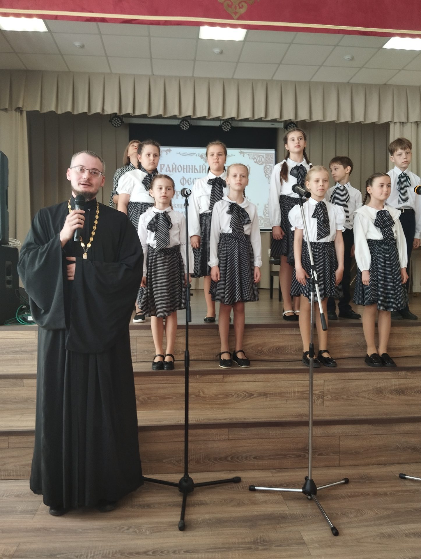 В начале праздника с приветственным словом ко всем присутствующим обратился клирик Казанского собора иерей Алексий Сначёв, пожелав всем творческих успехов и хорошего выступления. В хоровом фестивале от Воскресной школы «Светоч» при Казанском соборе города Людиново были представлены два творческих коллектива: камерный хор «Воскресение» и ансамбль «Благовест», руководителем которых является Галина Александровна Галий, концертмейстером Маргарита Александровна Александрова, руководителем группы гитаристов Людмила Васильевна Мамаева.