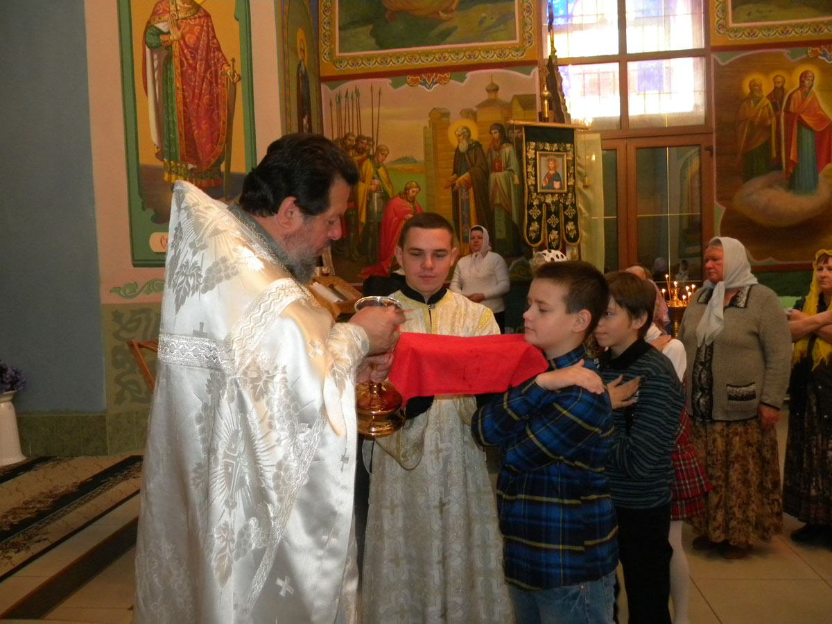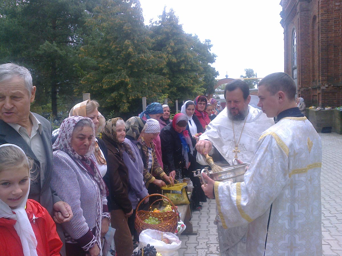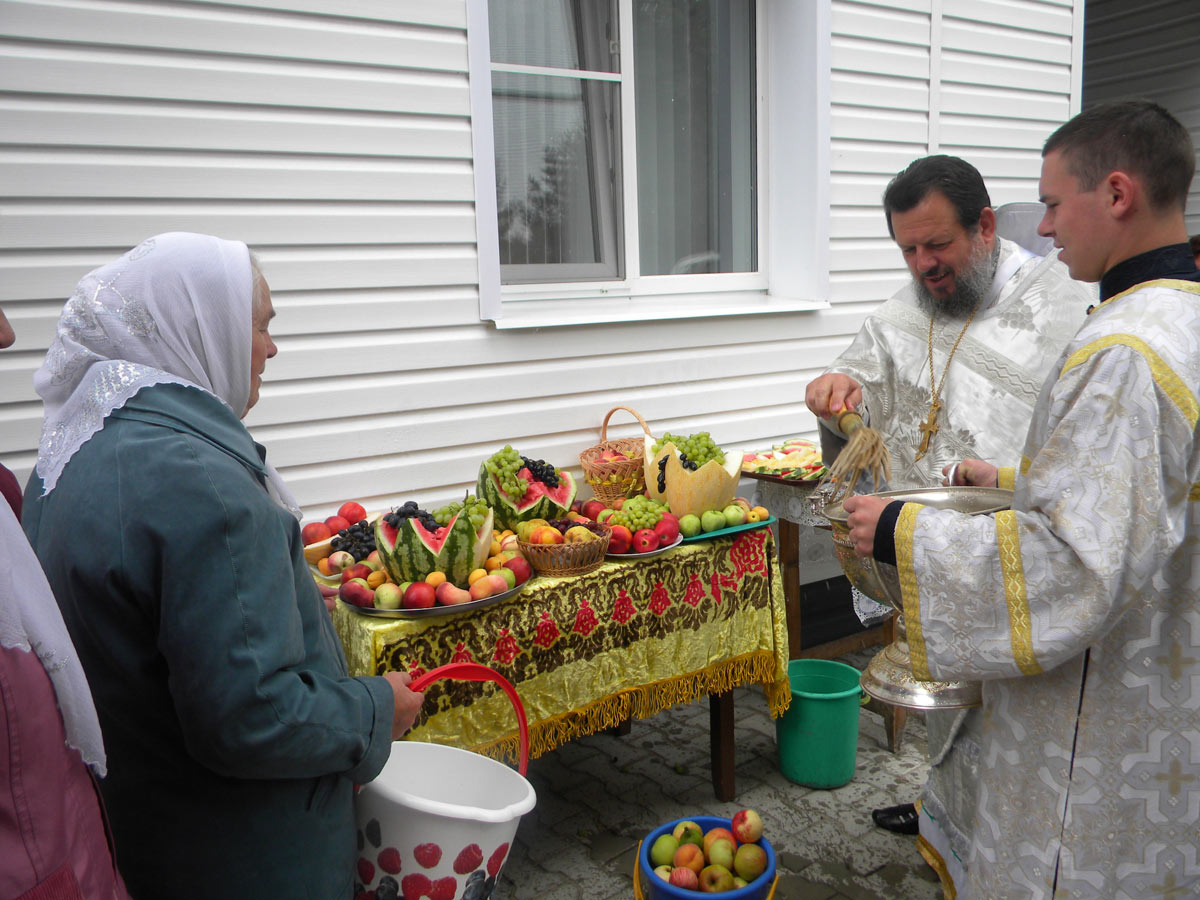 Настоятелю храма сослужил клирик храма протоиерей Димитрий Губаль. После заамвонной молитвы было совершено освящение плодов нового урожая, а затем о.Василий обратился к молящимся со словами поздравления с праздником и произнес проповедь. После Божественной Литургии был отслужен праздничный водосвятный молебен. По окончании Богослужения всех прихожан по традиции ожидало сладкое угощение освященных плодов.