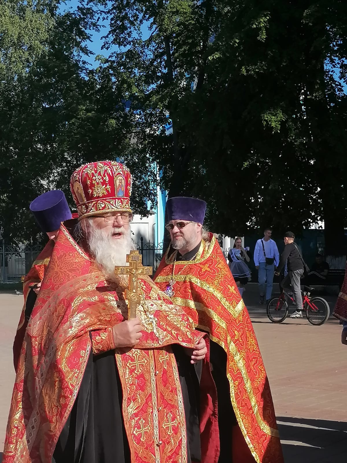 24 мая 2024 года, в день празднования равноапостольных Кири́лла и Мефо́дия, учи́телей Слове́нских, вечером, по традиции от Казанского собора города Людиново, был совершён крестный ход на Фонтанную площадь города, где настоятель Казанского собора протоиерей Алексий Жиганов в сослужении настоятеля храма в честь святого праведного Лазаря протоиерея Михаила Карпенко, клирика Казанского собора иерея Алексия Сначёва, клирика Лазаревского храма иерея Иоанна Майорова совершили молебен святым равноапостольным братьям. Затем отец Алексий, поздравив всех с праздником, благословил выпускников общеобразовательных школ, которые были на молебне, на выбор правильного жизненного пути и обратился ко всем присутствующим с проповедью: «День святых Кирилла и Мефодия отмечается во всех славянских странах 24 мая ежегодно, еще этот день называют Днем славянской письменности и культуры. Из церковного предания известно, что Кирилл и Мефодий были славянского происхождения. Они хорошо знали славянское наречие. И ту азбуку, которую они создали, мы используем до сих пор, называется она «кириллица» по имени равноапостольного Кирилла. Сегодня, дорогие людиновцы, вы знаете, чествуется День тезоименитства Святейшего Патриарха Кирилла. И по обычаю в этот день возглашается здравица Святейшему, и благодарение Господу, что в это непростое время послал нам такого мудрого архипастыря. Многая и благая лета ему в Первосвятительском служении Русской Православной Церкви! С праздником».