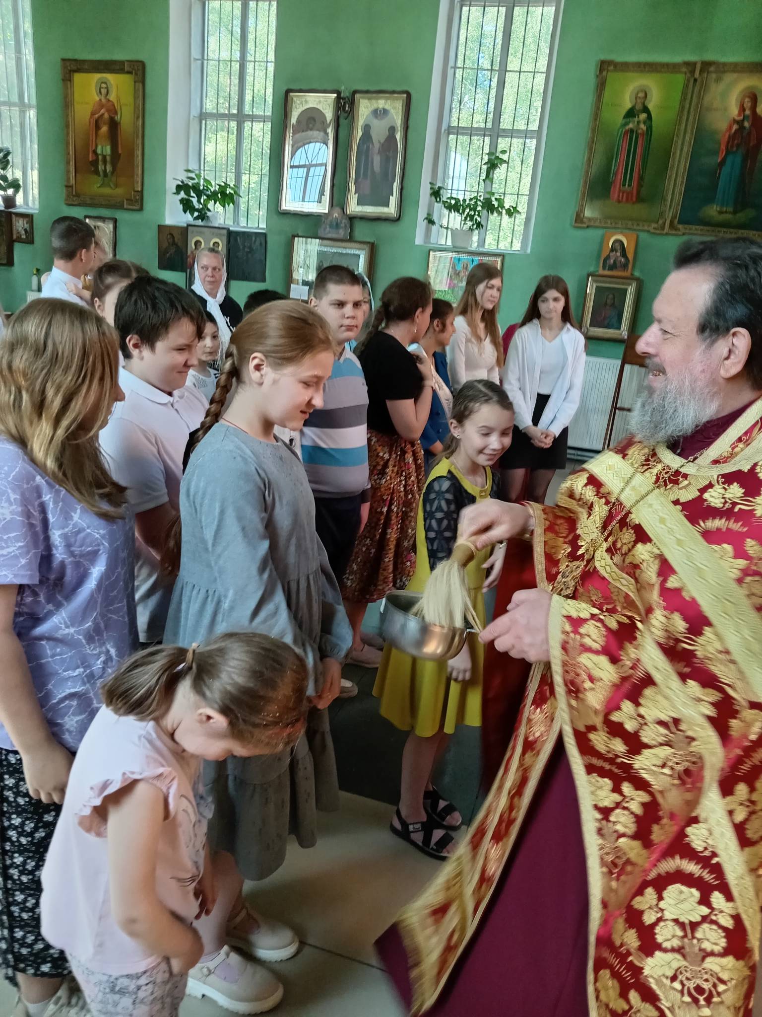 26 мая в Воскресной школе «Радонеж» города Людиново состоялся праздник, посвященный выпуску и окончанию учебного года. В храме преподобного Сергия Радонежского собрались настоятель храма протоиерей Василий Биляк, матушка Анна, ученики школы, родители, учитель – Клячина Татьяна Ивановна, гости. Отец Василий отслужил благодарственный молебен за успешно прошедший год обучения, по завершении которого батюшка окропил всех детей и родителей святой водой. Наступило время подвести итоги. Чем жила школа, чему учила, с каким «багажом» отправляет ребят в большую жизнь? Отец Василий поздравил всех учащихся с окончанием учебного года. Пожелал хорошего отдыха, здоровья, помощи Божьей в летнем отдыхе, не забывать в летнее время о молитве и о посещении храма. За тем, к ученикам и родителям с поздравлениями обратилась руководитель школы Клячина Татьяна Ивановна. Татьяна Ивановна призвала учеников не забывать посещать богослужения, внимательно относиться к своему здоровью, к своим родителям. Пожелала помощи Божией во всех их делах и начинаниях. Торжественной минутой праздника стало вручение свидетельств об окончании Воскресной школы, переходом ребят на следующую ступеньку их жизни. Настоятель храма протоиерей Василий вручил выпускникам этого года свидетельства об окончании Воскресной школы и пожелал, чтобы они, выйдя из стен школы, никогда не забывали то, чему их учили, пожелал помощи Божией в сдаче экзаменов в общеобразовательной школе и поступить в учебные заведения. Выпускники и родители выразили чувства глубокого уважения и благодарности батюшке Василию, матушке Анне, своему дорогому учителю Татьяне Ивановне, служителям храма. По сложившейся доброй традиции ребятам вручили сладкие подарки. В конце праздника были сделаны фотографии на память.