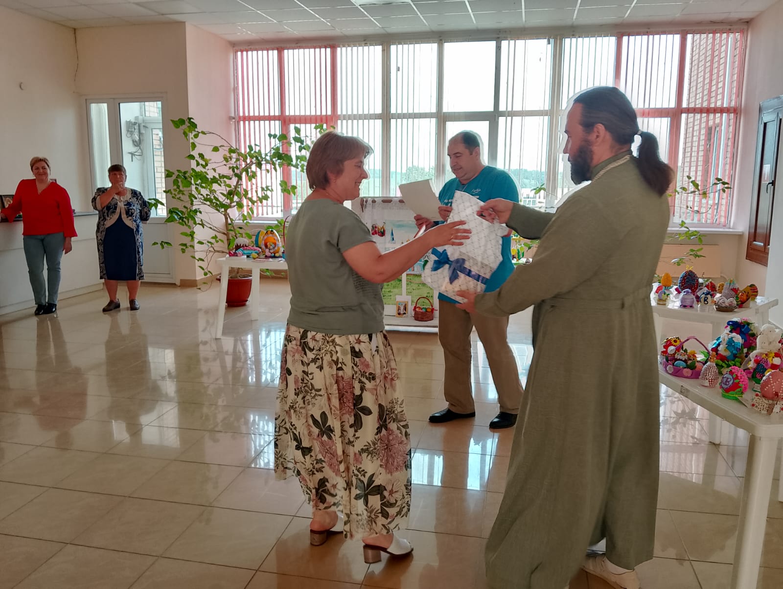 31 мая, в Ульяново состоялось закрытие пасхальной выставки ‘Пасха, Господня Пасха!’, которая проходила в Районном Досуговом Культурном Центре. За прошедшее время выставку посетило много жителей и гостей Ульяновского района. Благочинный округа протоиерей Максим Садовников участвовал в закрытии. Большинство участников получили благодарности за участие и шоколад. На выставке были представлены как детские работы, так и взрослые. Священником были выделены два лучших экспоната. За труды на ними батюшка вручил памятные подарки. Все участники выставки и ее посетители остались довольны и высказывали пожелания ежегодно проводить такие мероприятия. А священник отметил, что такие выставки развивают и радуют и участников, и зрителей.