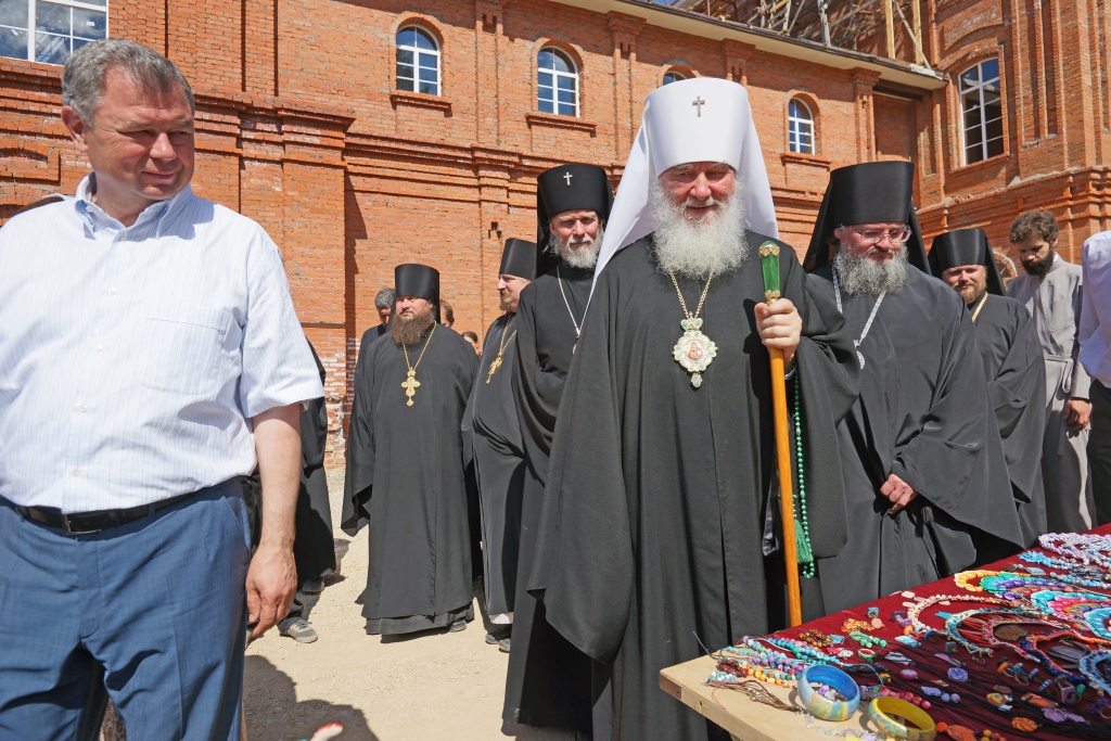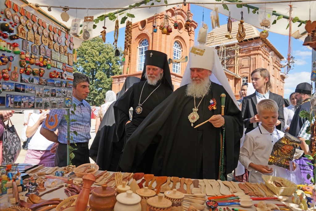 На территории подворья проходила ярмарка, которую посетил владыка Климент вместе с гостями обители.