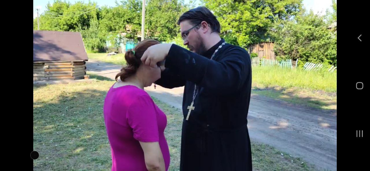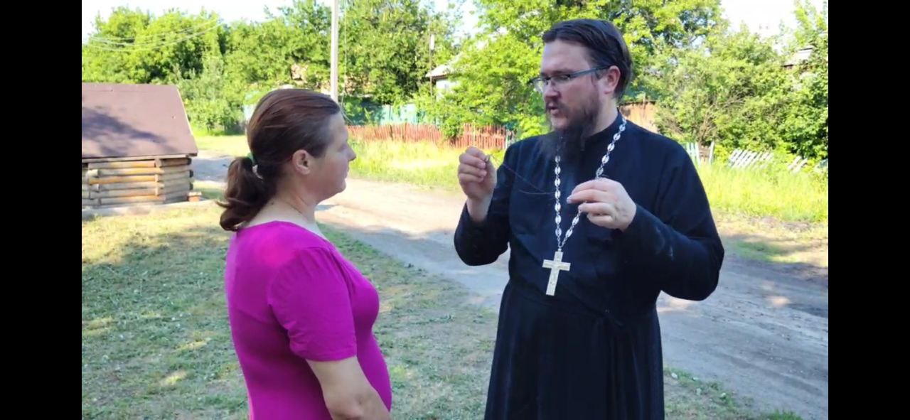 Затем отец Дионисий вместе с исполнительным директором БФ «Ридовка помогает» Дмитрием Смольяниновым отправился в поселок Орехово Лисичанского района для раздачи продуктовых наборов местным жителям, проживающим там в очень трудных бытовых условиях без электричества уже третий год.