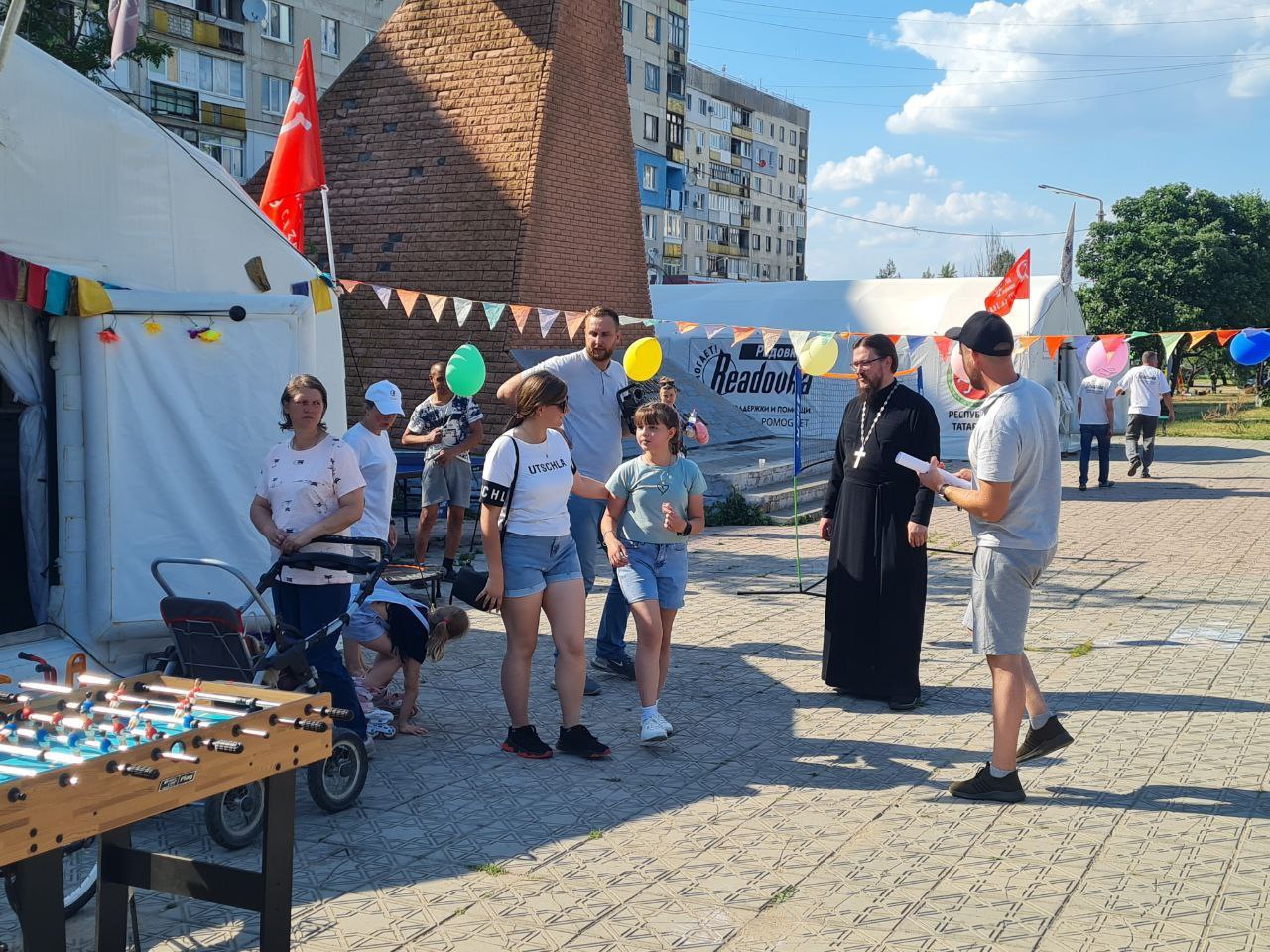 Большой праздник был организован БФ «Ридовка помогает» в городе Лисичанске. Отец Дионисий привез и передал детям для дальнейшей организации большой детской площадки теннисный стол, спортивные батуты, мобильный комплект для занятия бадминтоном и другой спортивный инвентарь, а также вместе с волонтерами принял участие в спортивных играх с детьми.