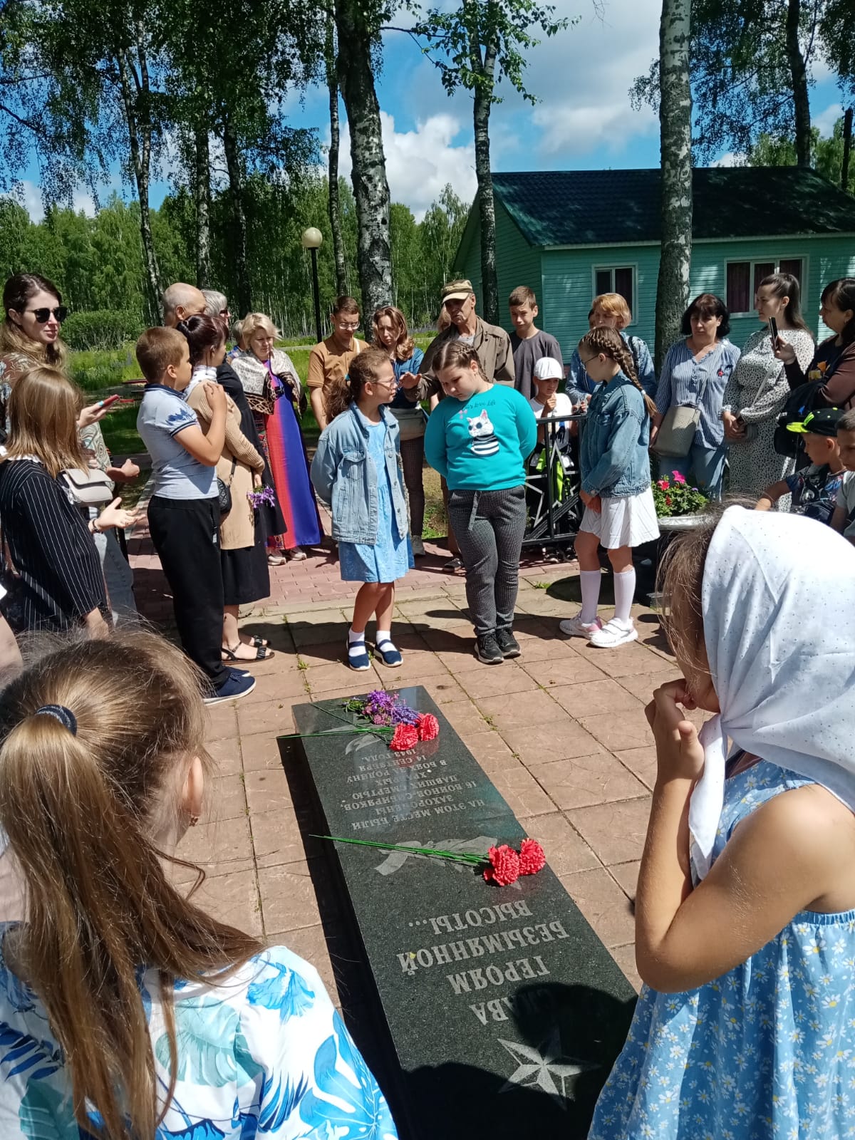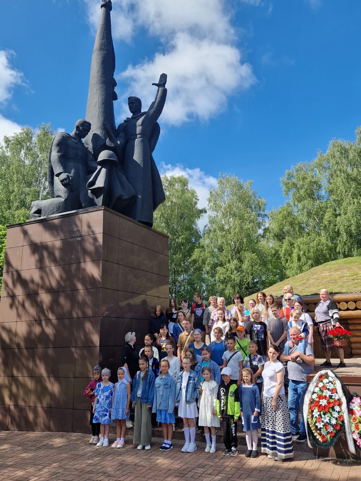 У гранитной плиты, установленной в память погибшим на Безымянной высоте воинам, все вместе пропели «Христос воскресе из мертвых…» и отслужили мирским чином литию. У памятника павшим воинам и землянки в три наката и взрослые, и дети — вместе спели военные песни. Одна из военных песен, исполненная поющими – это легендарная песня о Безымянной высоте: