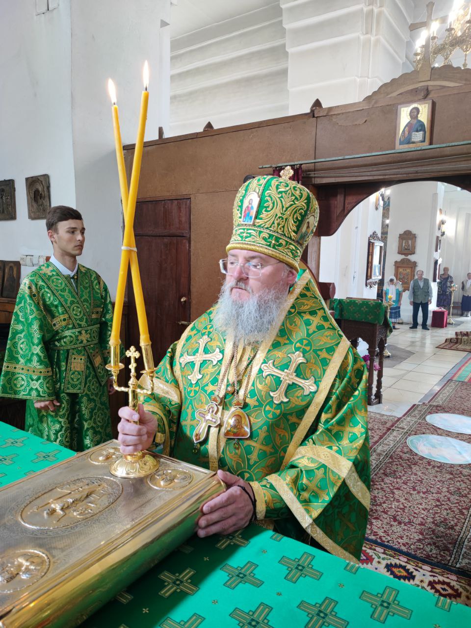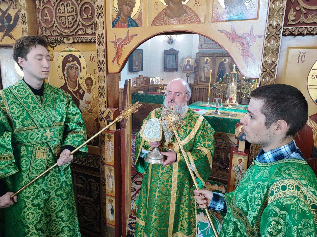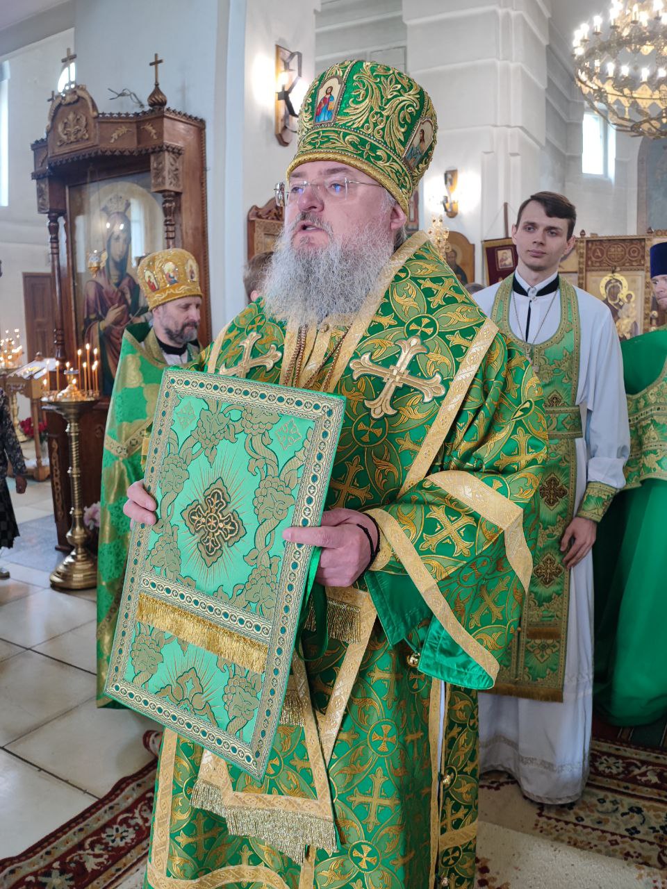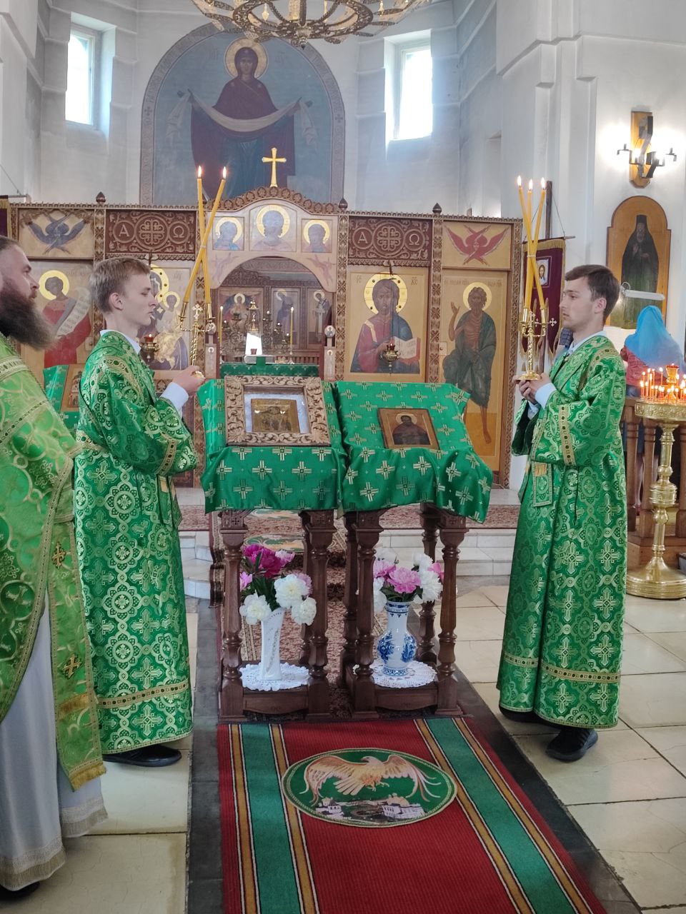 14 июня. Праведного Иоанна Кронштадтского. Епископ Козельский и Людиновский Никита совершил Божественную литургию в Покровском храме города Жиздры, северный придел которого освящен в честь Иоанна Кронштадтского. Архипастырю сослужили: настоятель храма, благочинный округа иерей Алексий Ефименков, протоиерей Константин Гипп, протоиерей Михаил Карпенко, протоиерей Антоний Хатунцев, иеромонах Сергий (Тимофеев), иерей Николай Безручкин, иерей Иоанн Загумёнов, иерей Алексий Скрипкин и диакон Евгений Ковригин. На литургии были вознесены особые прошения и молитва о Святой Руси. По благословению Святейшего Патриарха Московского и всея Руси Кирилла эта сугубая молитва совершается во всех храмах Русской Православной Церкви за каждым богослужением. На Малом входе клирик храма иерей Иоанн Загумёнов был удостоен права ношения набедреника. По отпусте литургии священнослужители, в центре храма, совершили славление праздника в завершении которого, вознеся молитву Кронштадтскому чудотворцу и окропив молящихся святой водой, владыка обратился к богомольцам с проповедью.
