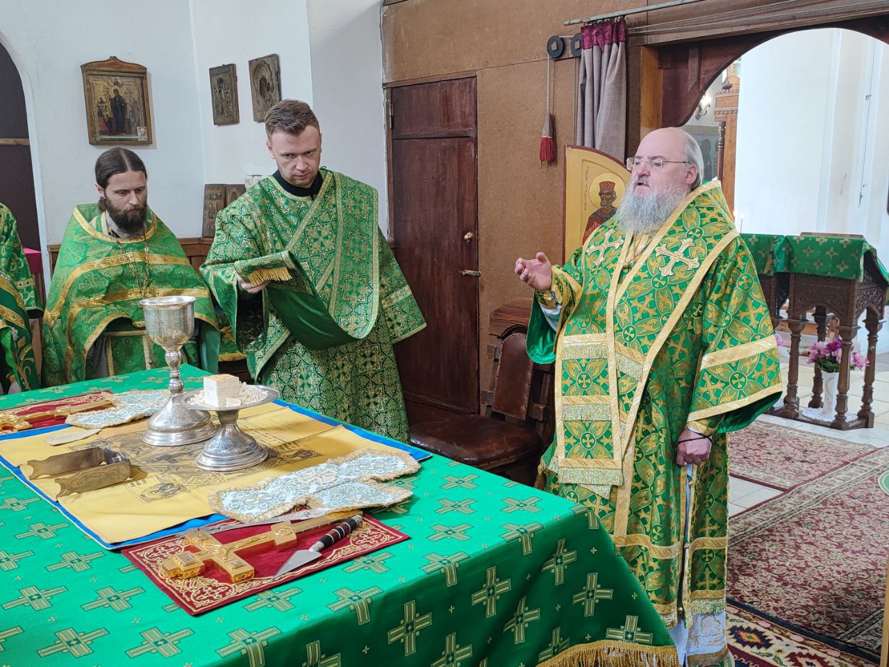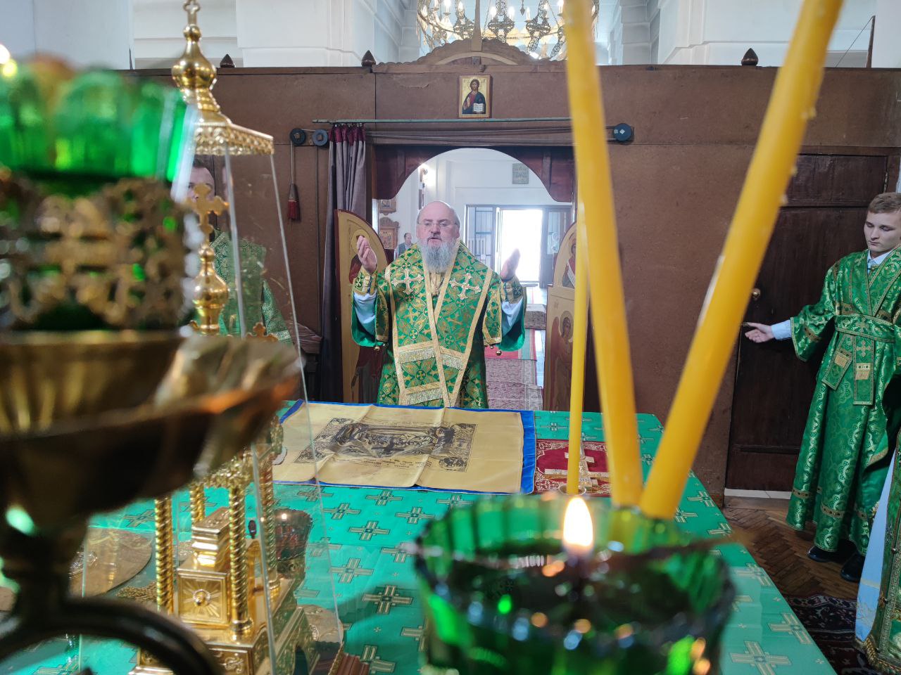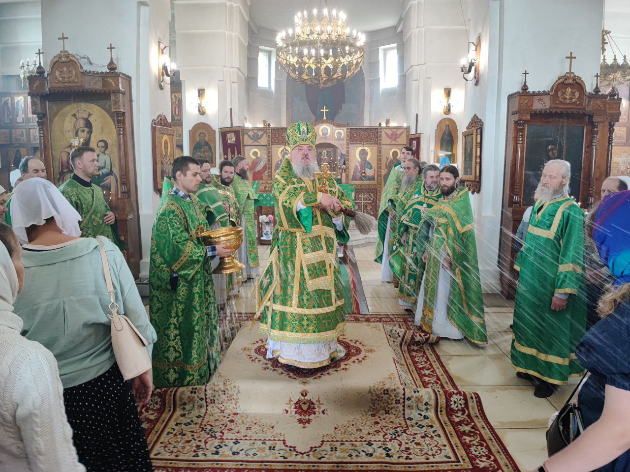 14 июня. Праведного Иоанна Кронштадтского. Епископ Козельский и Людиновский Никита совершил Божественную литургию в Покровском храме города Жиздры, северный придел которого освящен в честь Иоанна Кронштадтского. Архипастырю сослужили: настоятель храма, благочинный округа иерей Алексий Ефименков, протоиерей Константин Гипп, протоиерей Михаил Карпенко, протоиерей Антоний Хатунцев, иеромонах Сергий (Тимофеев), иерей Николай Безручкин, иерей Иоанн Загумёнов, иерей Алексий Скрипкин и диакон Евгений Ковригин. На литургии были вознесены особые прошения и молитва о Святой Руси. По благословению Святейшего Патриарха Московского и всея Руси Кирилла эта сугубая молитва совершается во всех храмах Русской Православной Церкви за каждым богослужением. На Малом входе клирик храма иерей Иоанн Загумёнов был удостоен права ношения набедреника. По отпусте литургии священнослужители, в центре храма, совершили славление праздника в завершении которого, вознеся молитву Кронштадтскому чудотворцу и окропив молящихся святой водой, владыка обратился к богомольцам с проповедью.