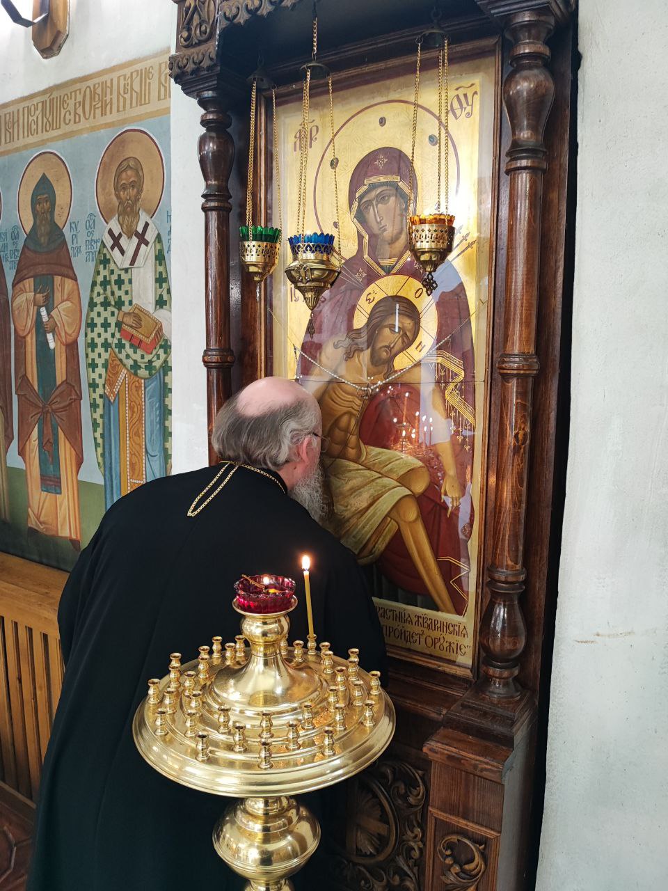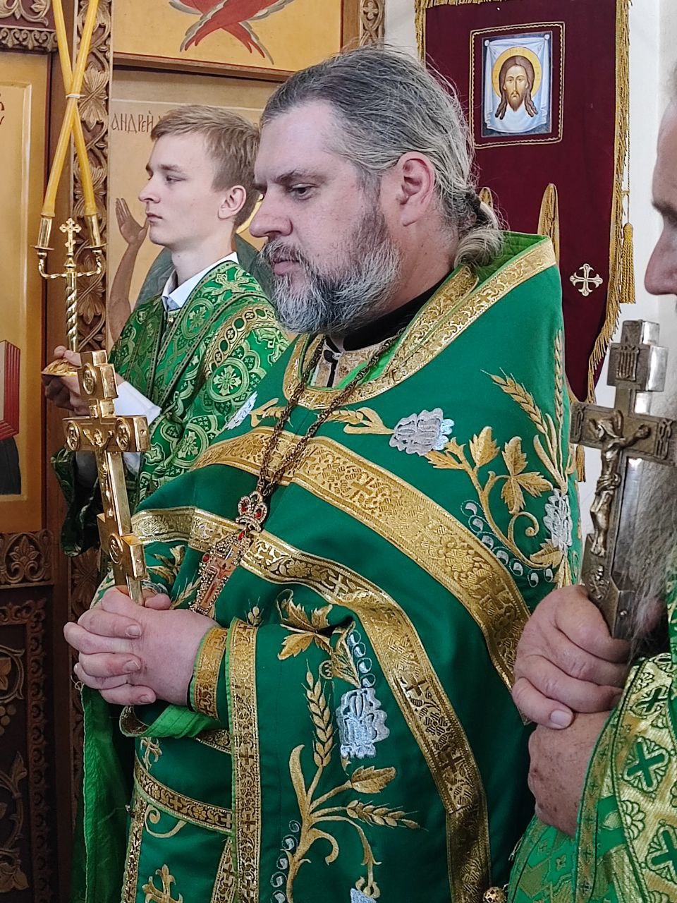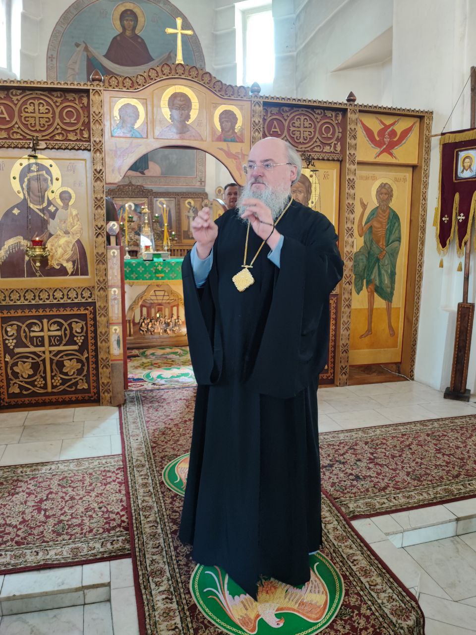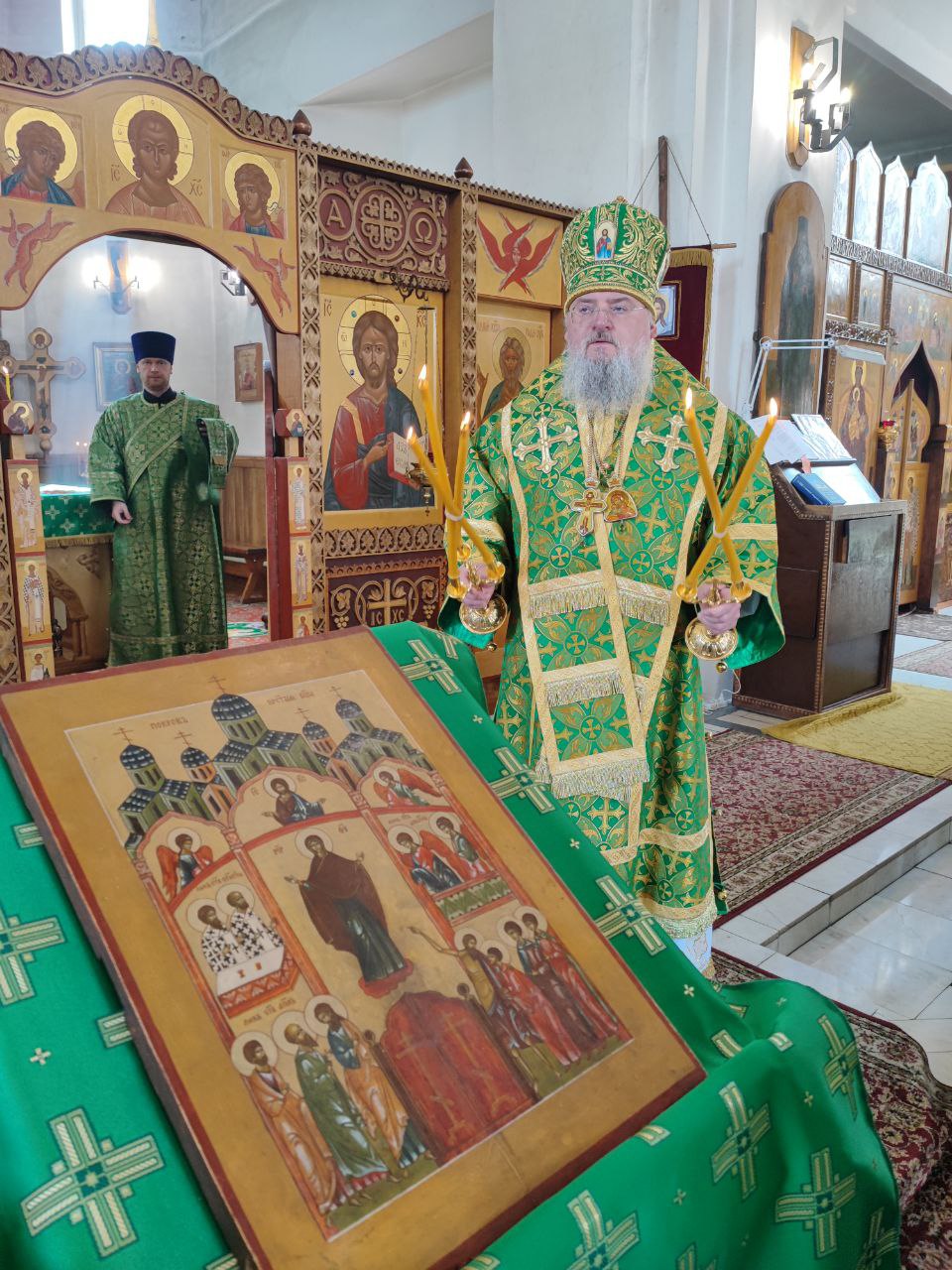14 июня. Праведного Иоанна Кронштадтского. Епископ Козельский и Людиновский Никита совершил Божественную литургию в Покровском храме города Жиздры, северный придел которого освящен в честь Иоанна Кронштадтского. Архипастырю сослужили: настоятель храма, благочинный округа иерей Алексий Ефименков, протоиерей Константин Гипп, протоиерей Михаил Карпенко, протоиерей Антоний Хатунцев, иеромонах Сергий (Тимофеев), иерей Николай Безручкин, иерей Иоанн Загумёнов, иерей Алексий Скрипкин и диакон Евгений Ковригин. На литургии были вознесены особые прошения и молитва о Святой Руси. По благословению Святейшего Патриарха Московского и всея Руси Кирилла эта сугубая молитва совершается во всех храмах Русской Православной Церкви за каждым богослужением. На Малом входе клирик храма иерей Иоанн Загумёнов был удостоен права ношения набедреника. По отпусте литургии священнослужители, в центре храма, совершили славление праздника в завершении которого, вознеся молитву Кронштадтскому чудотворцу и окропив молящихся святой водой, владыка обратился к богомольцам с проповедью.