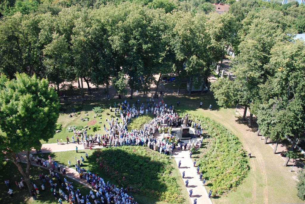 Памятник св. Лаврентию установлен на территории городского парка, около Свято-Троицкого кафедрального собора.