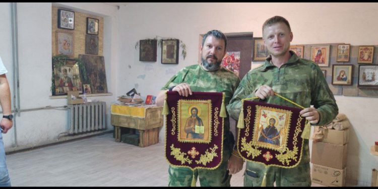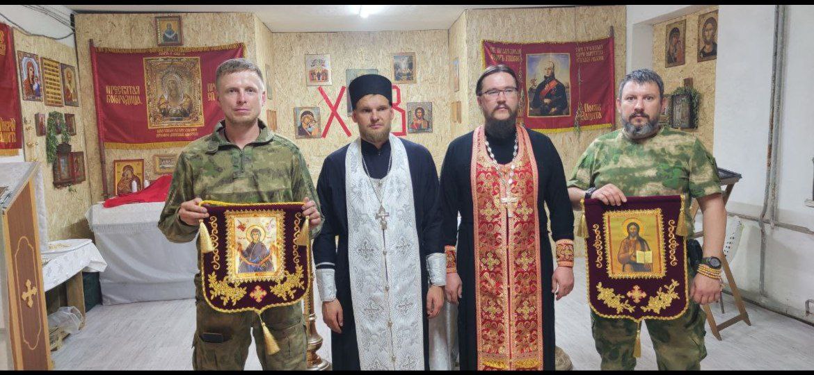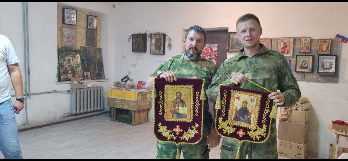 По благословению епископа Козельского и Людиновского Никиты в начале июня руководитель епархиального Отдела по социальному служению и церковной благотворительности — иерей Дионисий Куваев, настоятель храма в честь Богоявления Господня города Козельска совершил поездку с гуманитарной миссией к военнослужащим в зону СВО. Основной целью поездки стало посещение артиллерийского подразделения «Терек» и передача в Походный храм Великомученика и Победоносца Георгия хоругвей, которые доставил отец Дионисий совместно с исполнительным директором БФ «Ридовка Помогает» Дмитрием Смольяниновым и волонтёрами. Следует отметить, что пара хоругвей, переданных в Походный храм, была отшита и освящена содружественным Сестричеством при храме святого священномученика Власия в Старой Конюшенной Слободе города Москвы, которое несёт послушание изготовления хоругвей для зоны СВО.
