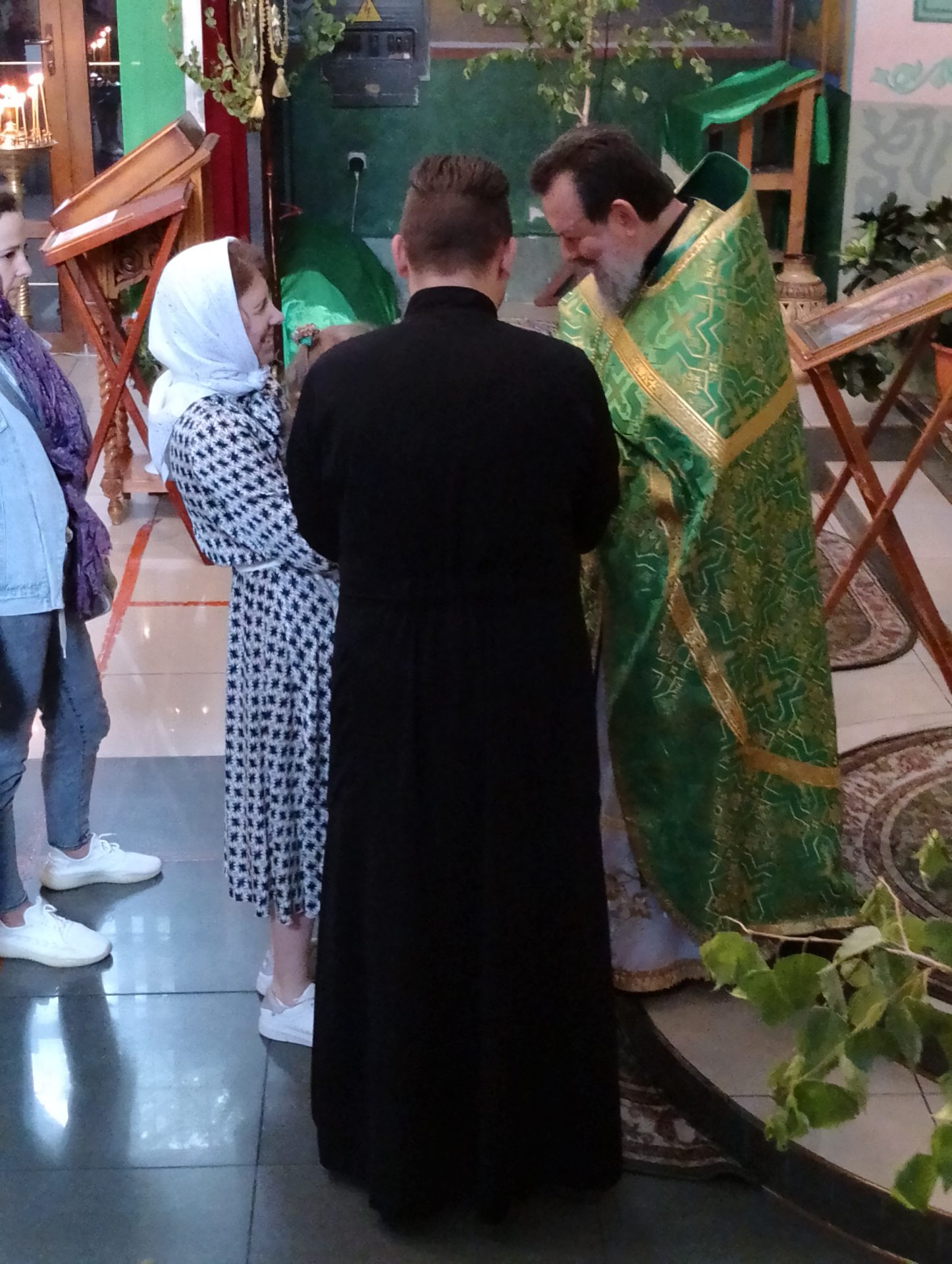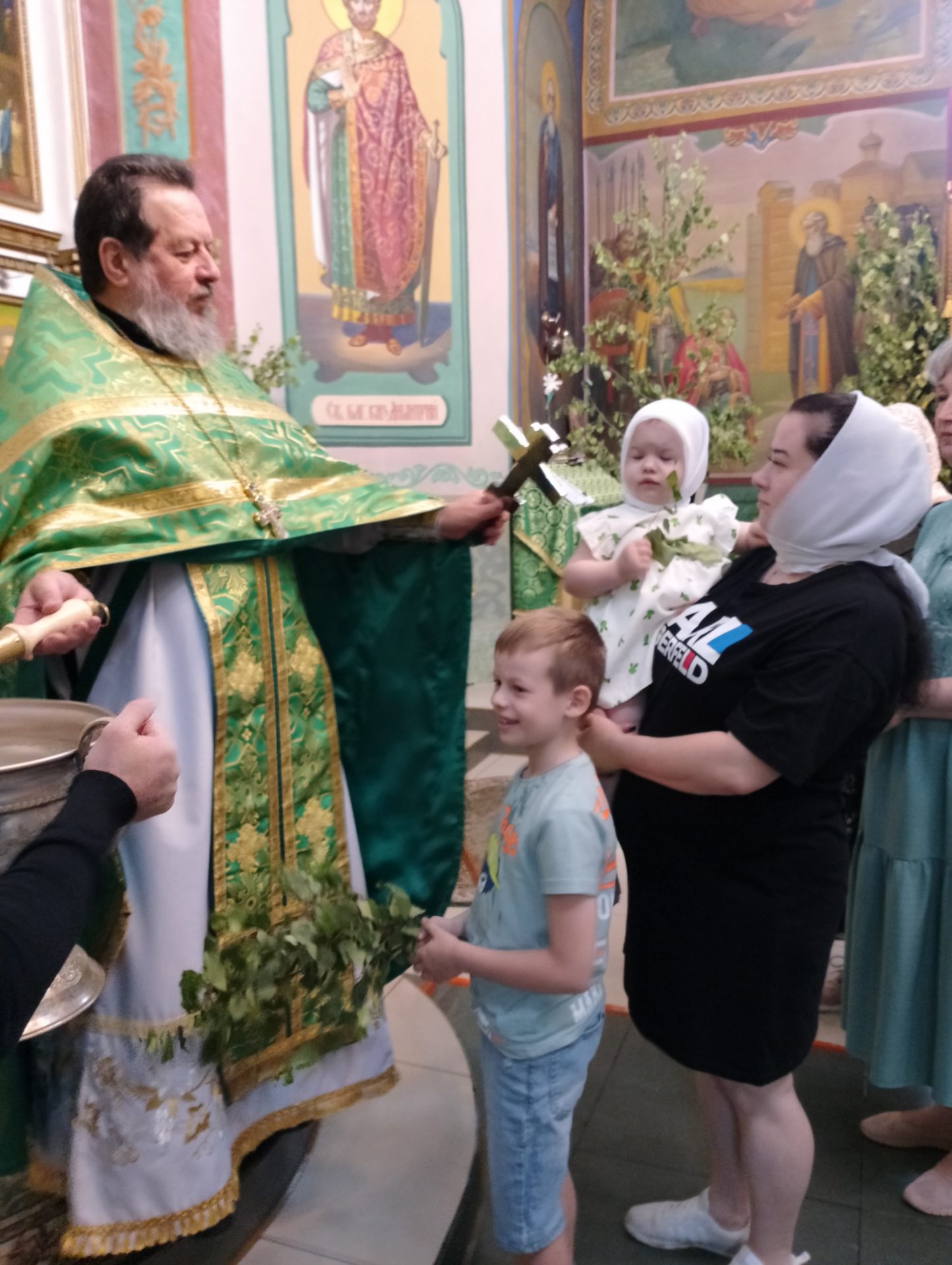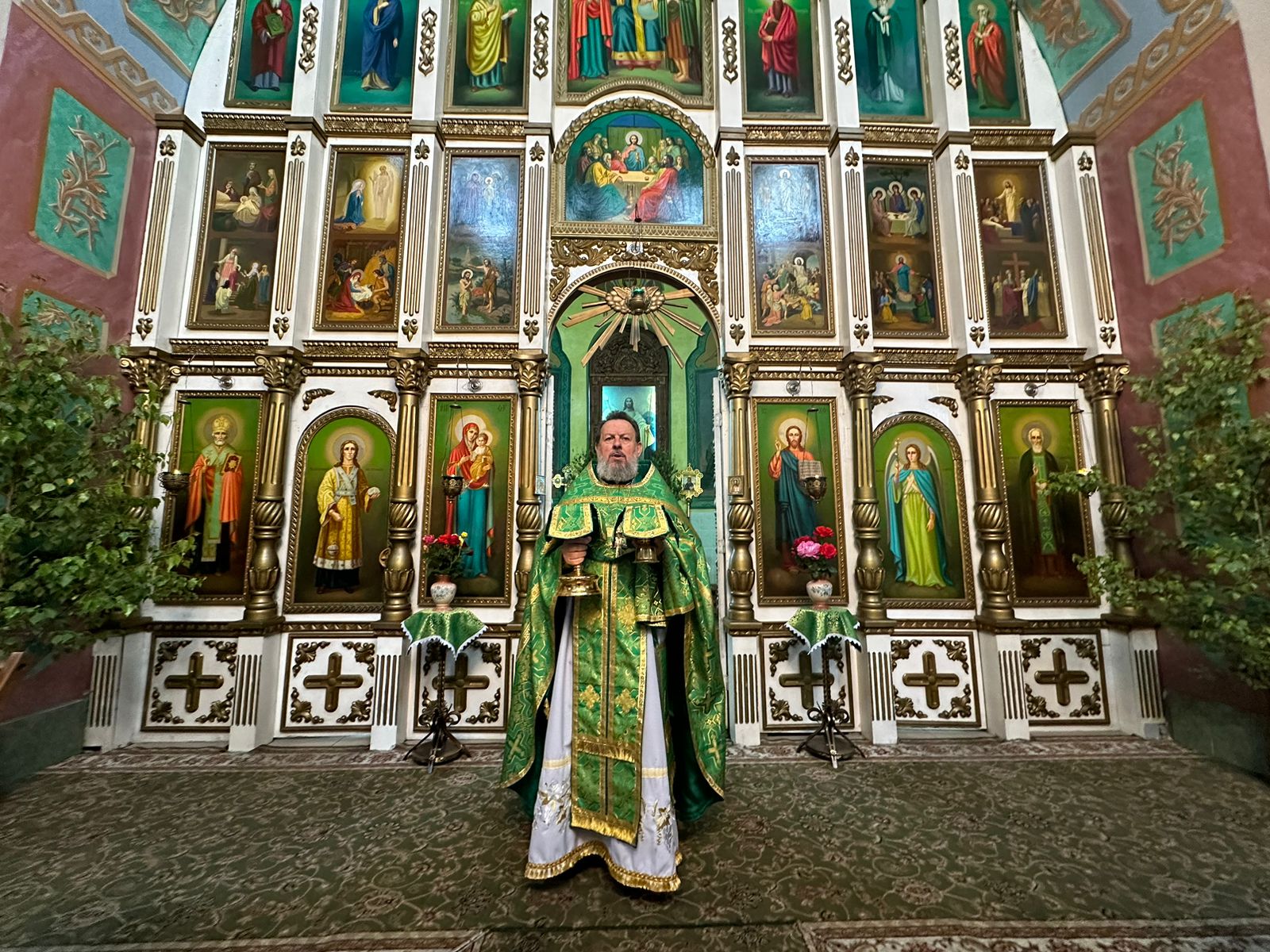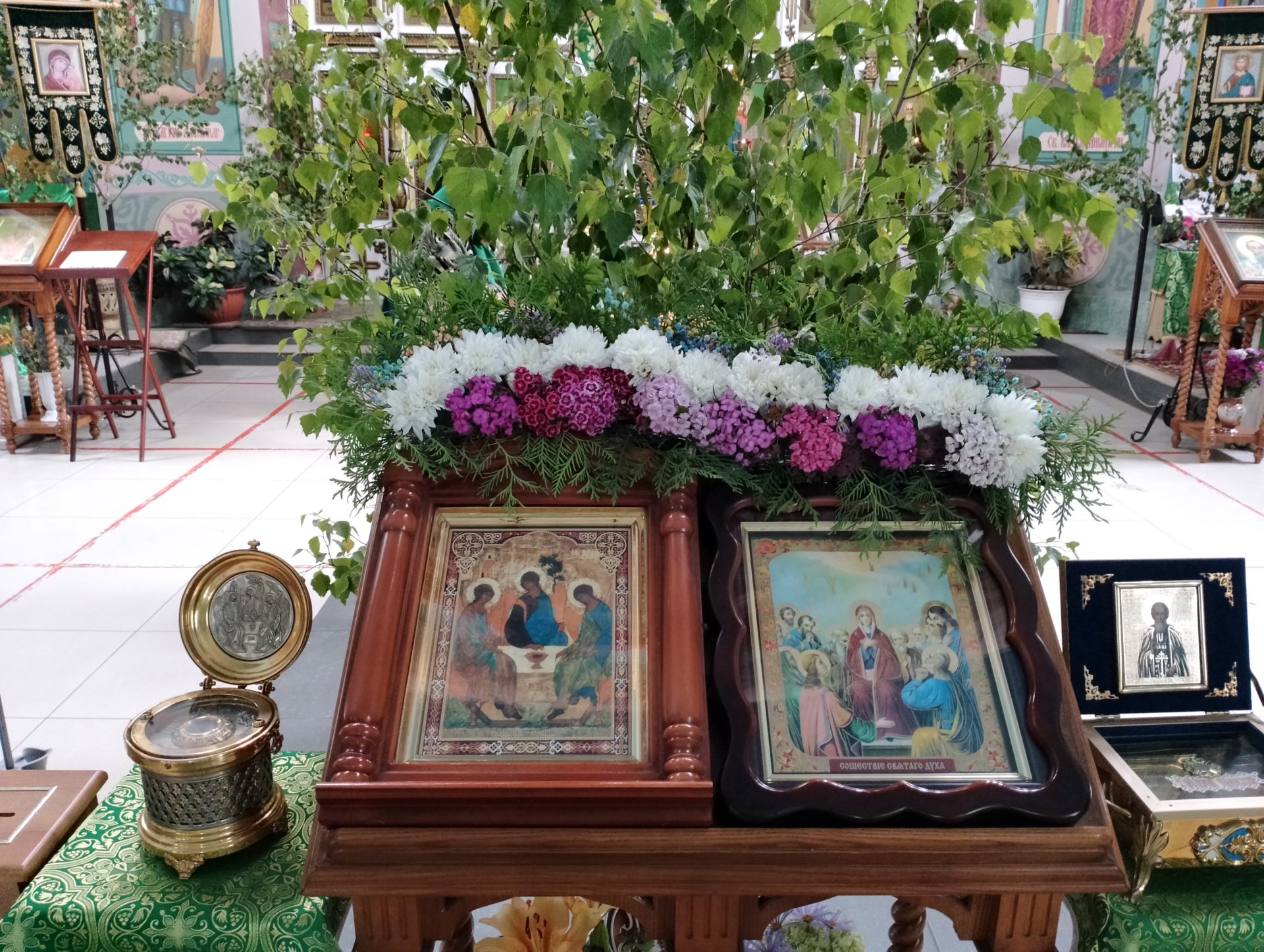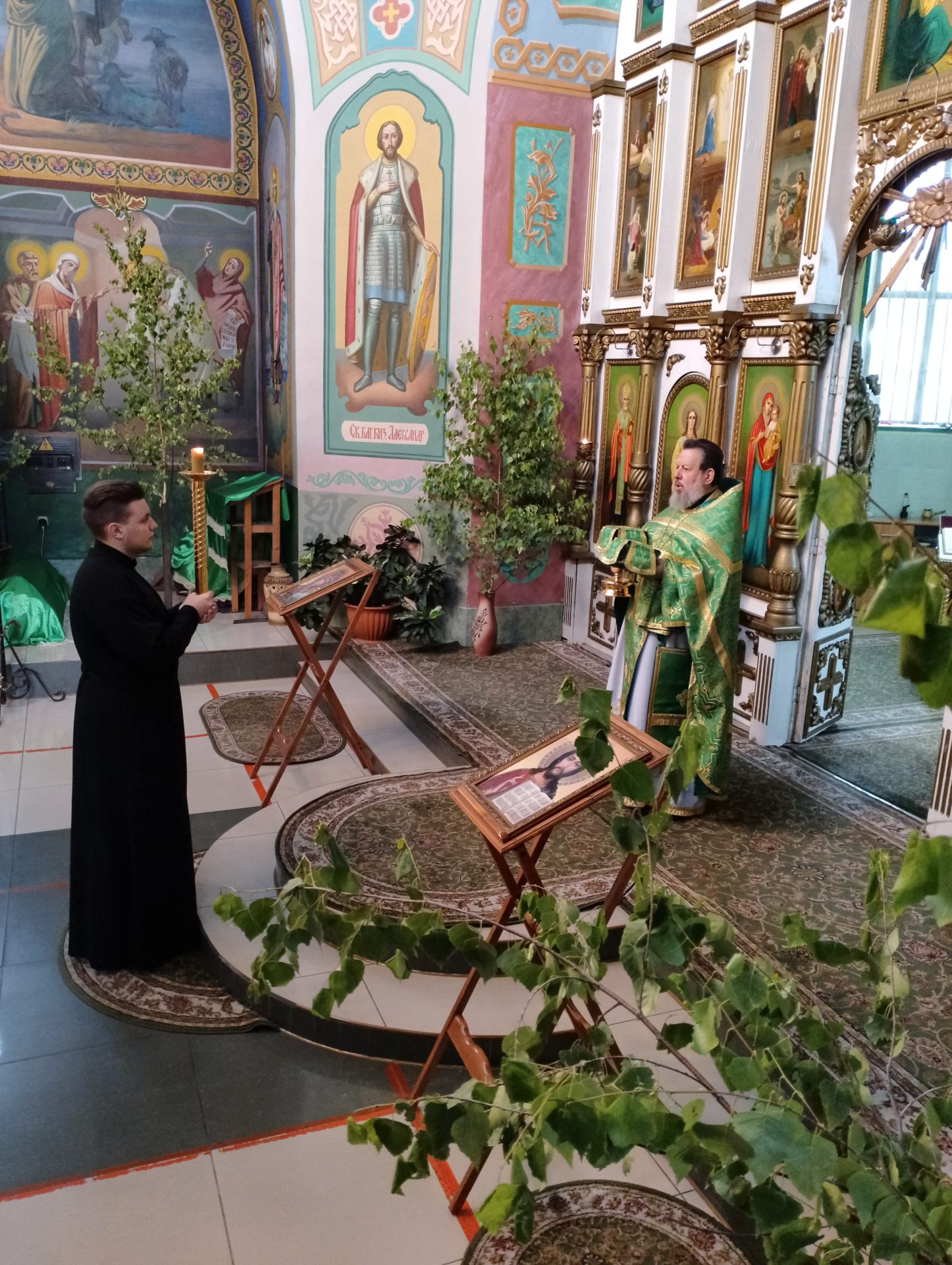 В этот день в храме освящались березовые ветви. В завершение богослужения был совершен праздничный молебен.