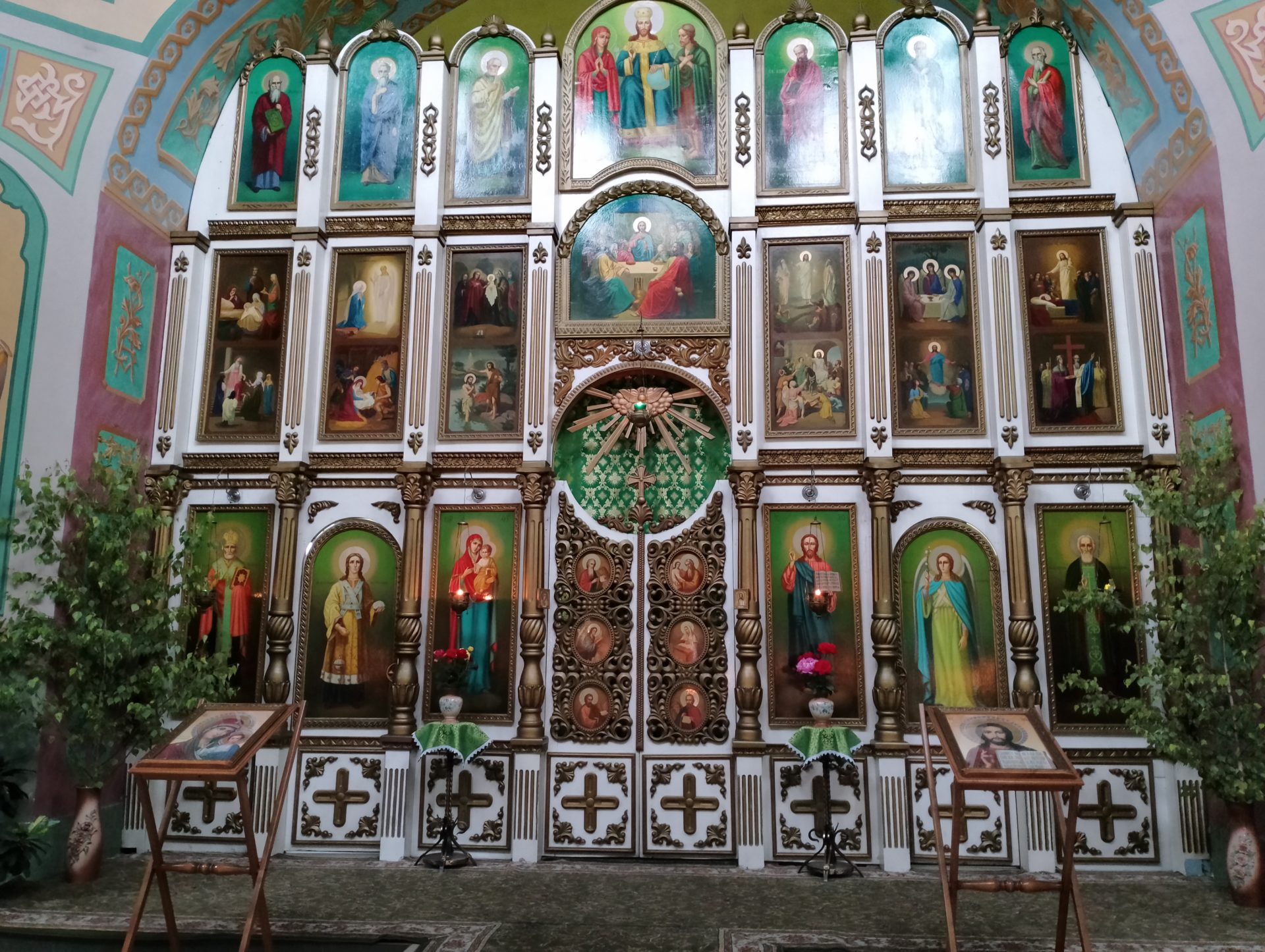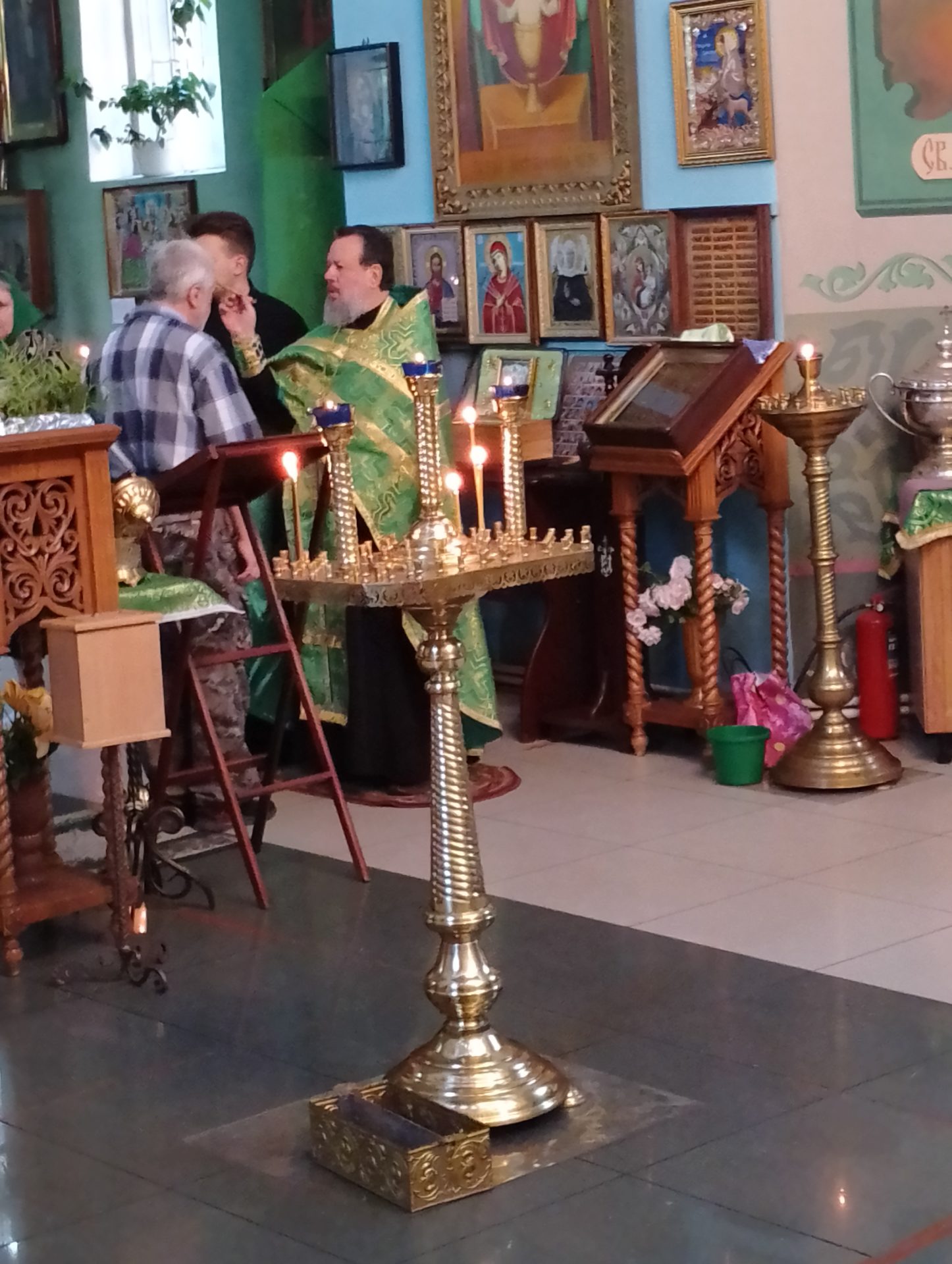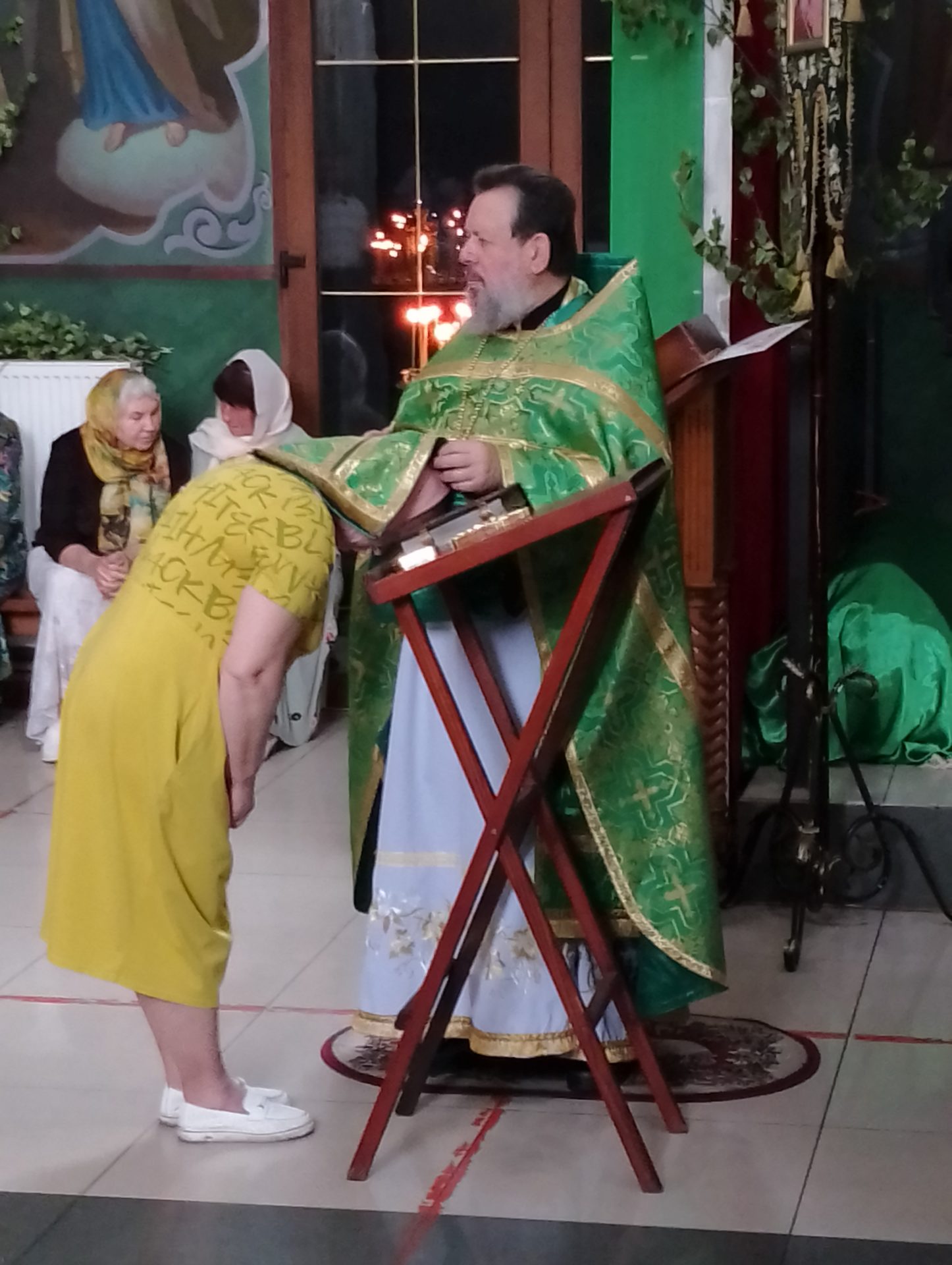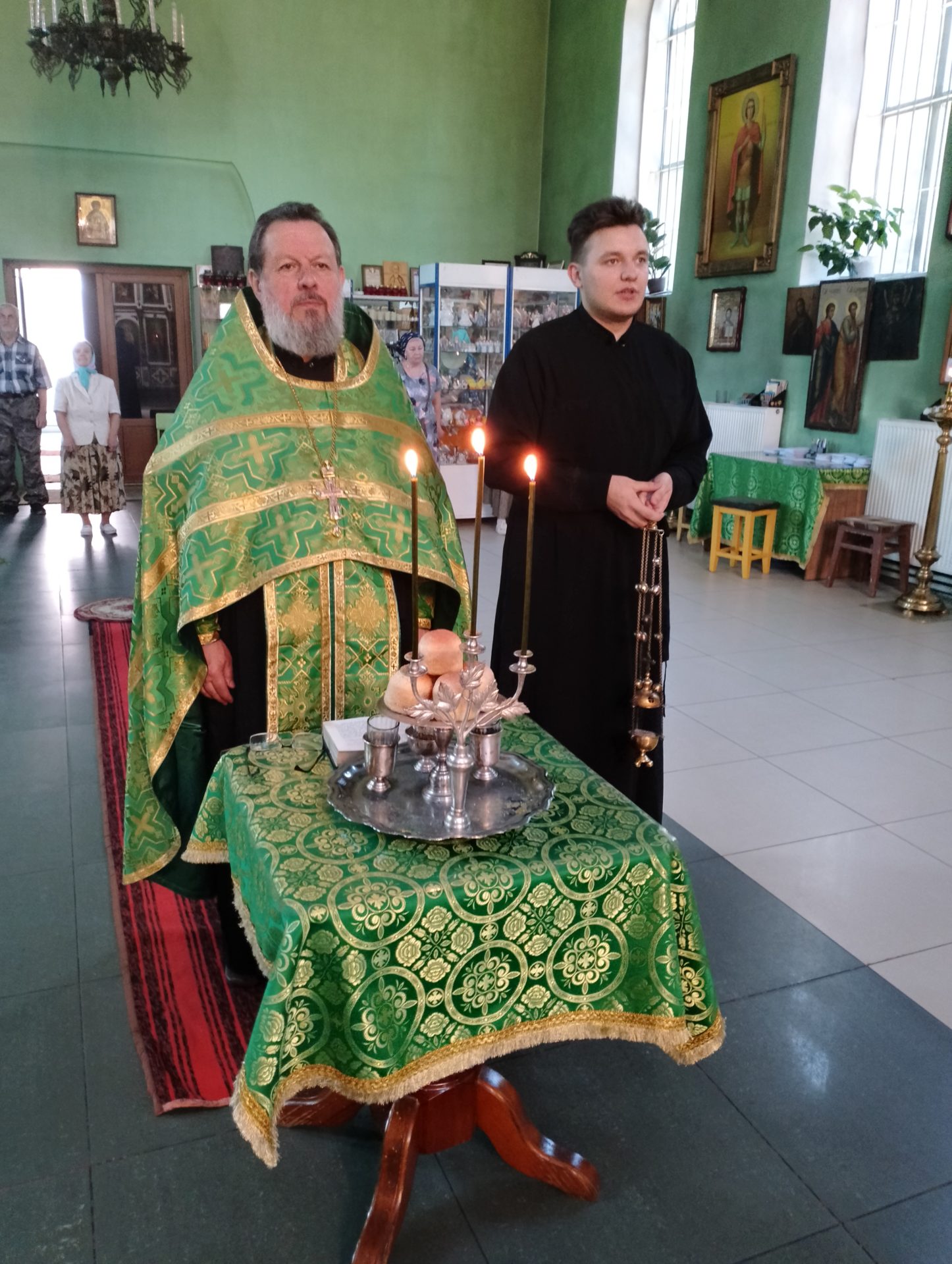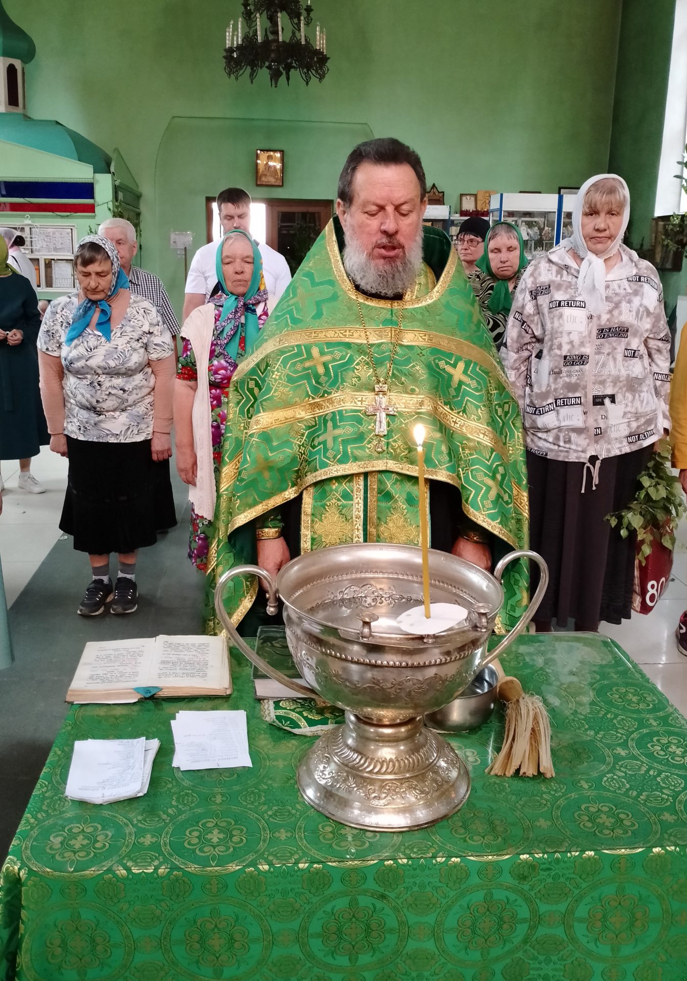 В этот день в храме освящались березовые ветви. В завершение богослужения был совершен праздничный молебен.