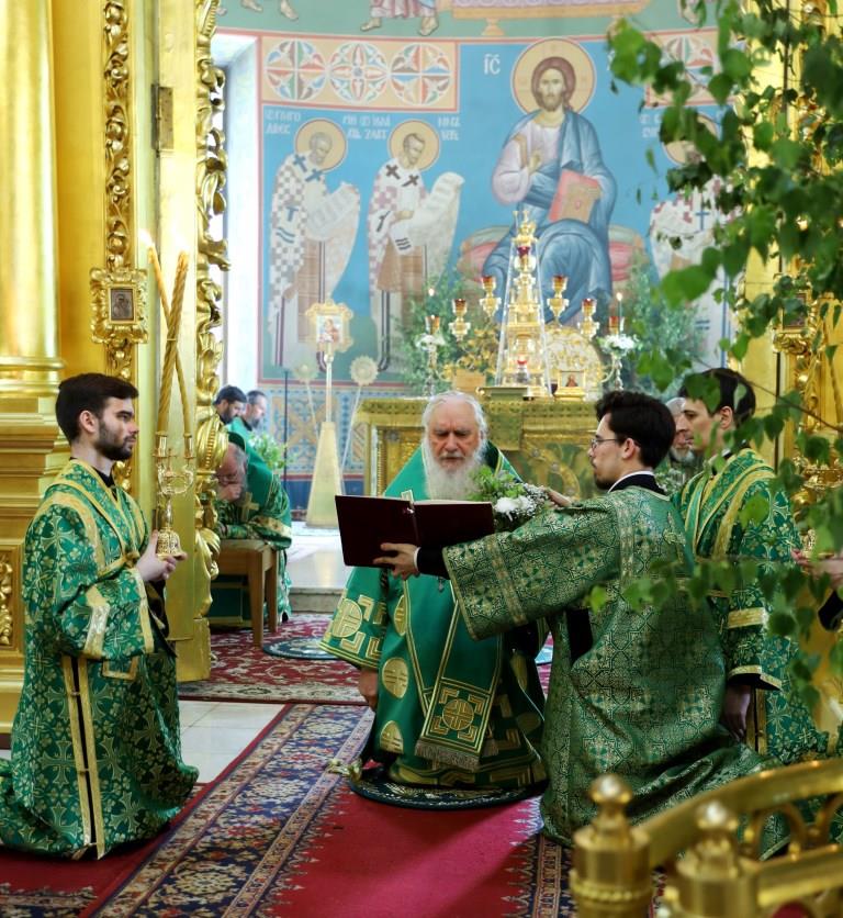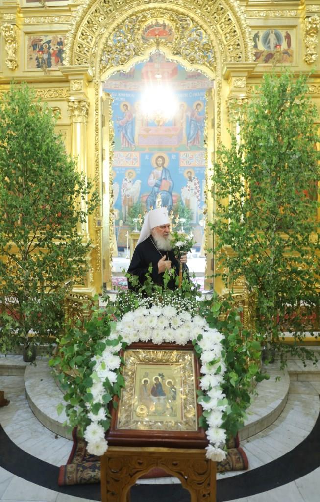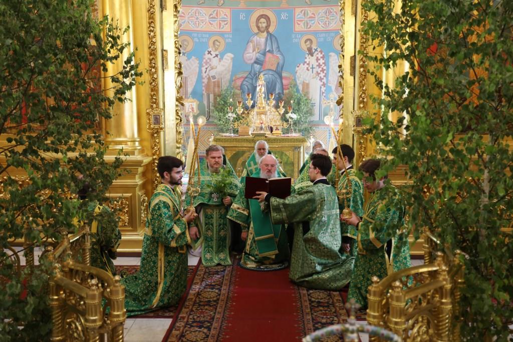 23 июня 2024 года, в праздник Святой Троицы (Пятидесятницы), митрополит Калужский и Боровский Климент совершил Божественную Литургию в Свято-Троицком кафедральном соборе города Калуги. Перед началом богослужения владыка поклонился чудотворному образу Божией Матери – «Калужской», честным мощам оптинских старцев и местночтимой иконе Святой Троицы. За Литургией владыке сослужили: архиепископ Песоченский и Юхновский Максимилиан, епископ Козельский и Людиновский Никита, клирики кафедрального собора и духовенство митрополии Богослужение посетили дети, отдыхающие на первой оздоровительной смене в ПМЦ «Златоуст», в сопровождении вожатых и духовника смены. Богослужебные песнопения исполнил смешанный хор Калужской духовной семинарии и Калужского духовного училища под руководством регента Татьяны Паюл. За богослужением митрополит Климент вознес молитву о Святой Руси. По благословению Патриарха Кирилла сугубая молитва совершается во всех храмах Русской Православной Церкви. По завершении Литургии митрополит Климент в сослужении духовенства совершил великую вечерню с великим прокимном «Кто Бог велий…» и чтением коленопреклонных молитв. Вечерня закончилась славлением праздника и кроплением верующих святой водой. По окончании всех молитвословий владыка Климент поздравил паству с Днем Святой Троицы и престольным праздником собора.