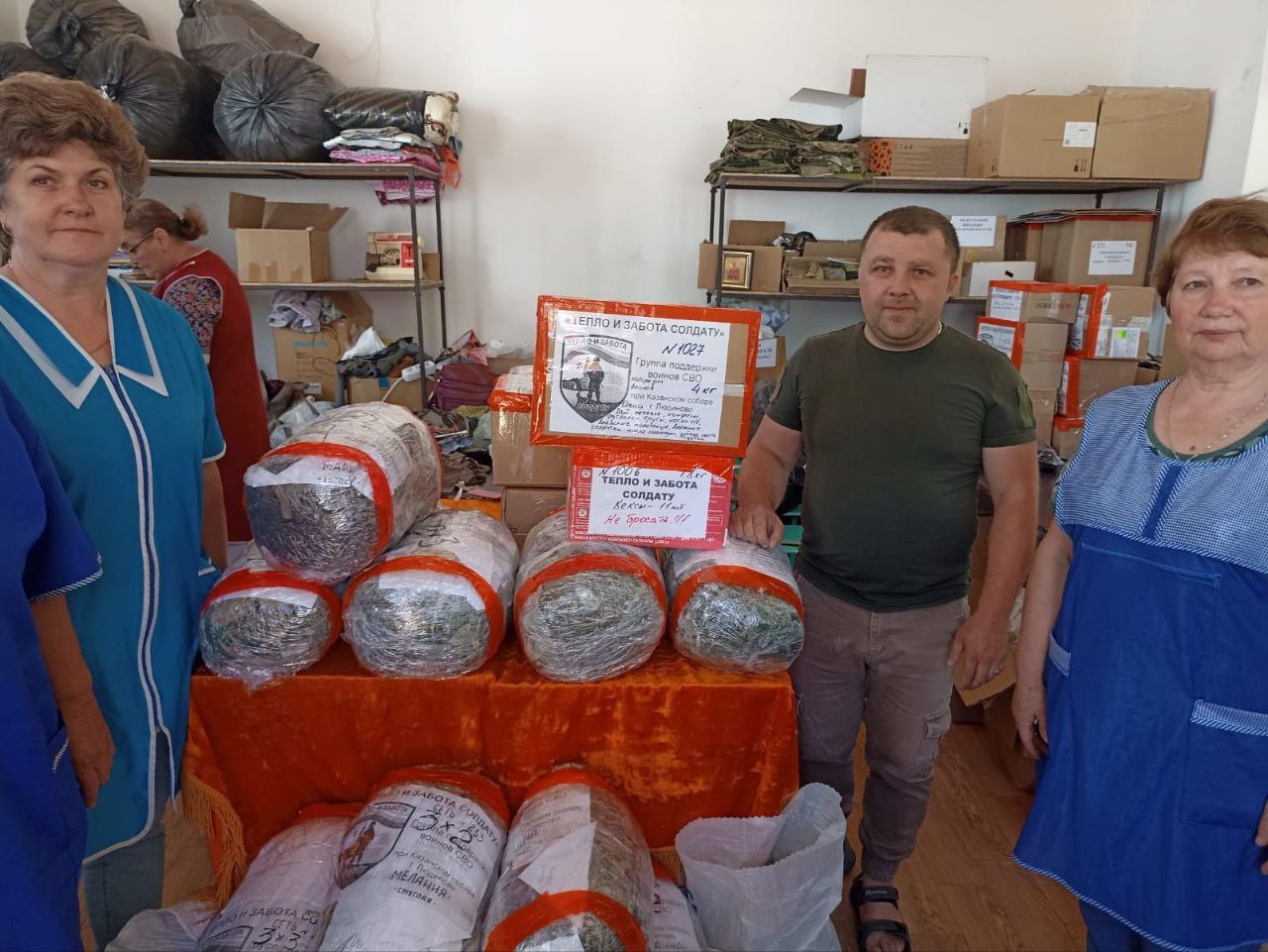 Приходская группа добровольцев «Тепло и забота солдату» при Казанском соборе города Людиново (координатор Валентина Купрюхина) снова сформировала и отправила гуманитарный груз нашим воинам в зону СВО. Совместно с добровольцами в погрузке и отправке груза участвовали волонтеры — экспедиторы Артём Родичкин, Сергей Маркасов и их команда. Июньский груз: 10 маскировочных сетей, продукты, консервации, сухие души, влажные полотенца, хлопчатобумажное нижние белье, футболки, гигиенические принадлежности были отправлены нашим воинам в зону СВО. Своей заботой и теплом мы все вместе незримо согреваем сердца наших бойцов, укрепляем их дух, а значит, с Божией помощью они преодолеют все препятствия и беды и, несмотря на тяжёлые испытания, сохранят свои души в добре.