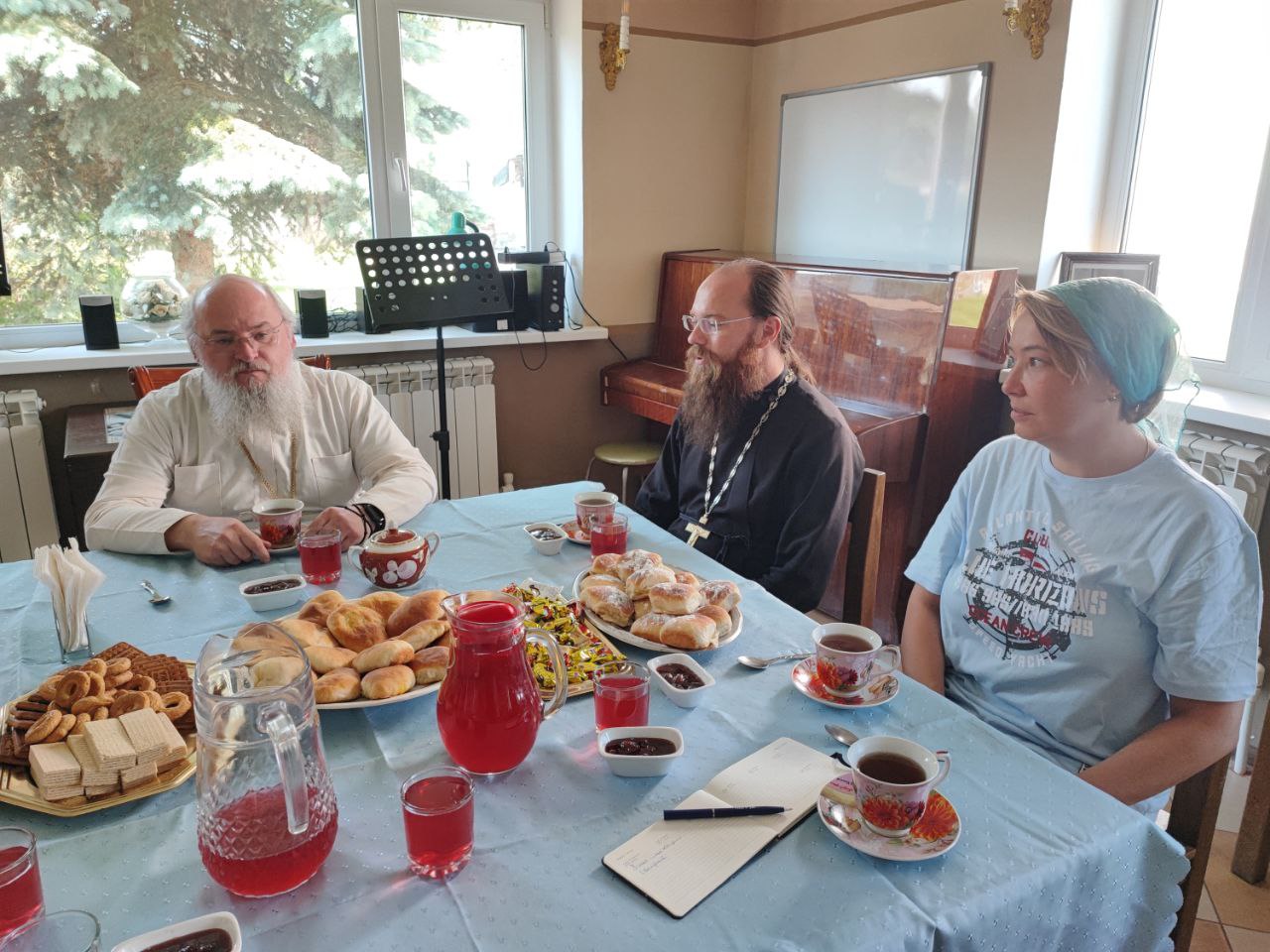 1 июля, после Божественной литургии в Боголюбском храме села Нижние Прыски Козельского района епископ Козельский и Людиновский в приходском доме Преображенского храма встретился с инициативной группой, занимающейся строительством и благоукрашением храма в честь Тихвинской иконы Пресвятой Богородицы в селе Дубровка Козельского района.