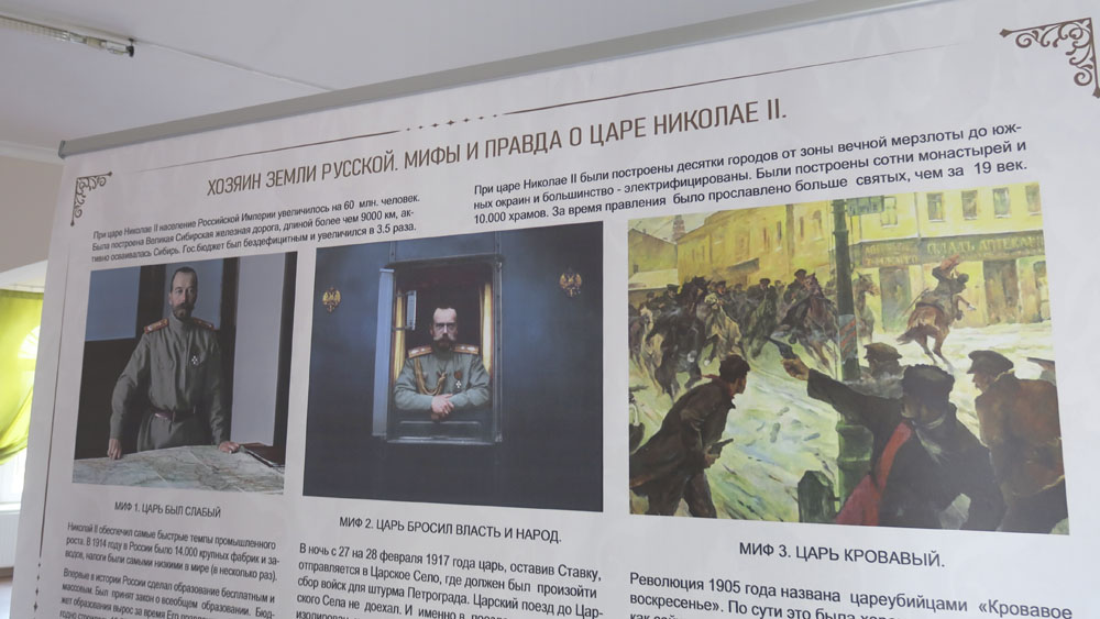 На одном из стендов, в частности, изложена информация, которая развенчивает мифы о слабости, кровавости и неумении нашего Государя управлять государством.