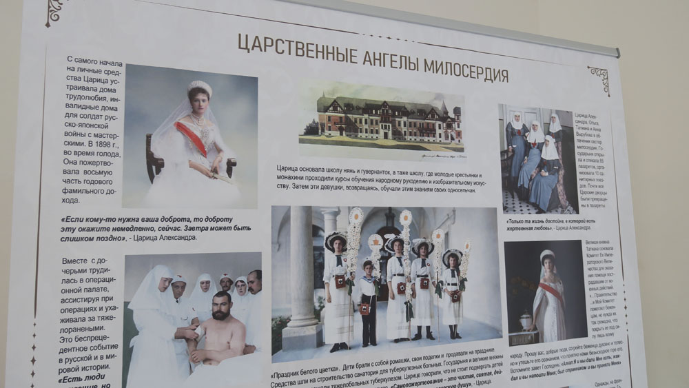 На выставке представлены редкие фотографии, биографические сведения, цитаты и выдержки из писем. На стендах тематически представлены различные аспекты деятельности Государя и его семьи.
