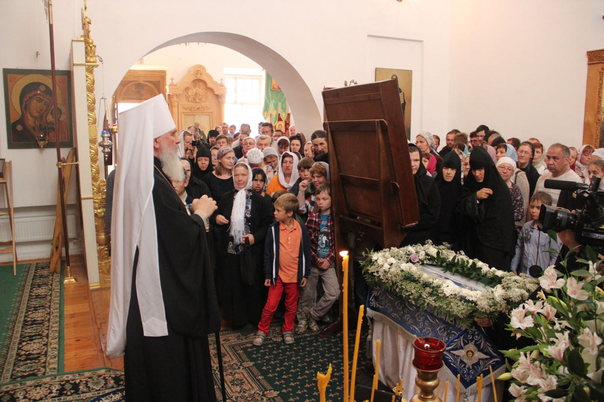 Архипастырям сослужили: настоятель обители игумен Михаил (Семенов) и клирики Калужской, Песоченской и Козельской епархий. После отпуста литургии был совершен праздничный крестный ход в завершении которого митрополит Климент обратился к многочисленным богомольцам со словом назидания.