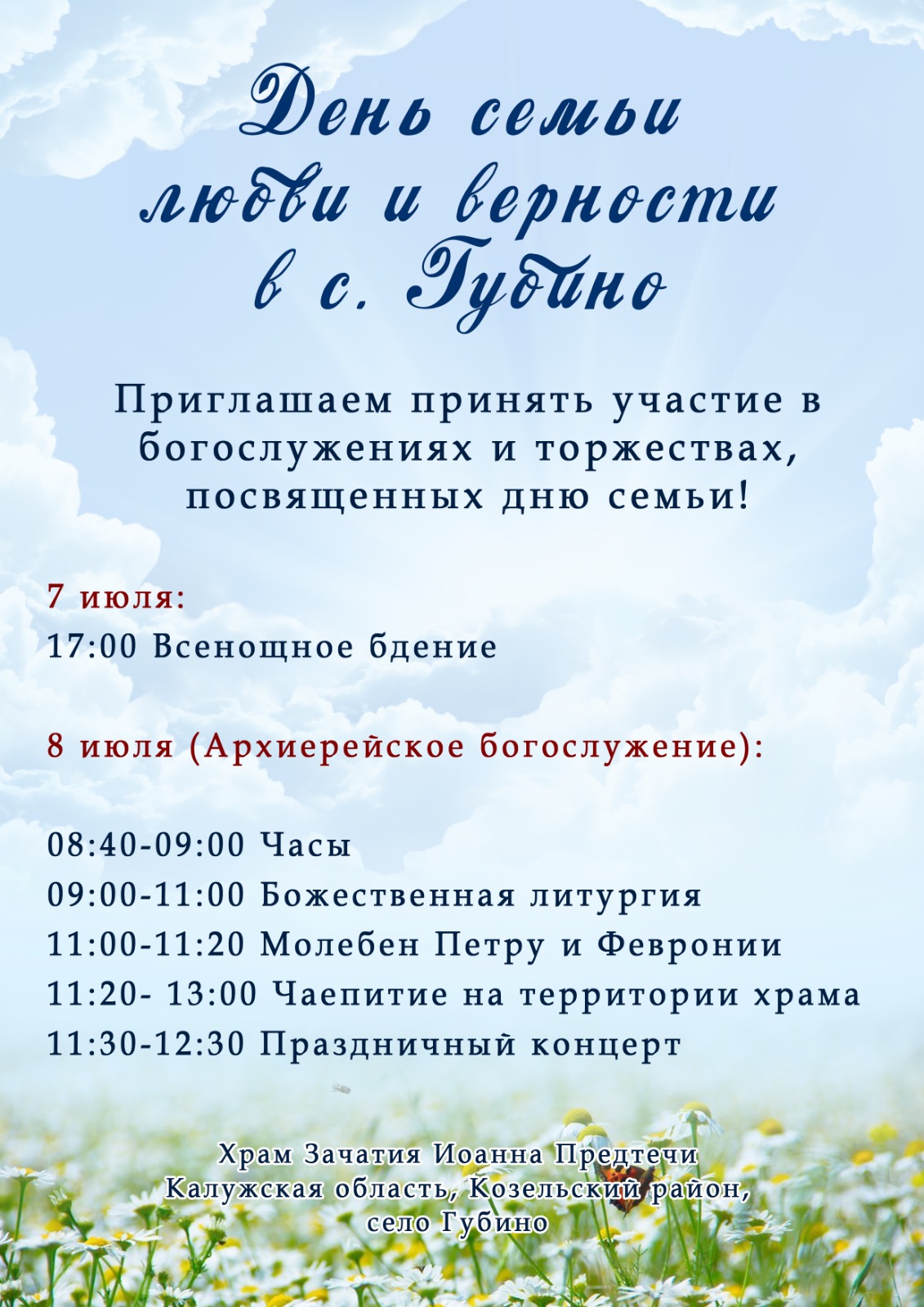 Приглашаем всех дорогих друзей на праздничные мероприятия Дня Семьи Любви и Верности