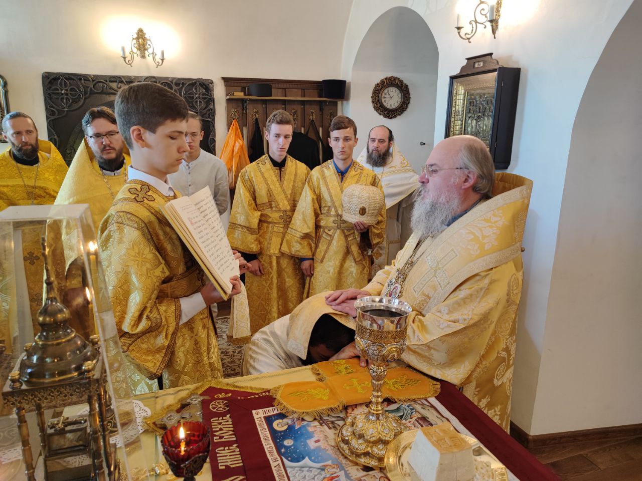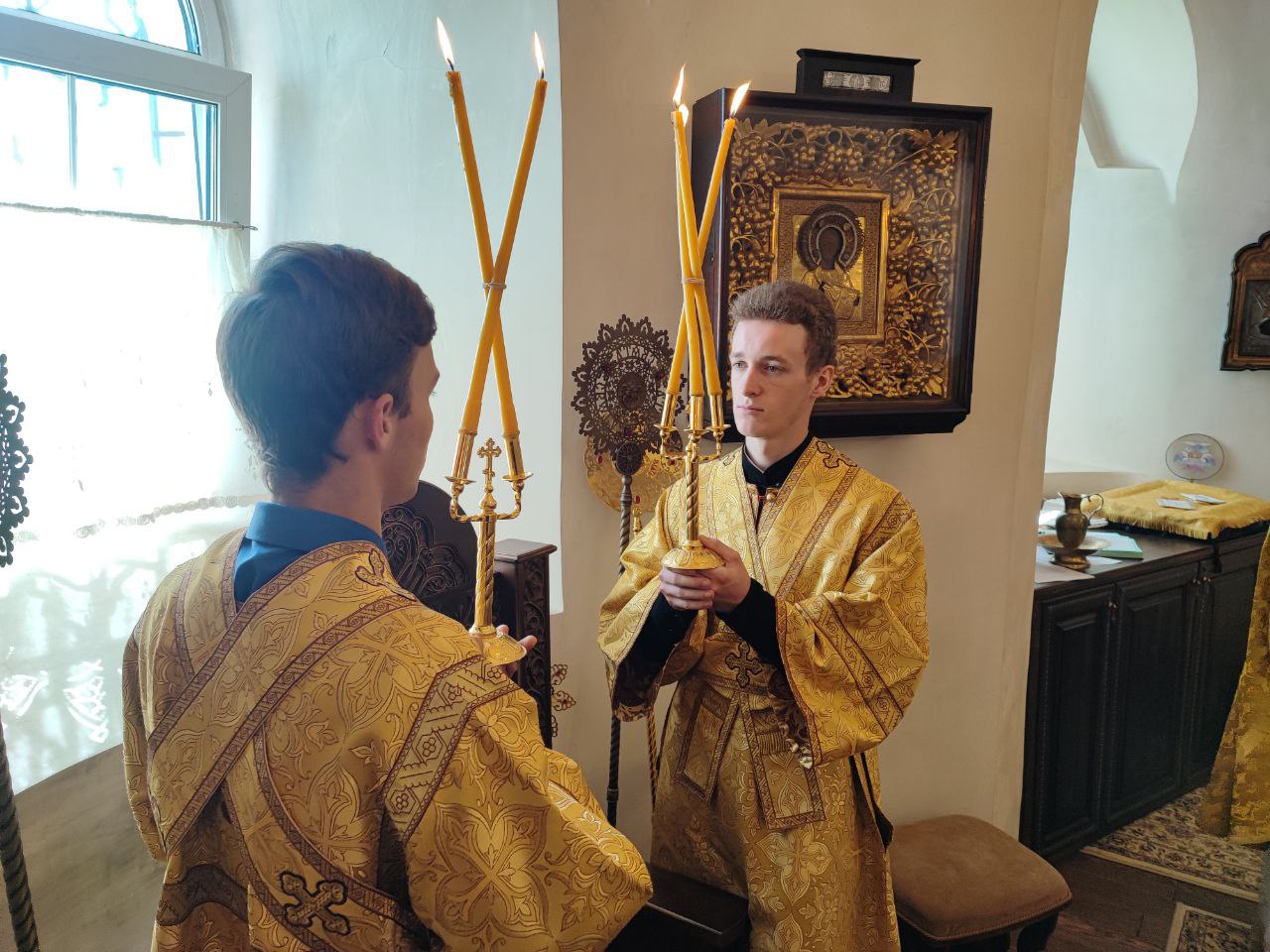 За богослужением в сан диакона, по согласованию с Учебным Комитетом Русской Православной Церкви, был рукоположен студент заочного сектора Калужской духовной семинарии Сергий Акопян.