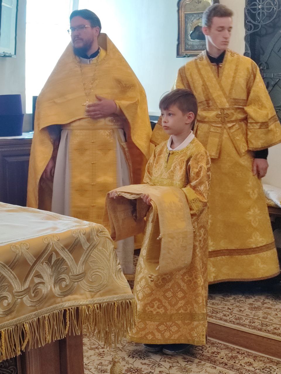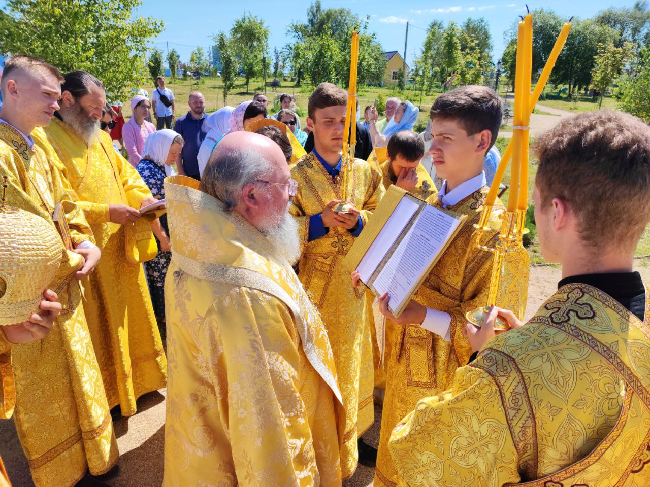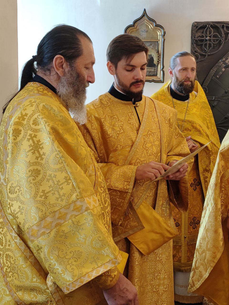 Преосвященному владыке сослужили: протоиерей Дмитрий Сахаров, протоиерей Антоний Хатунцев, иерей Дионисий Куваев, иерей Георгий Махаринец, иерей Дионисий Капустин – настоятель прихода, диакон Евгений Васильев и диакон Валерий Волков.