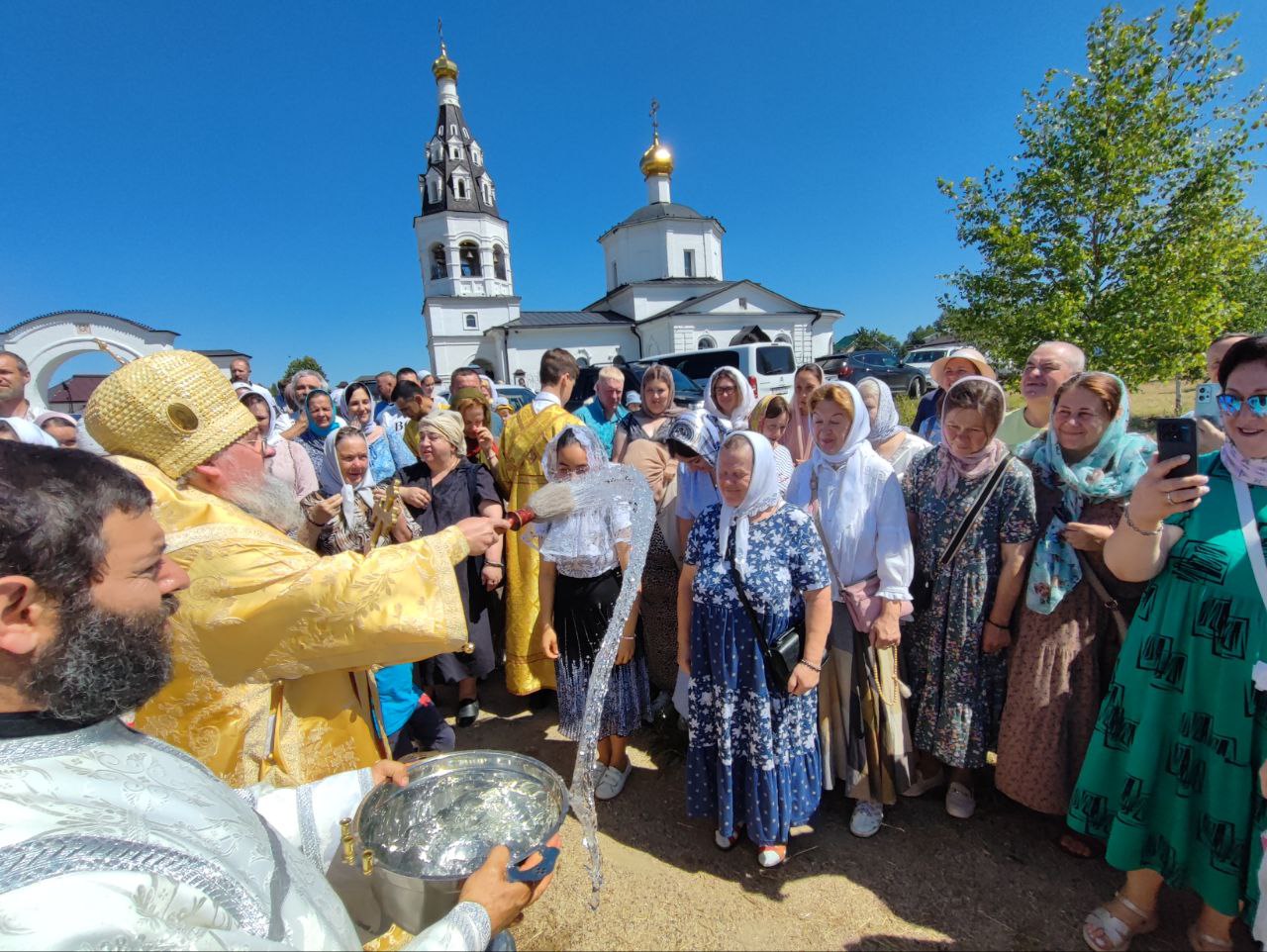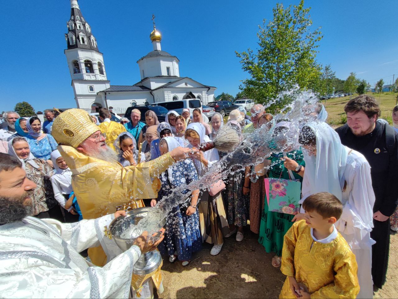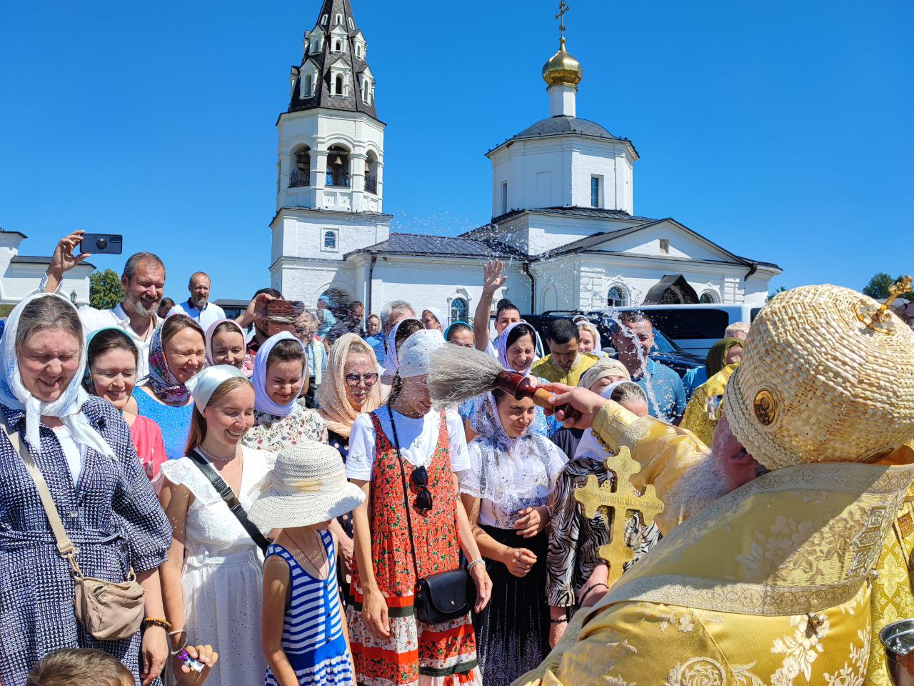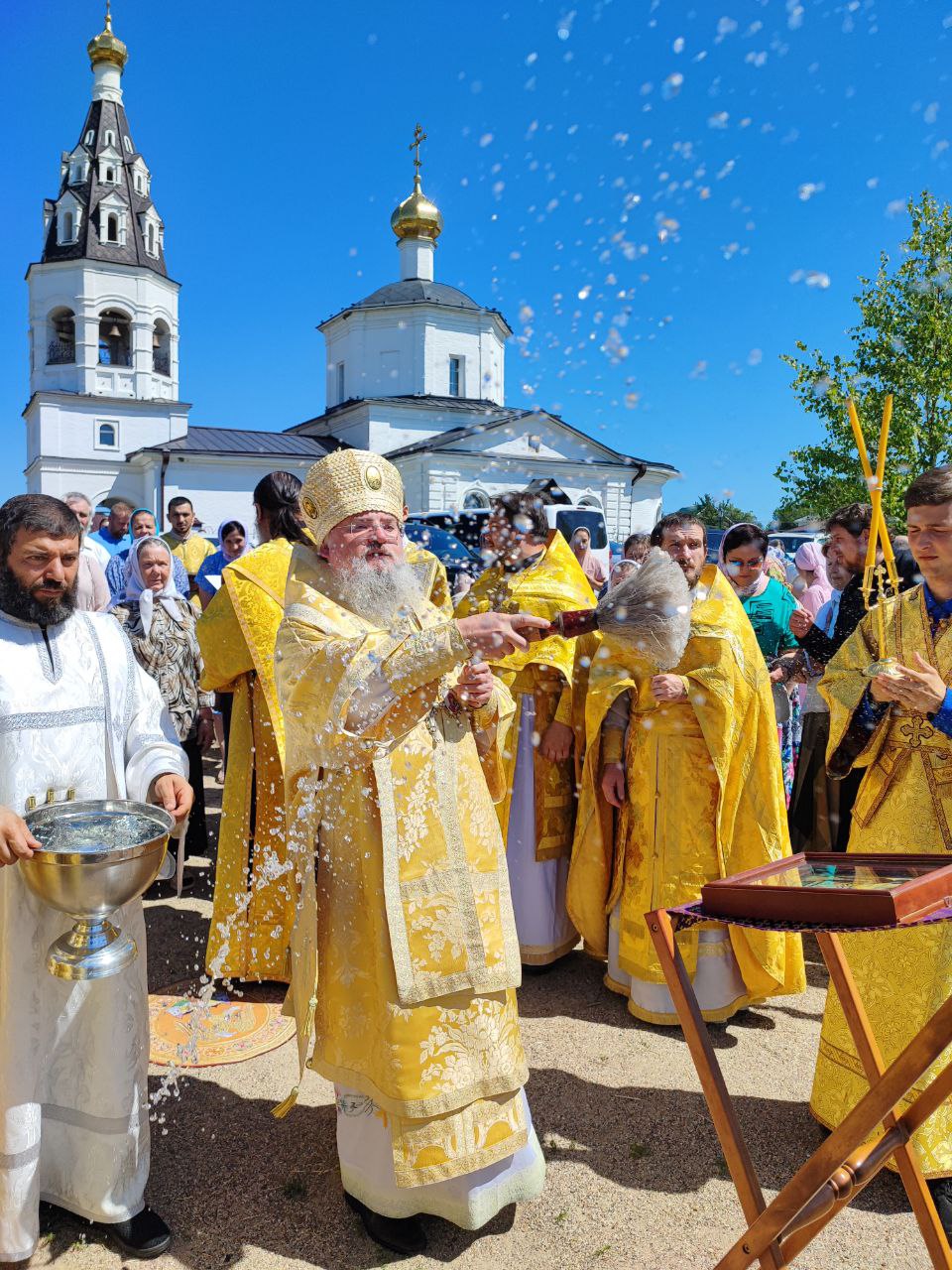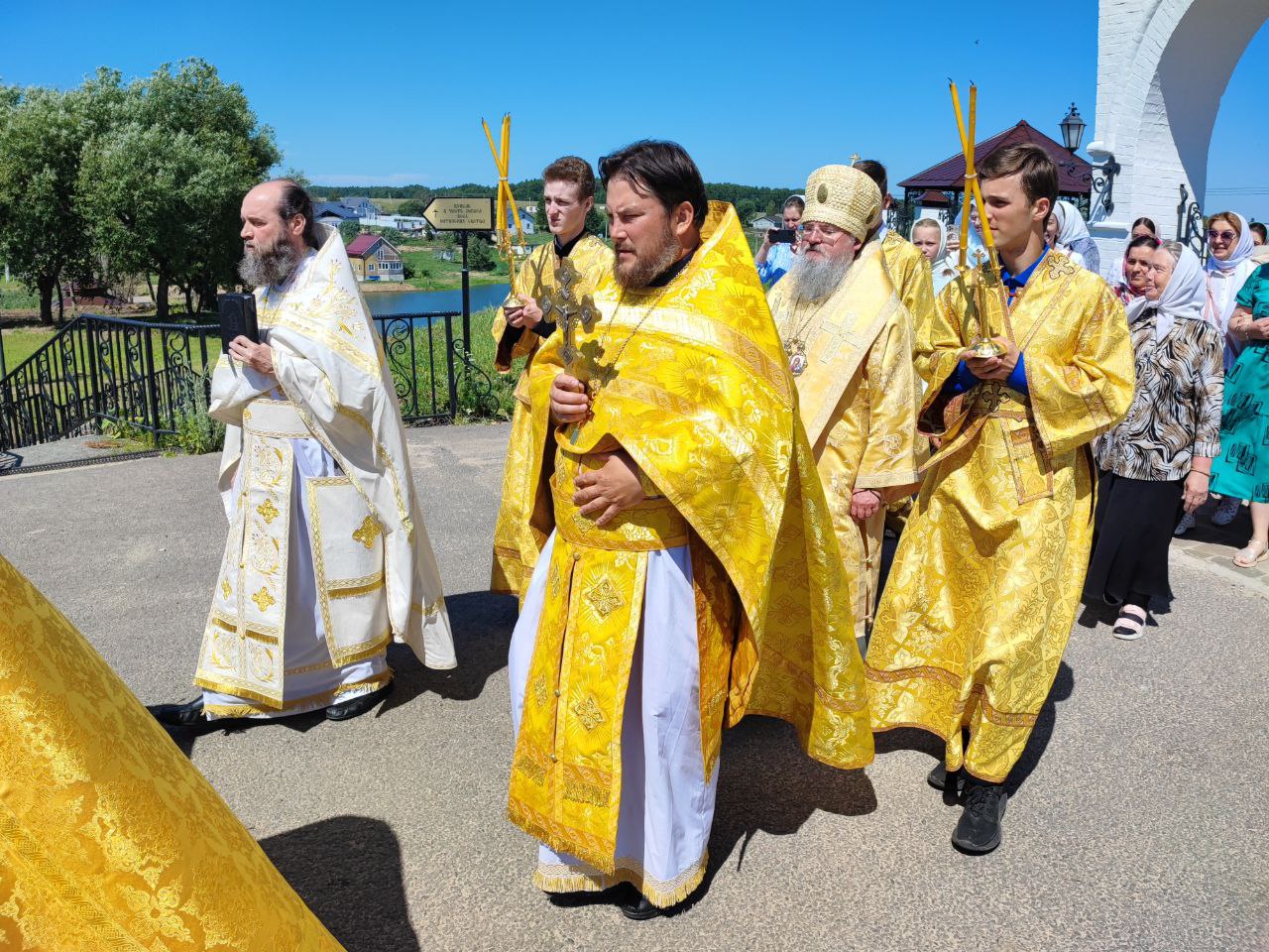 По отпусте литургии священнослужители совершили крестный ход к памятнику святым благоверным князьям Петру и Февронии, где был совершен праздничный молебен, а затем, вознеся молитву угодникам Божиим, владыка обратился к богомольцам с архипастырским словом.